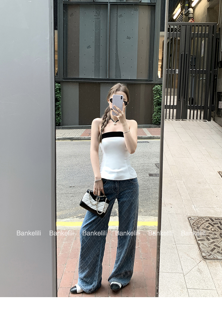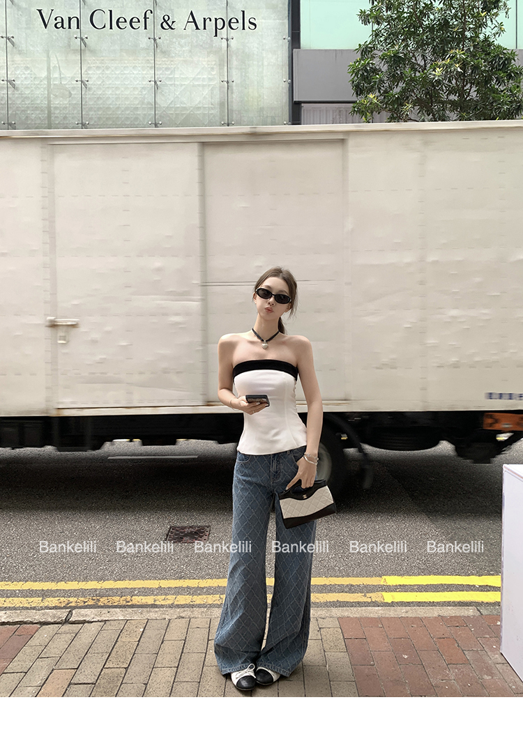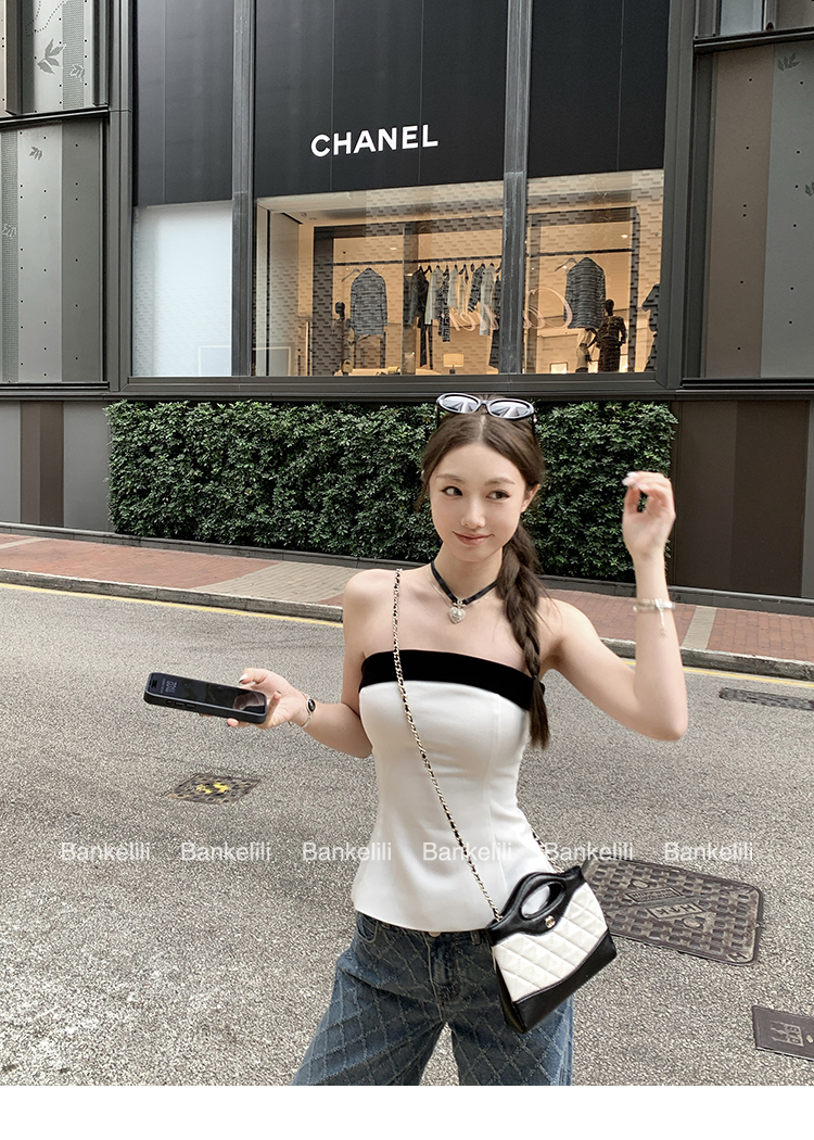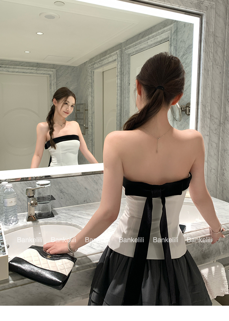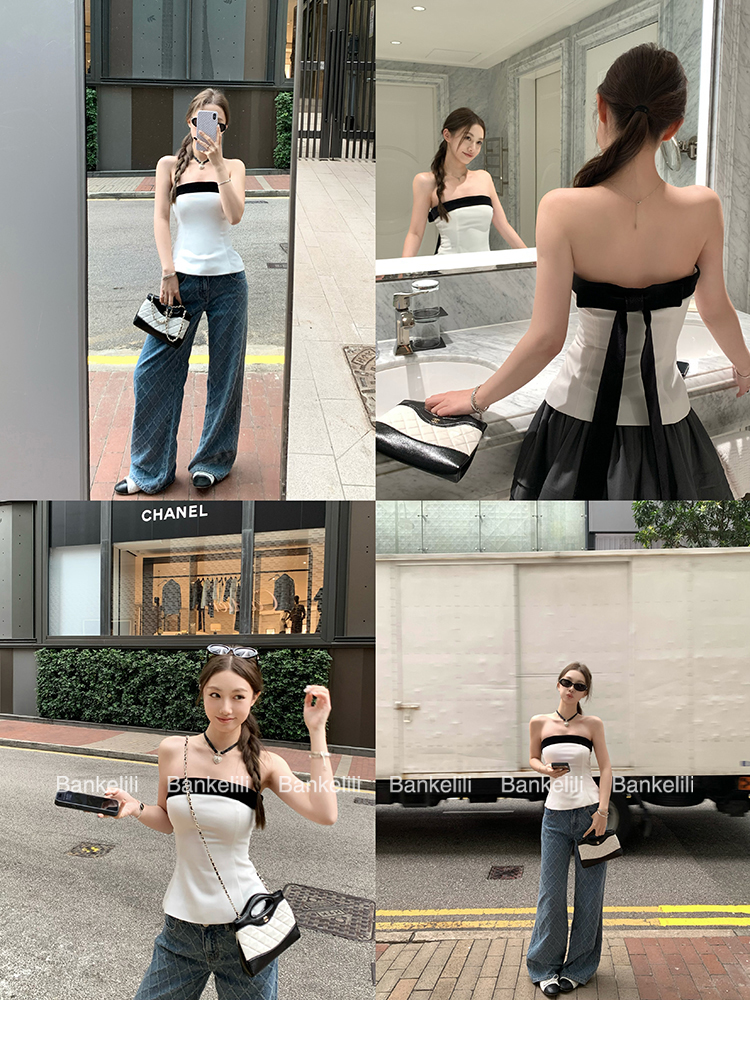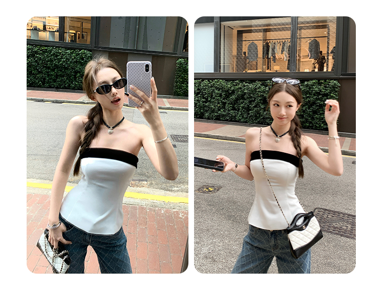 抹胸上衣 修饰前胸与副乳 双色收腰设计很好的展示腰部曲线