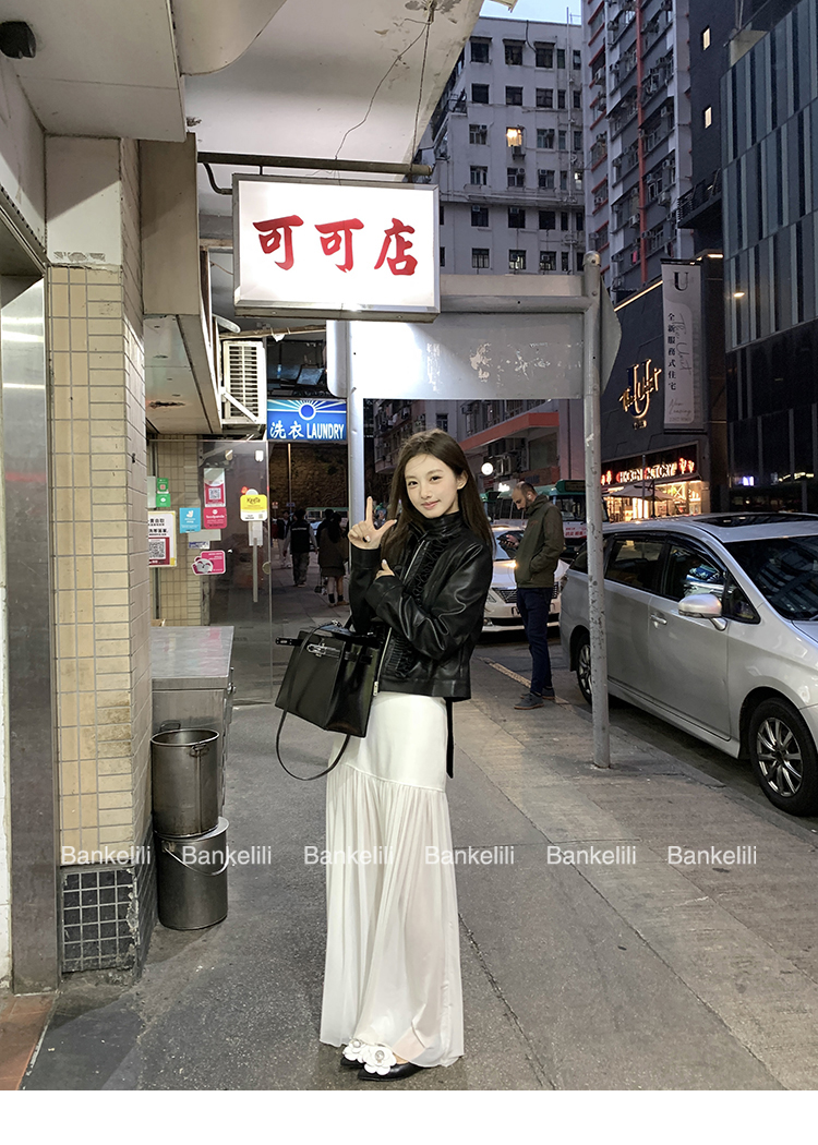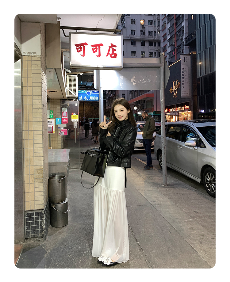 超喜欢长裙搭配皮衣的感觉,搭配穿很日常 喜欢风格碰撞的感觉