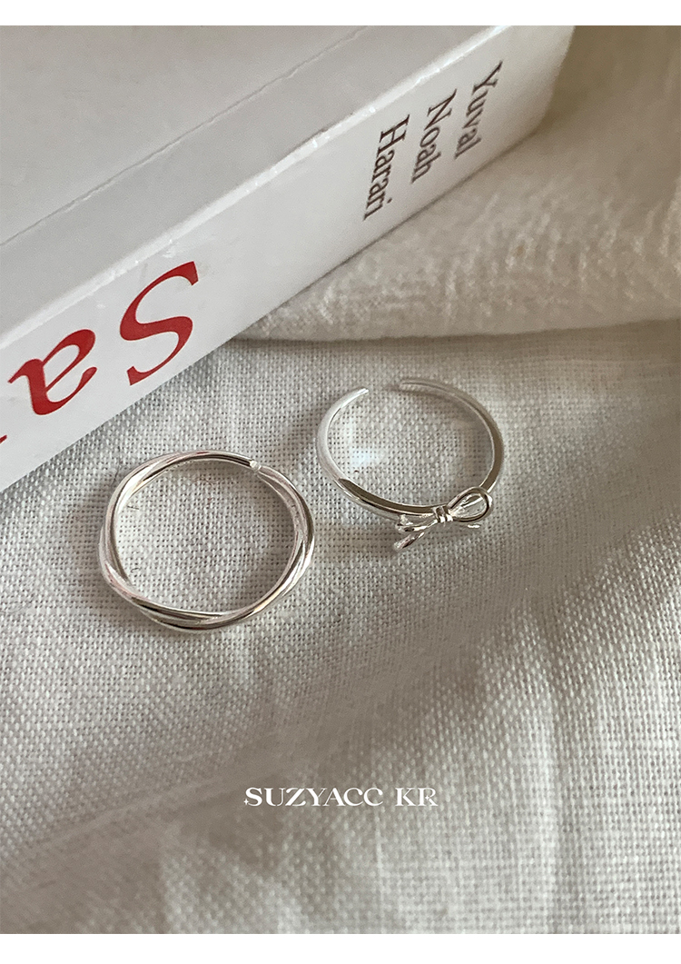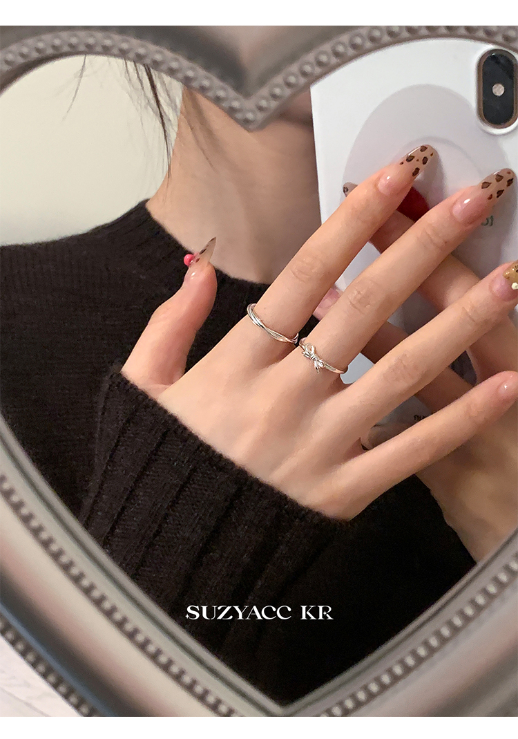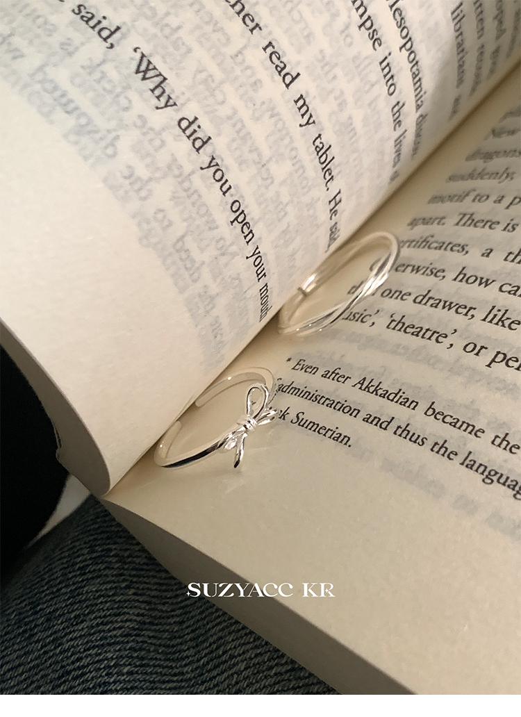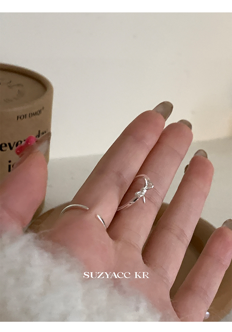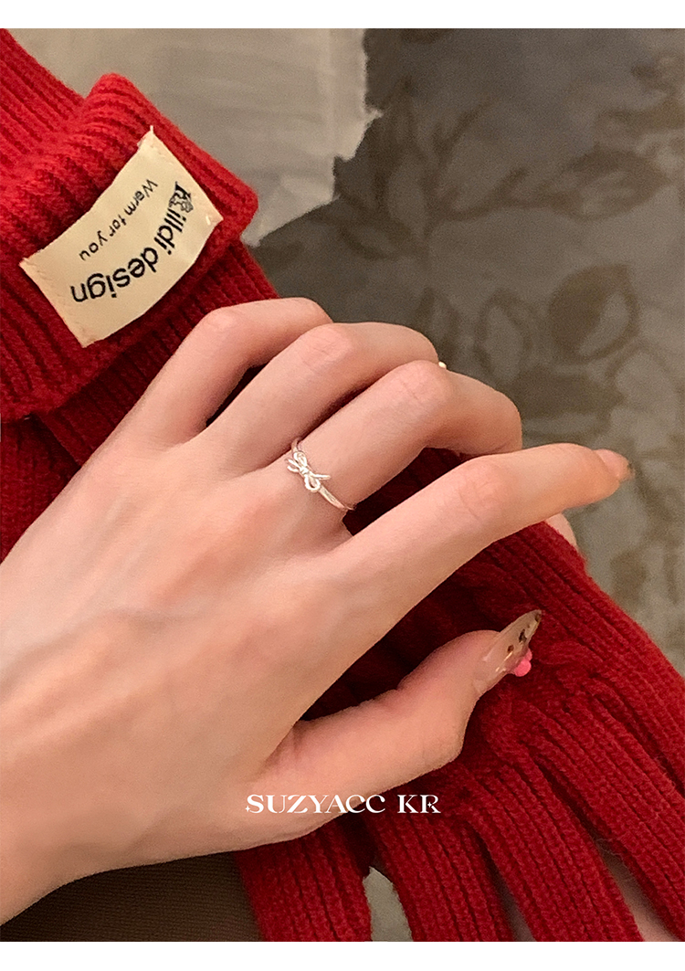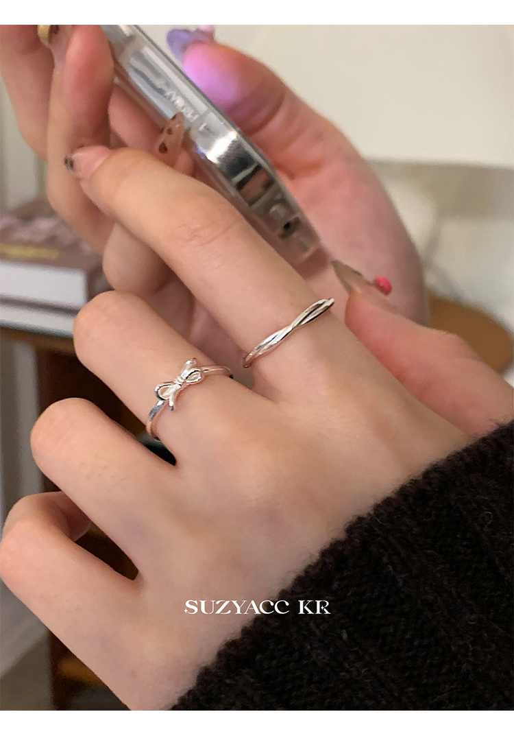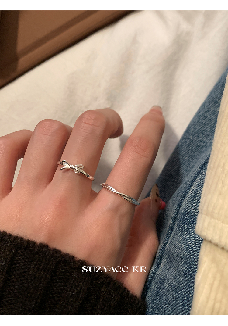 Suzyacc Kr Simple and Versatile High-End Sterling Silver Bowknot Slim Ring Niche Design Index Finger Ring