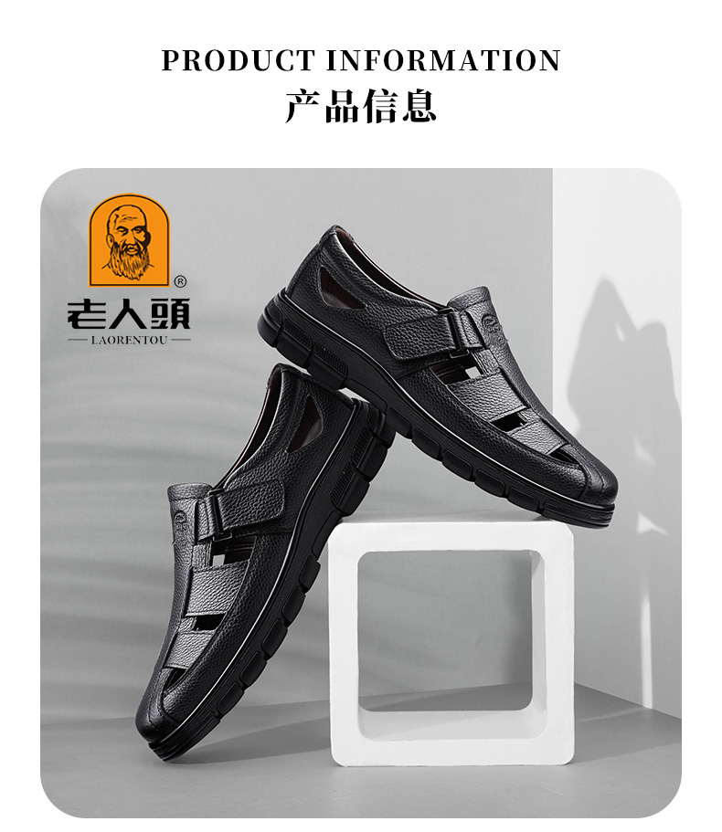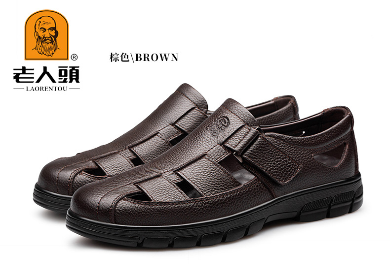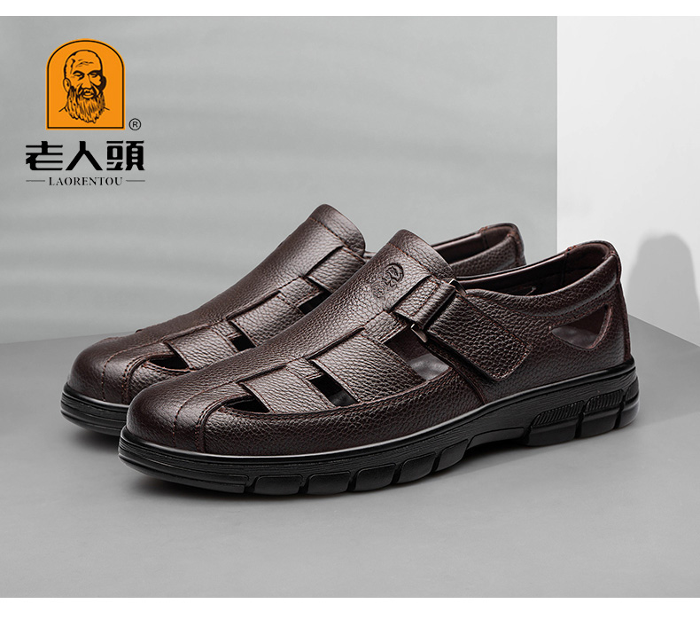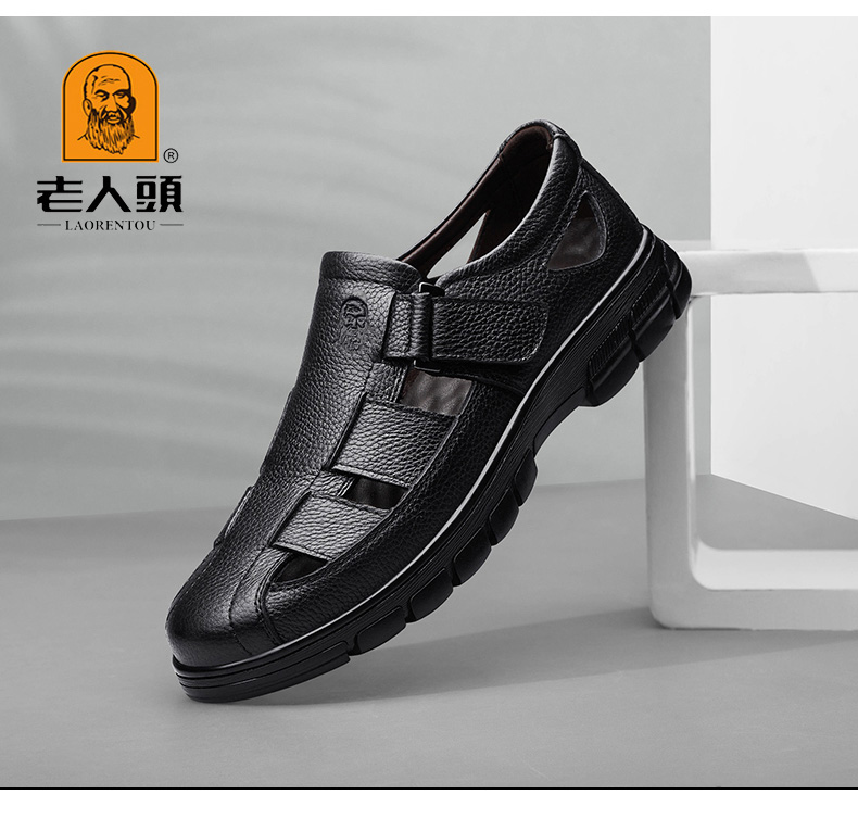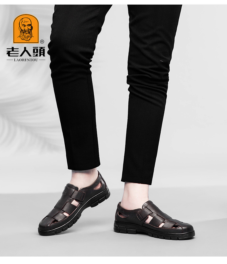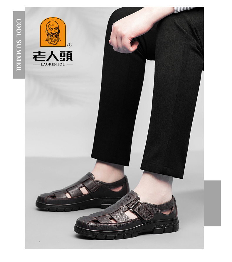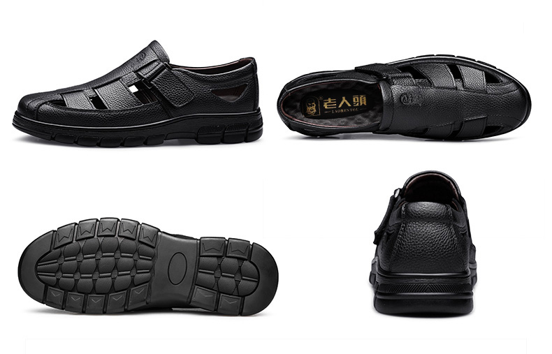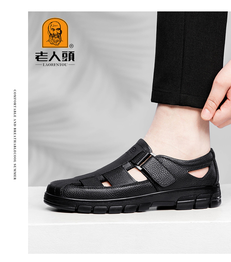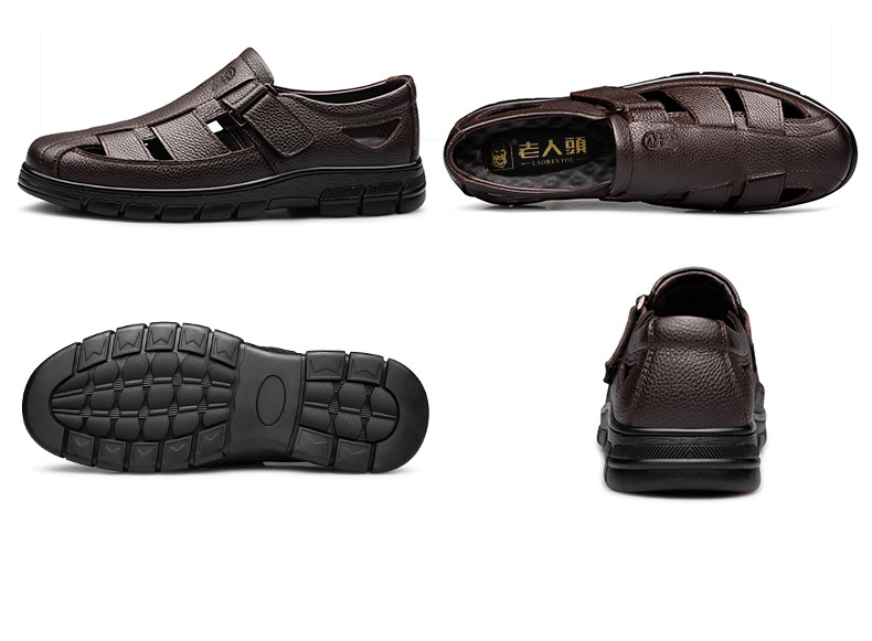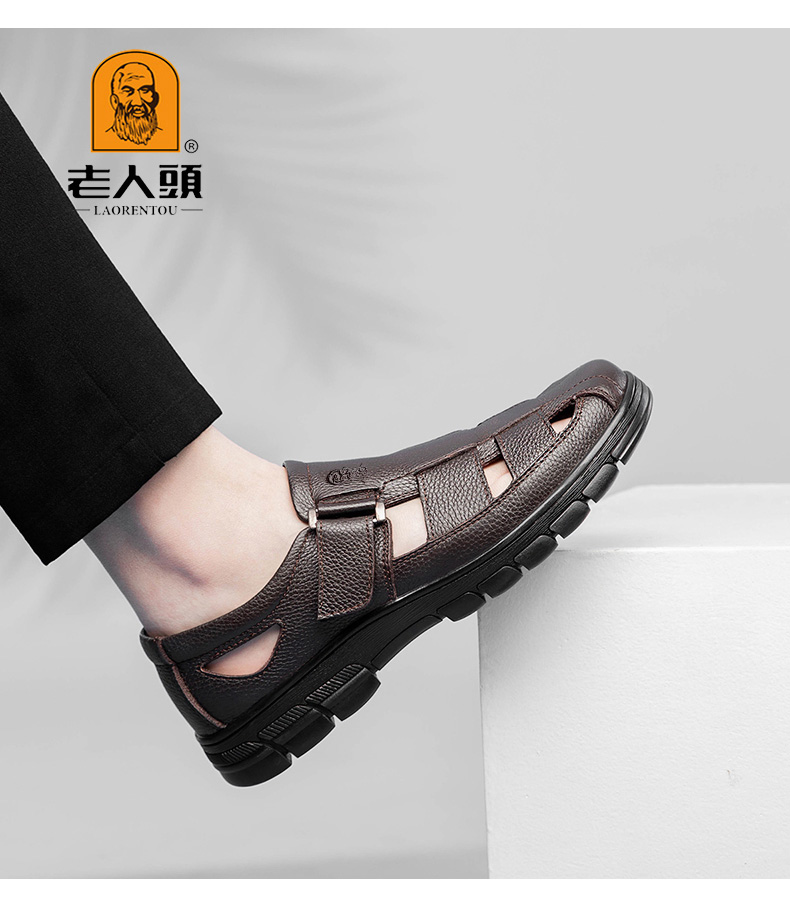 Men's Genuine Leather Breathable Summer Casual Non-Slip Sandals for the Elderly, Widened Hole Shoes for Wide Feet
