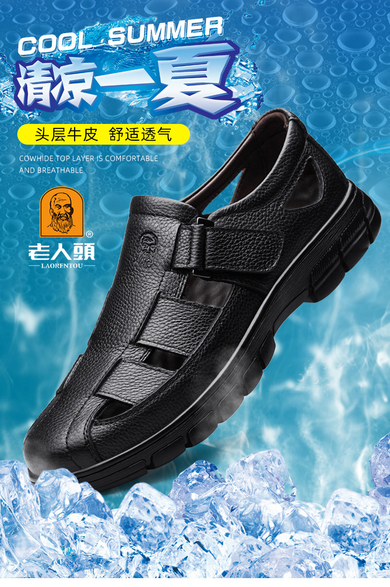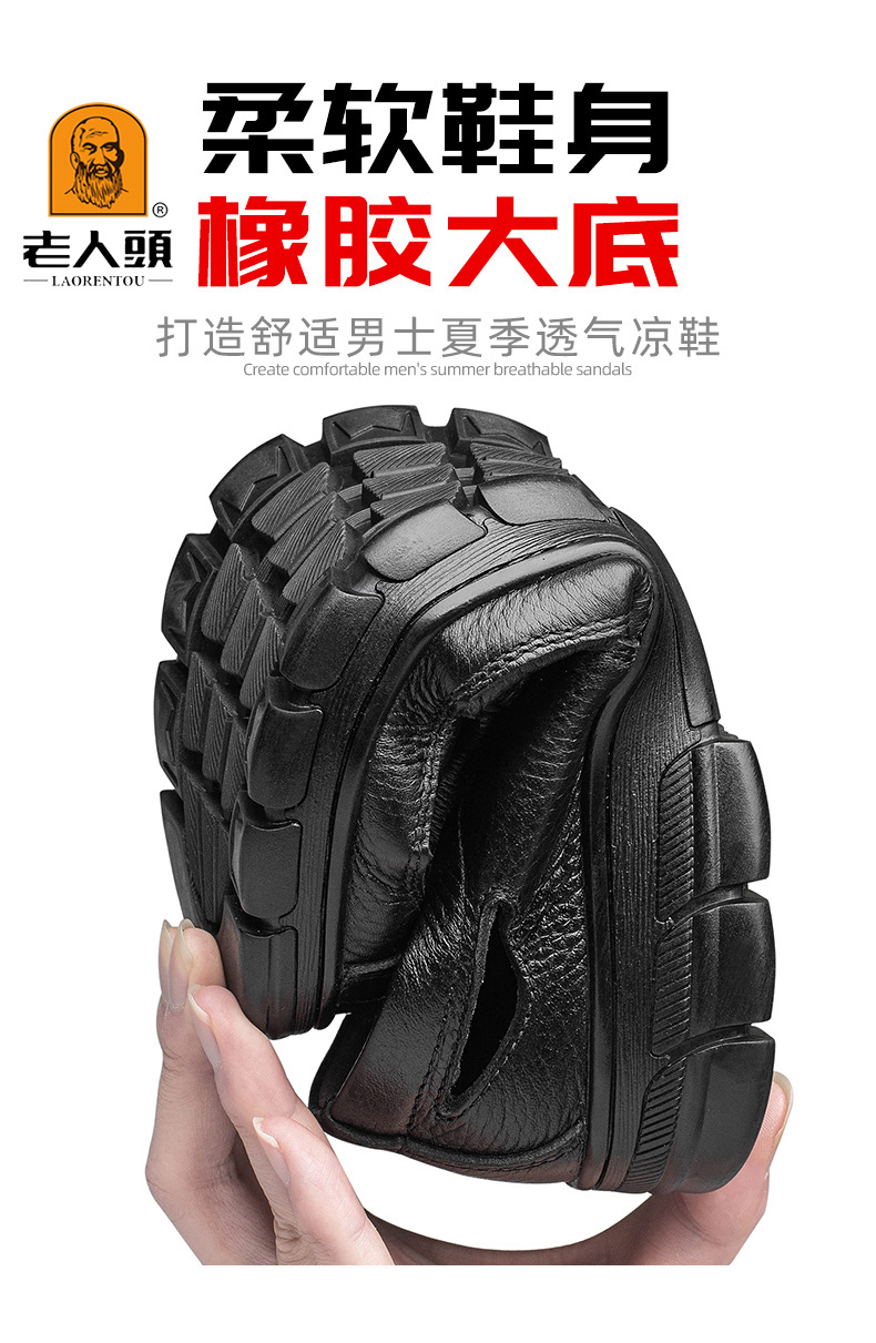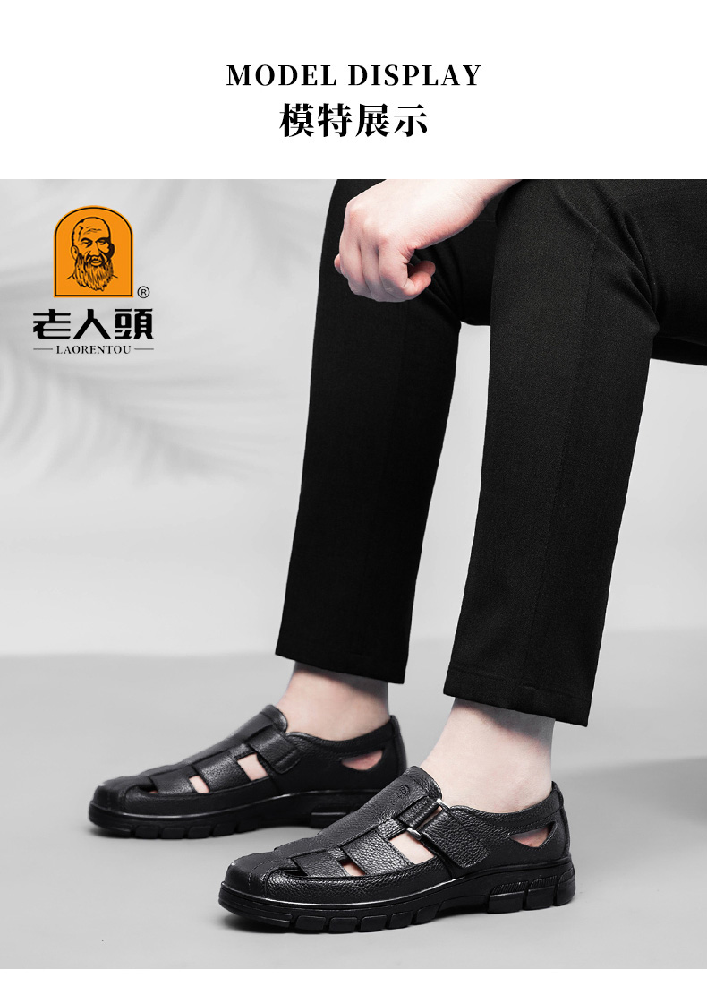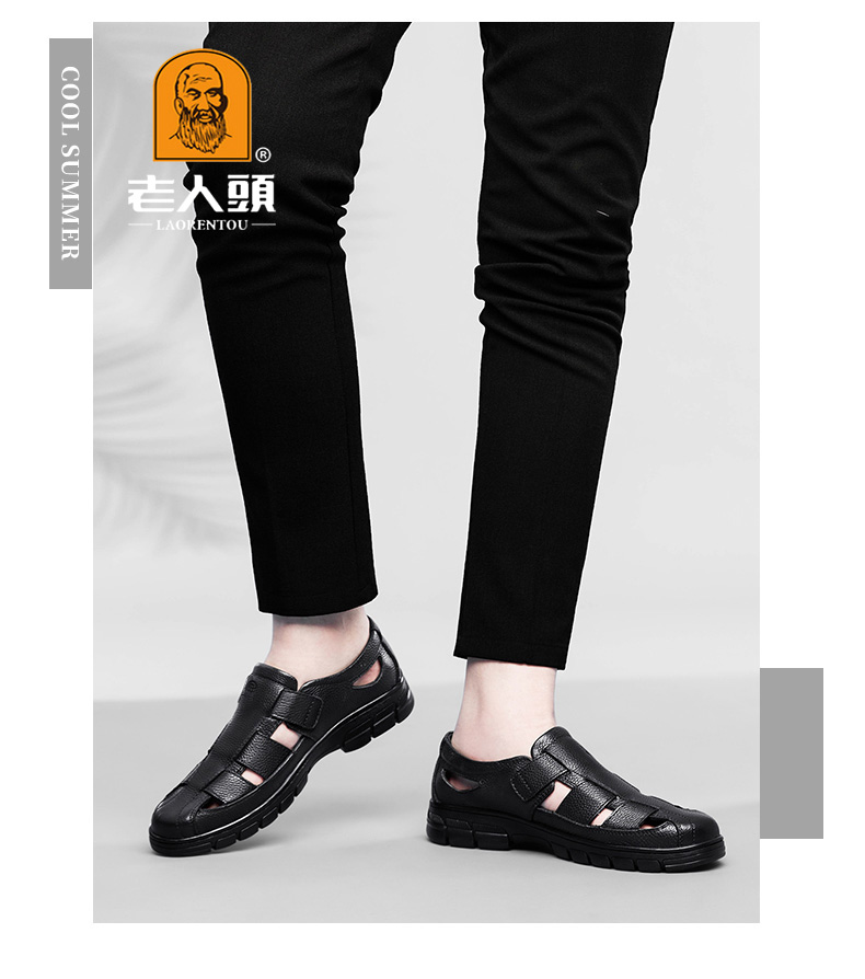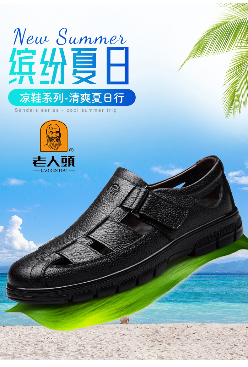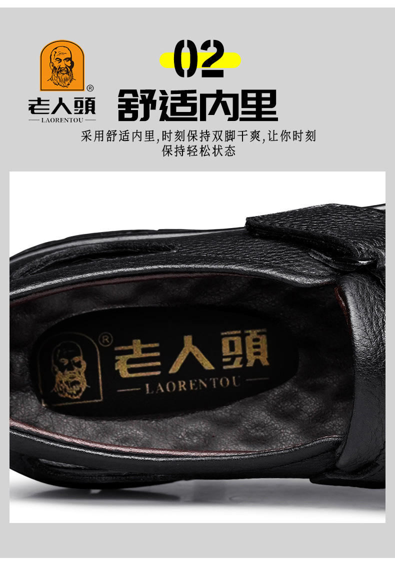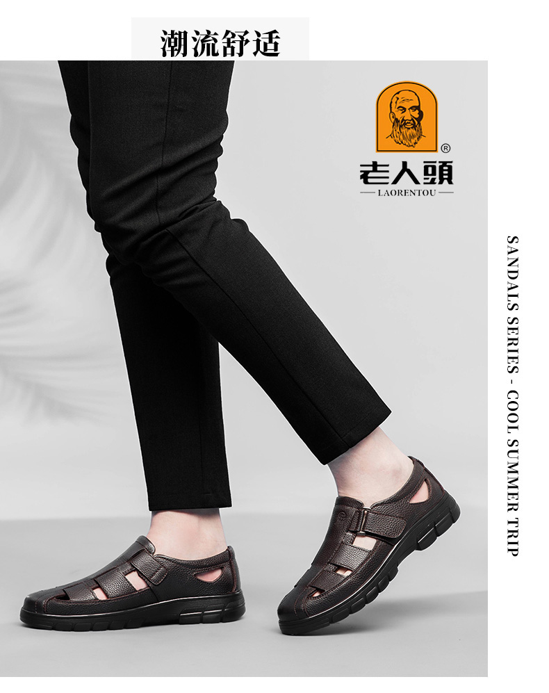 Men's Genuine Leather Breathable Summer Casual Non-Slip Sandals for the Elderly, Widened Hole Shoes for Wide Feet