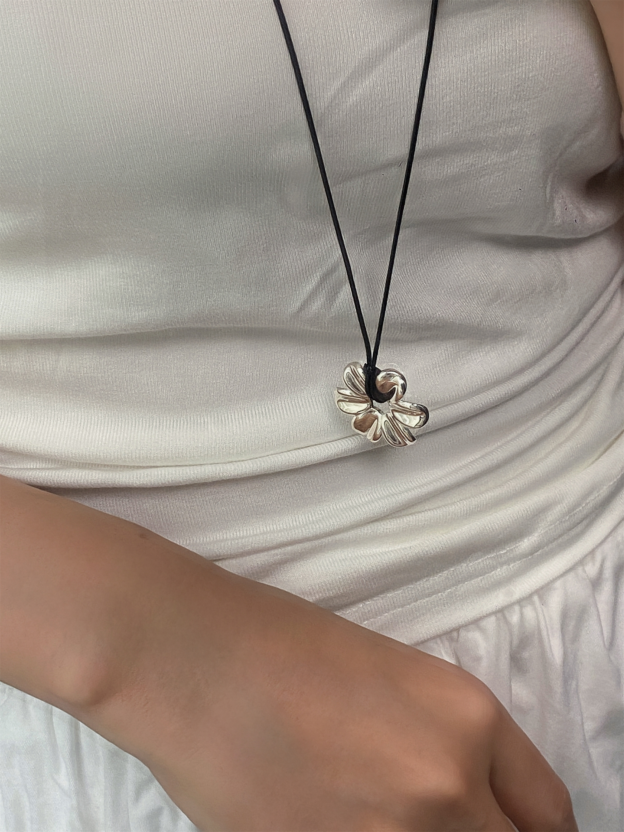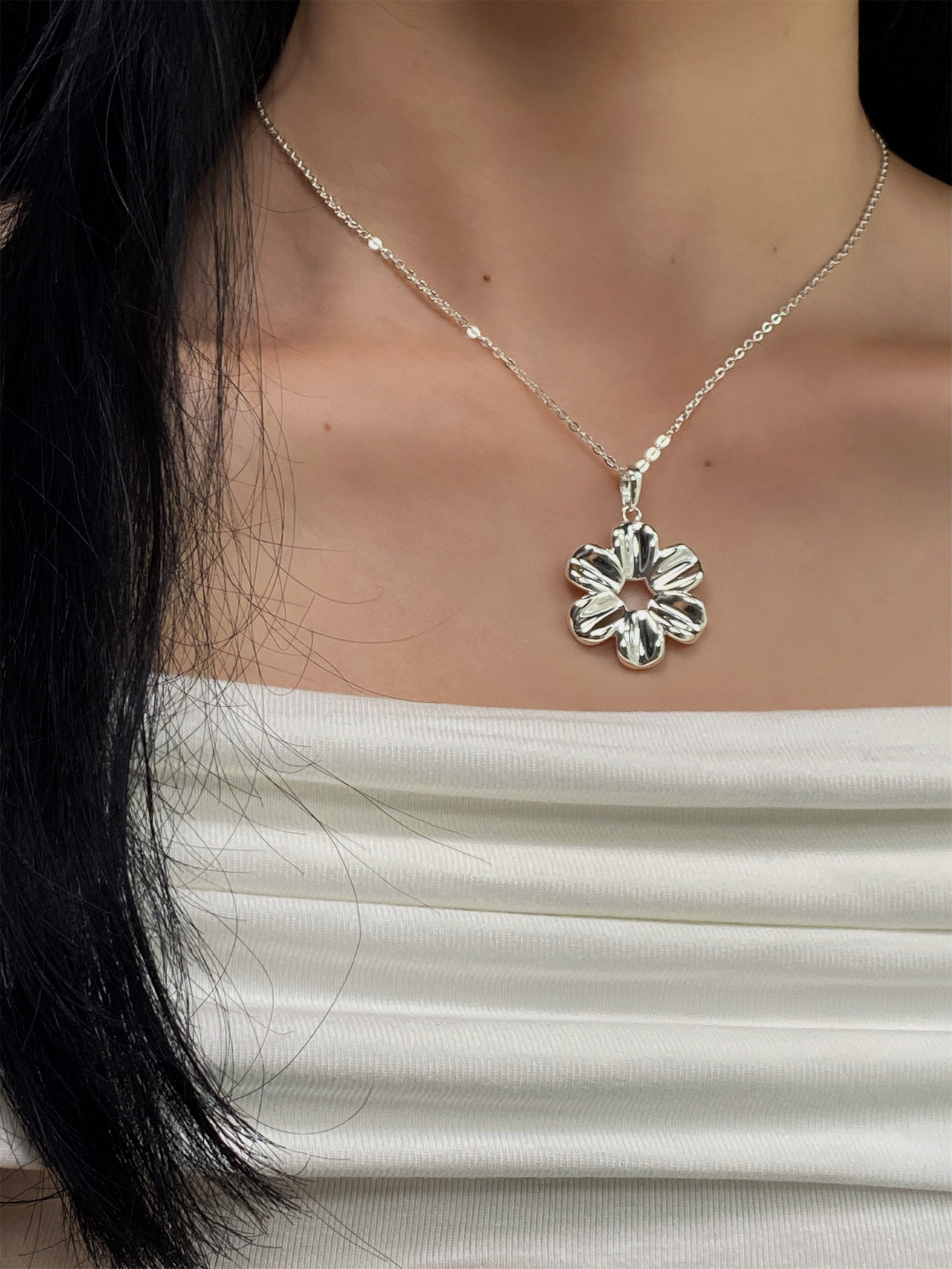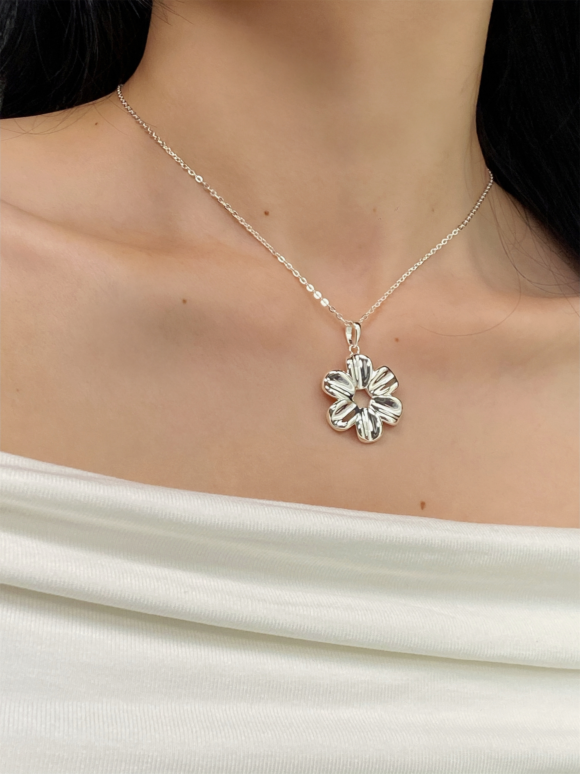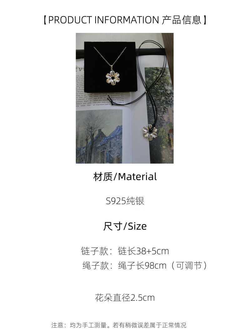 Yiyi Flower Necklace S925 Sterling Silver Clavicle Chain Small Daisy Pendant Rope Long Sweater Chain Niche High-End Style