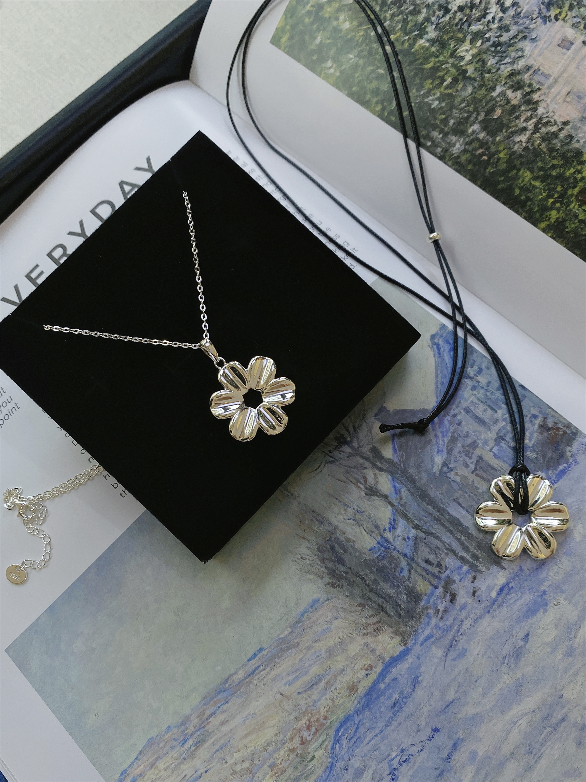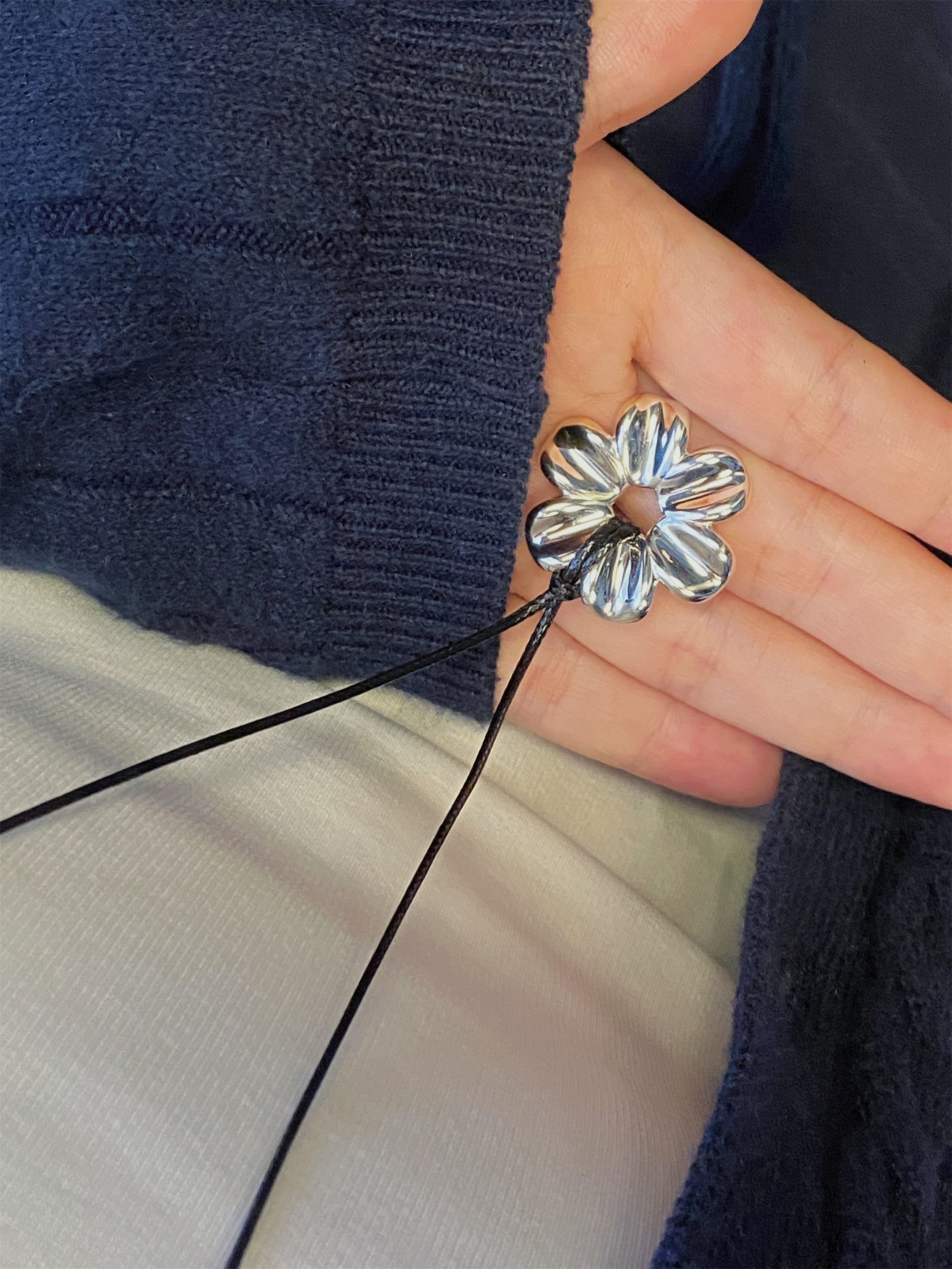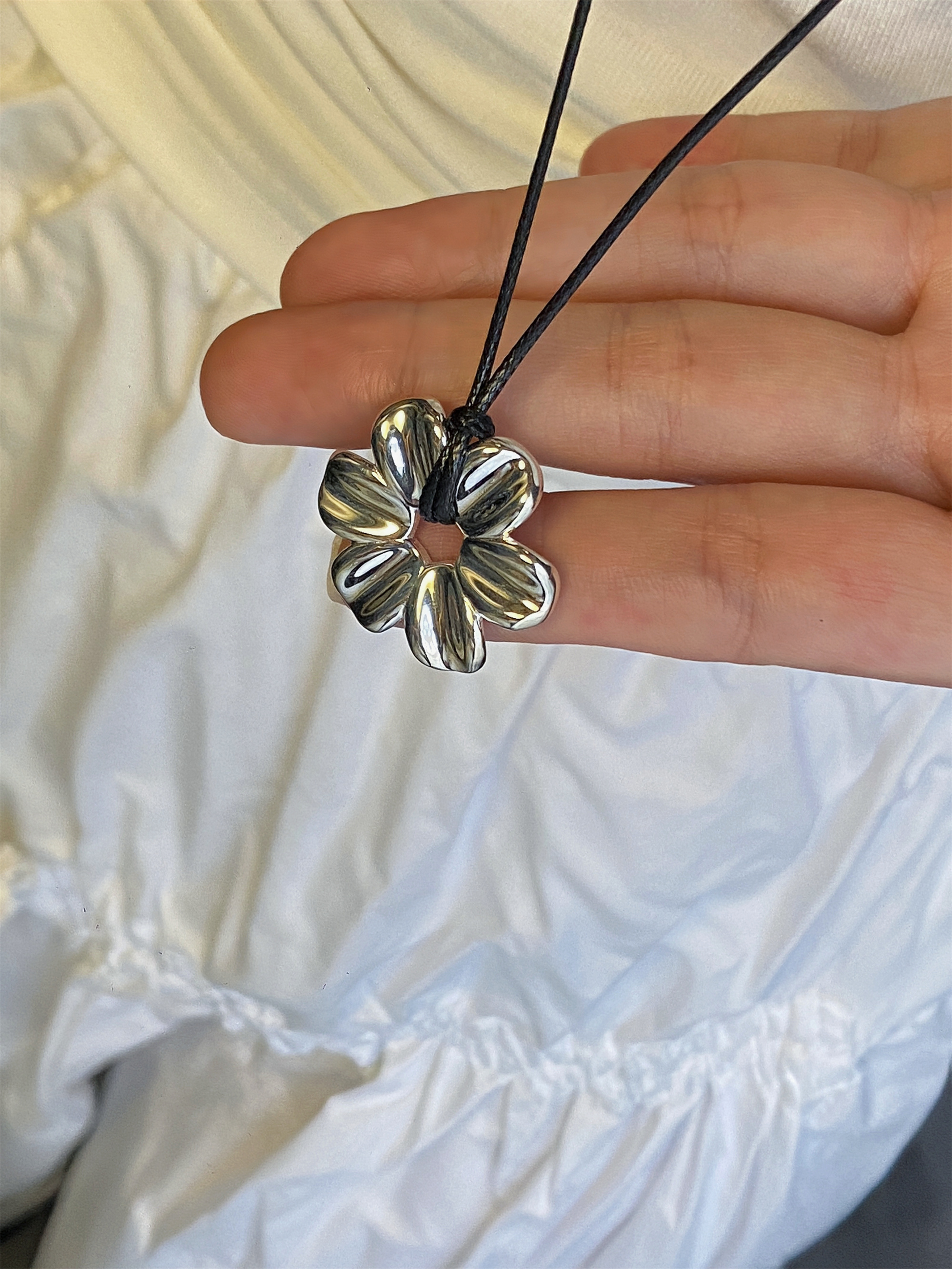 Yiyi Flower Necklace S925 Sterling Silver Clavicle Chain Small Daisy Pendant Rope Long Sweater Chain Niche High-End Style