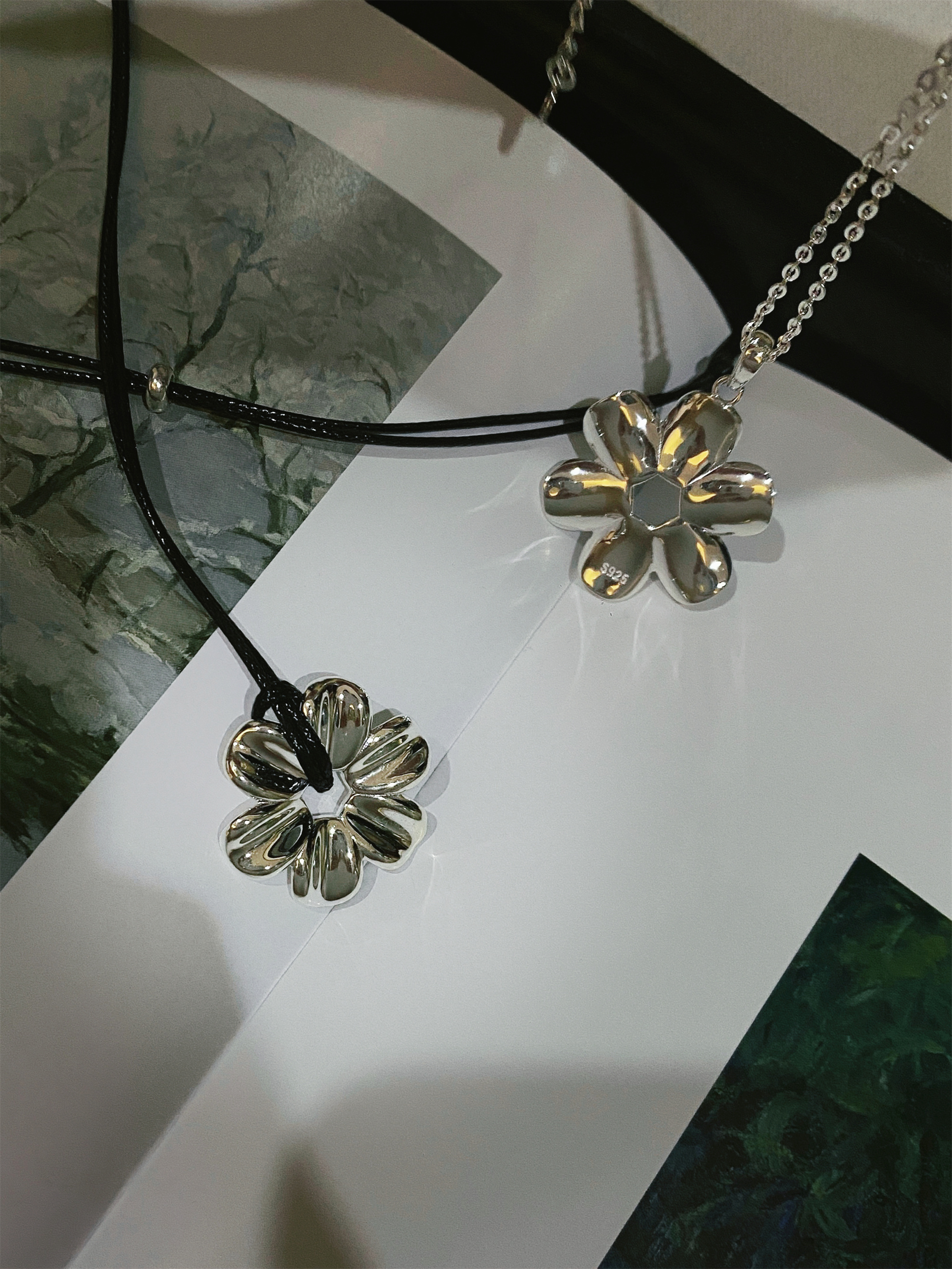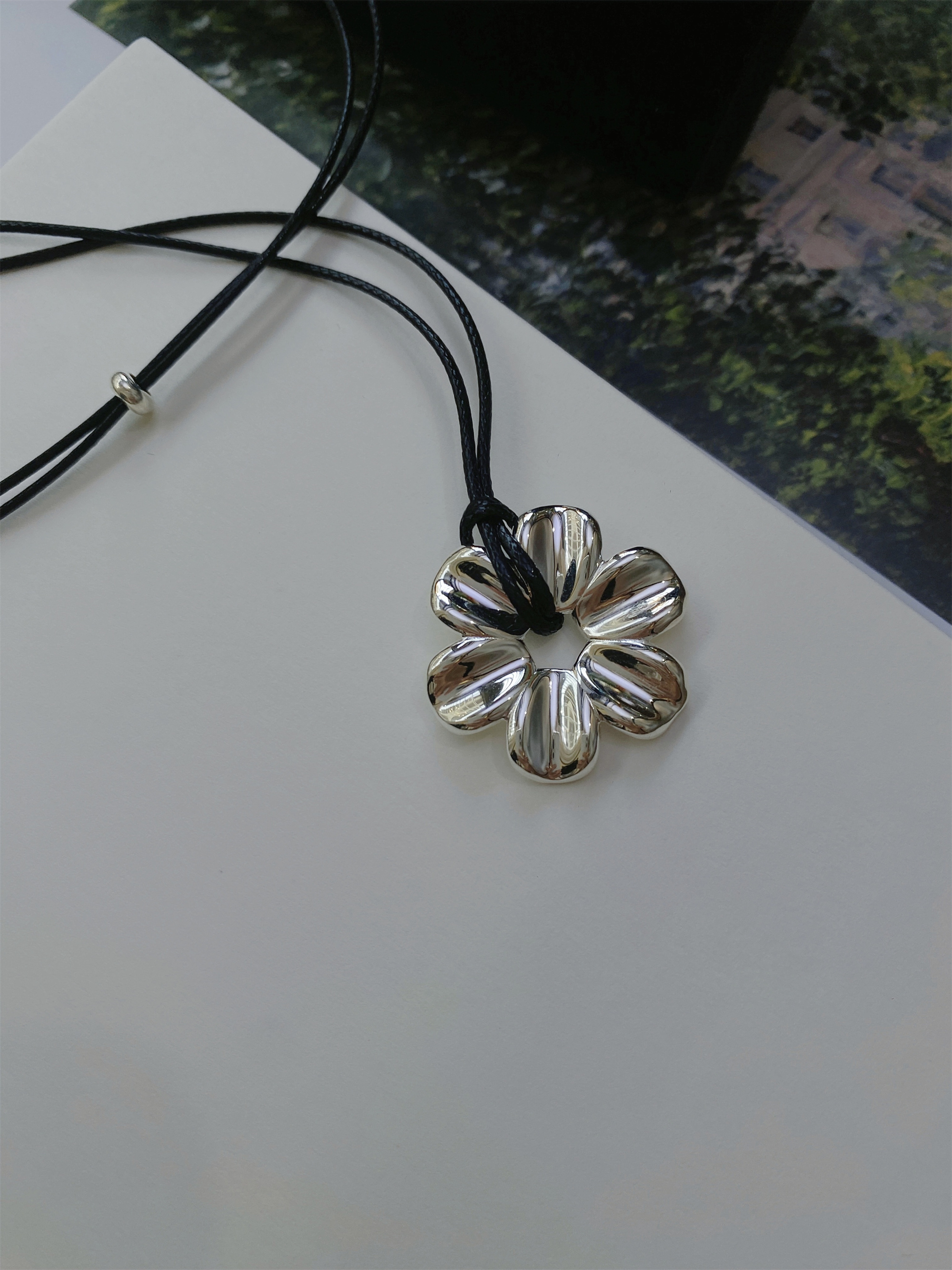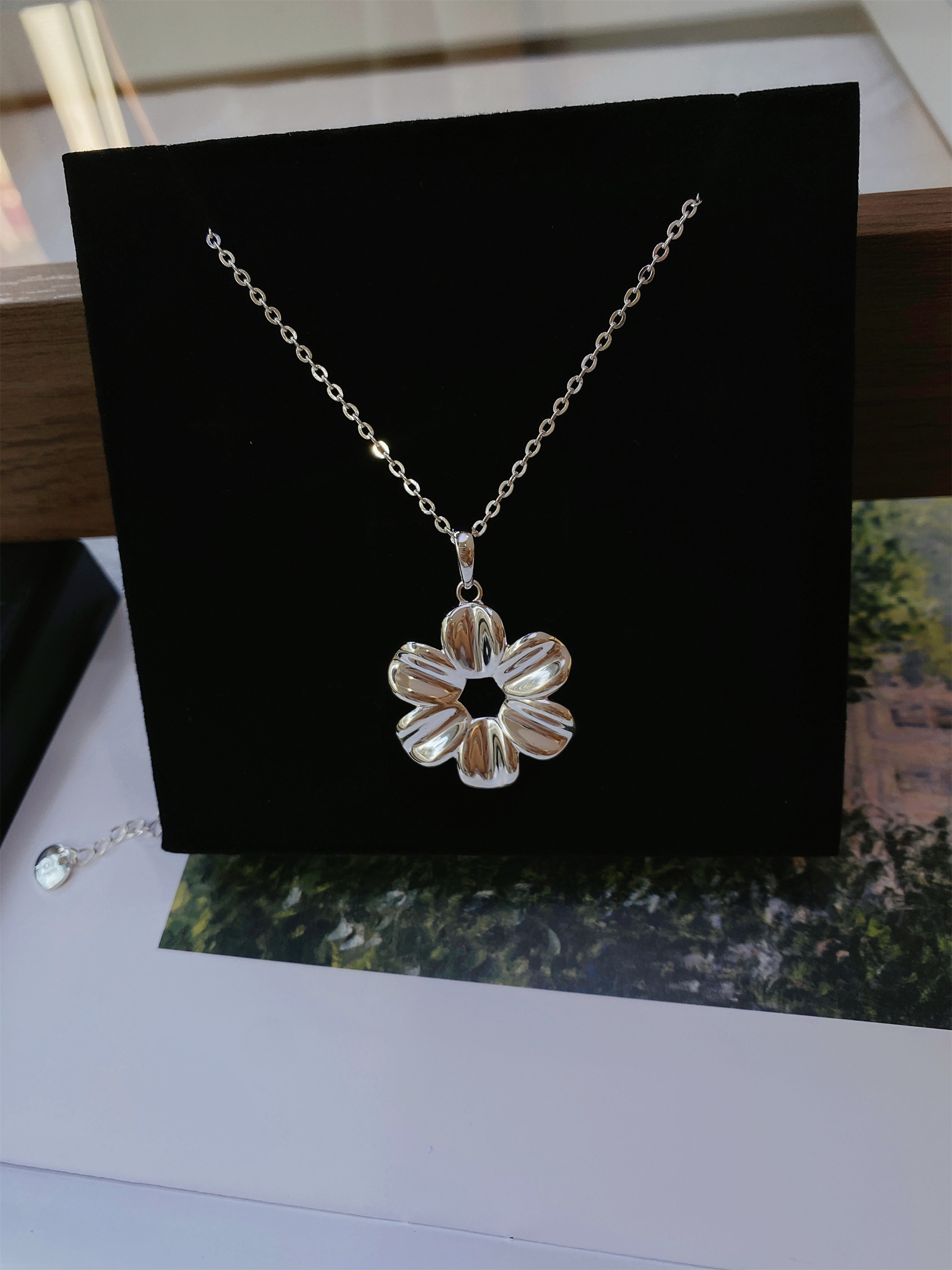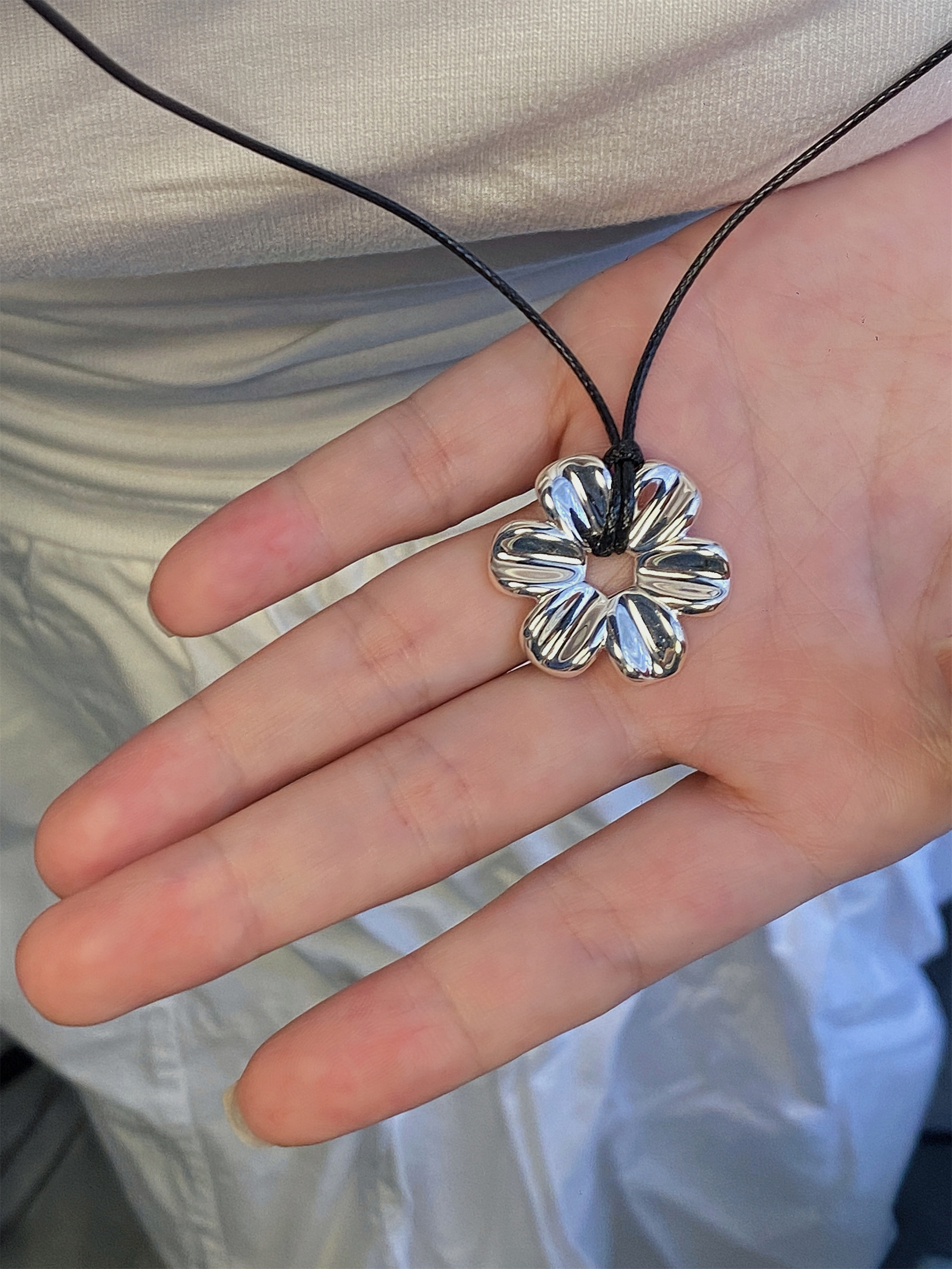 Yiyi Flower Necklace S925 Sterling Silver Clavicle Chain Small Daisy Pendant Rope Long Sweater Chain Niche High-End Style