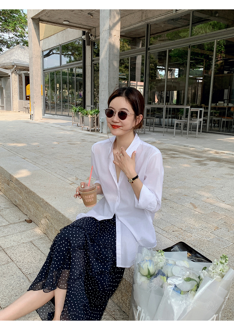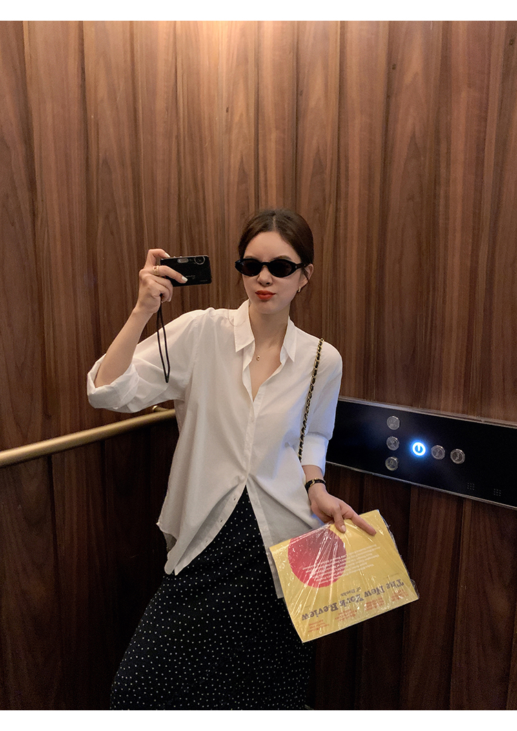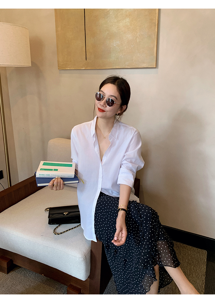 Libelin Sisy 2025 Fairy Shirt, All-Cotton Versatile Loose-Fitting Elegant Long-Sleeve Top with a Turn-Down Collar, White Shirt for Women