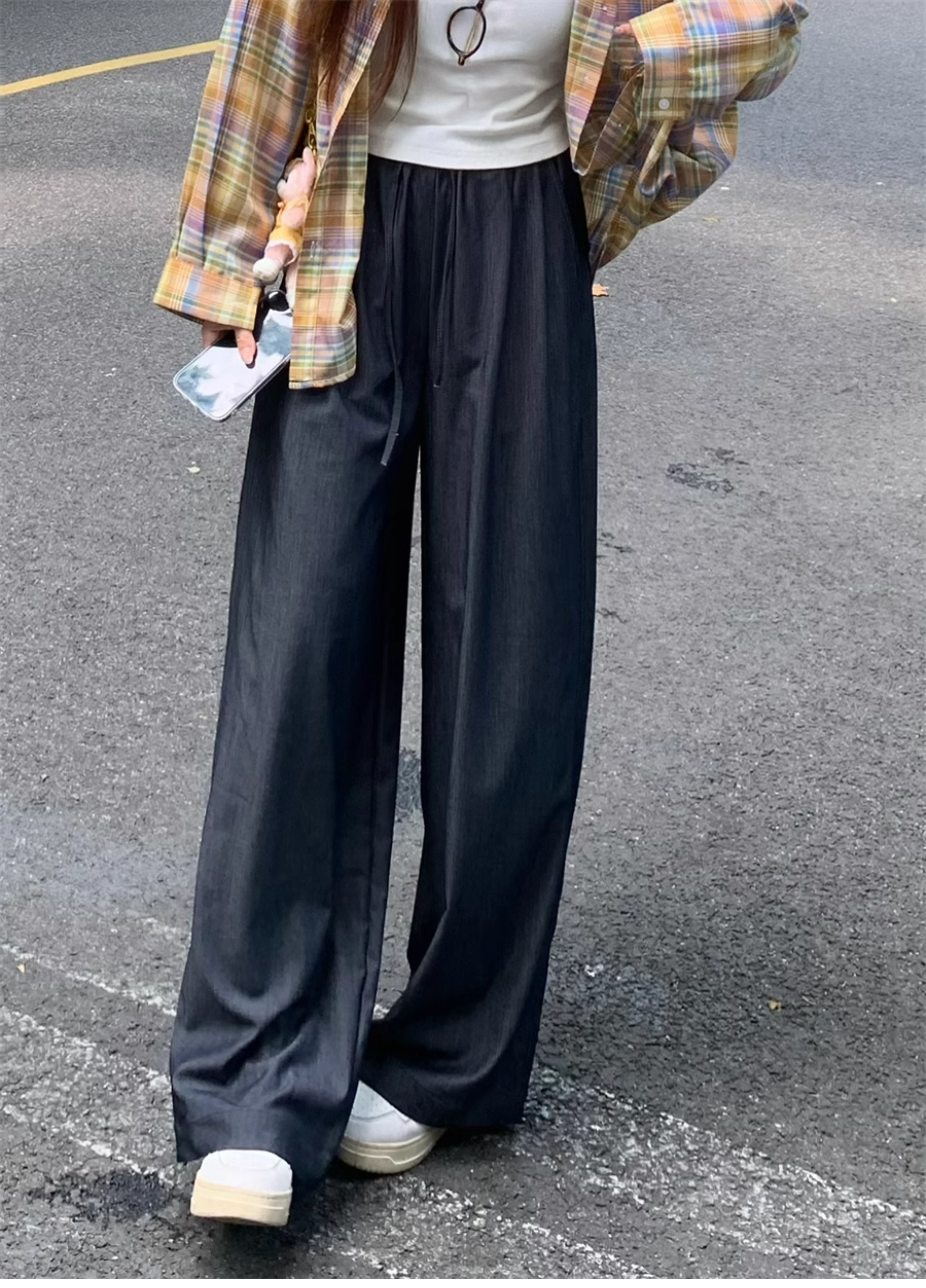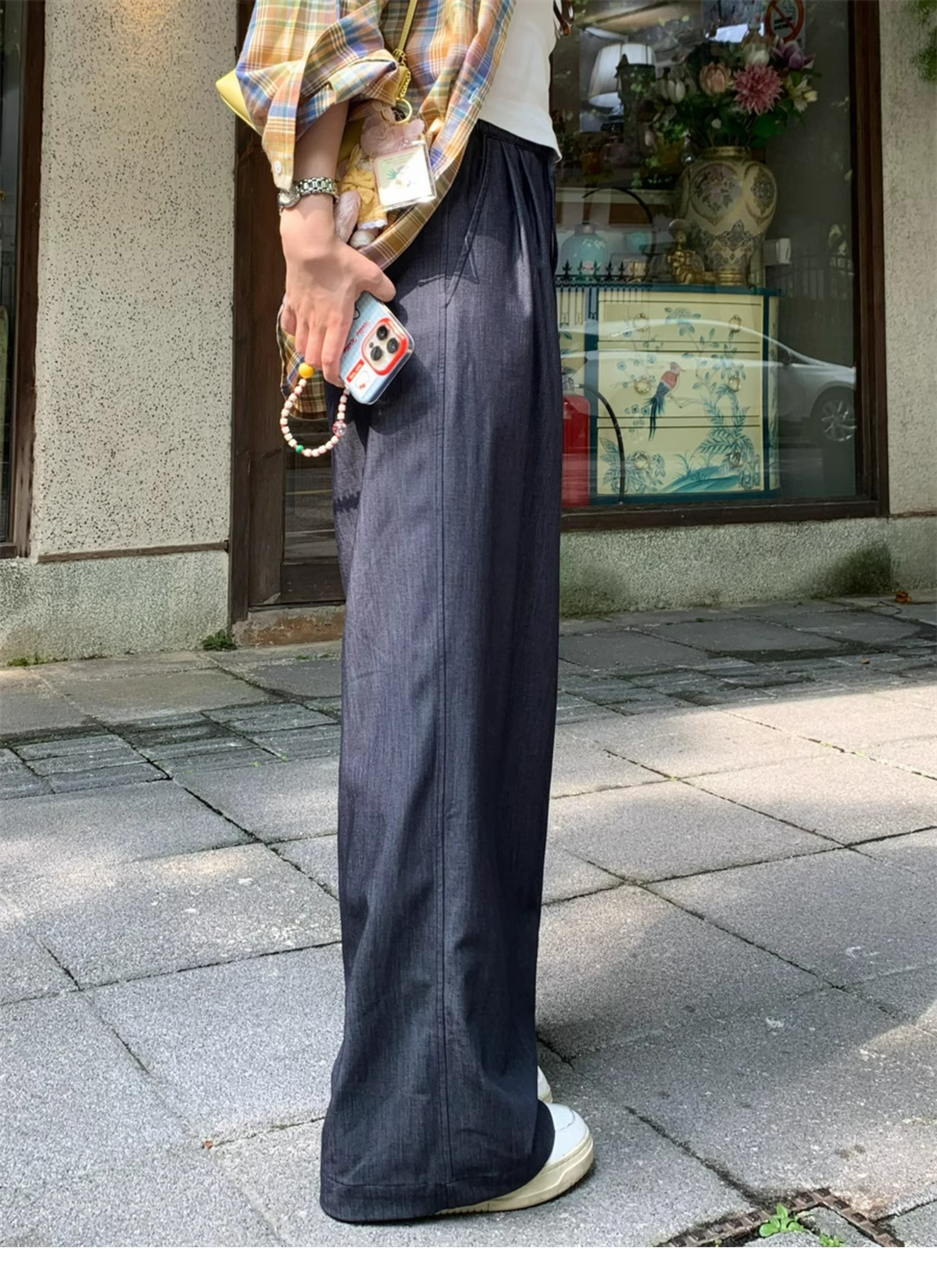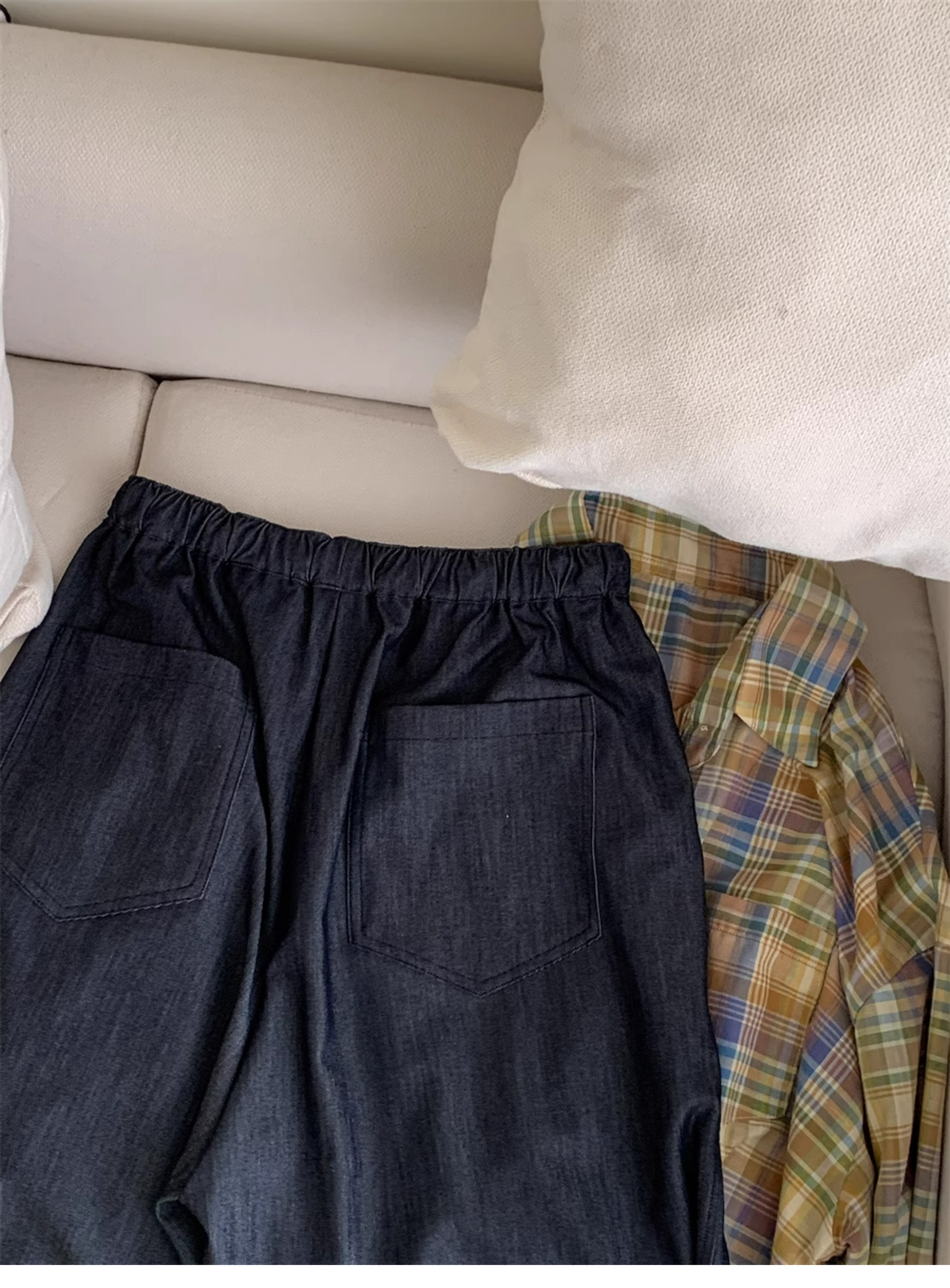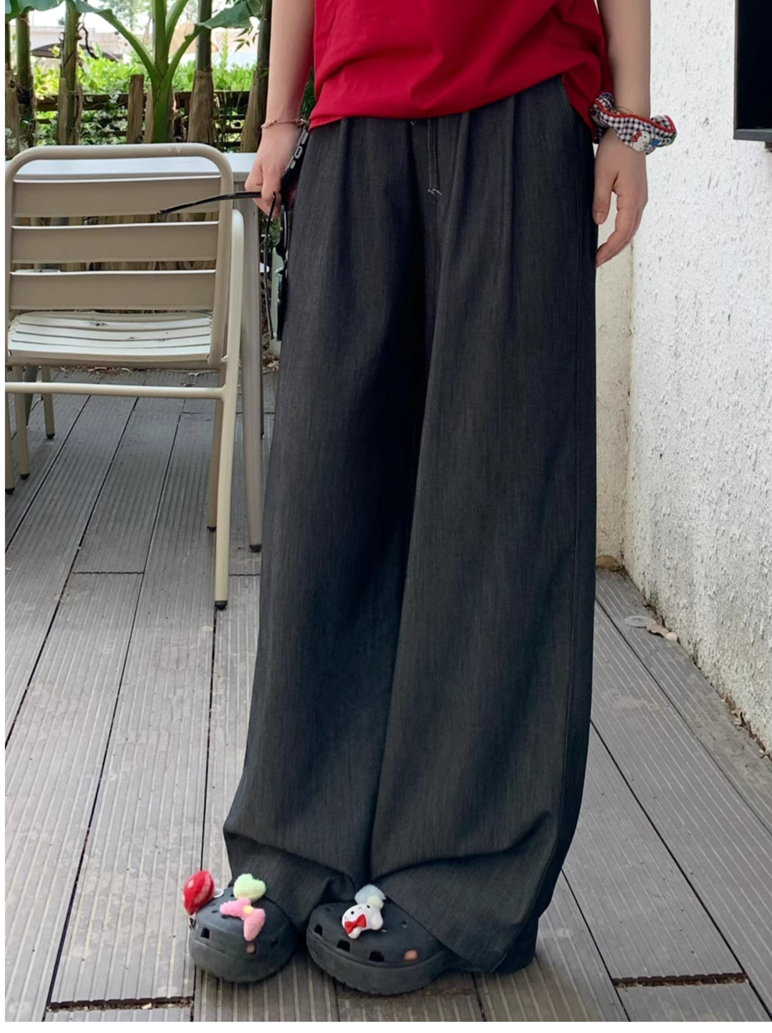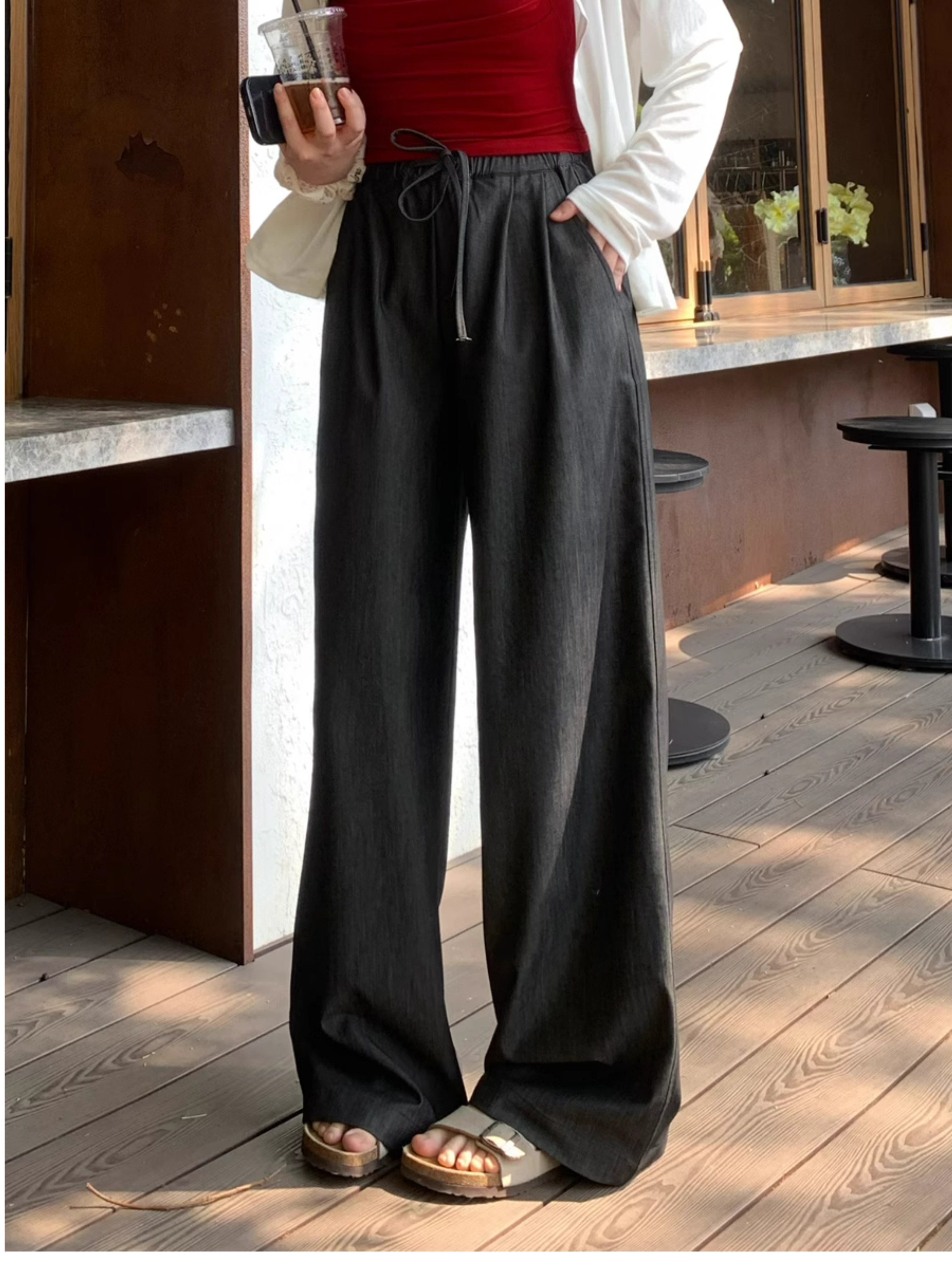 Ttang Studio's Popular Items Are Back! Stylish Pants 2025 Summer Elastic Waist Faux Denim Straight-Leg Floor-Length Pants