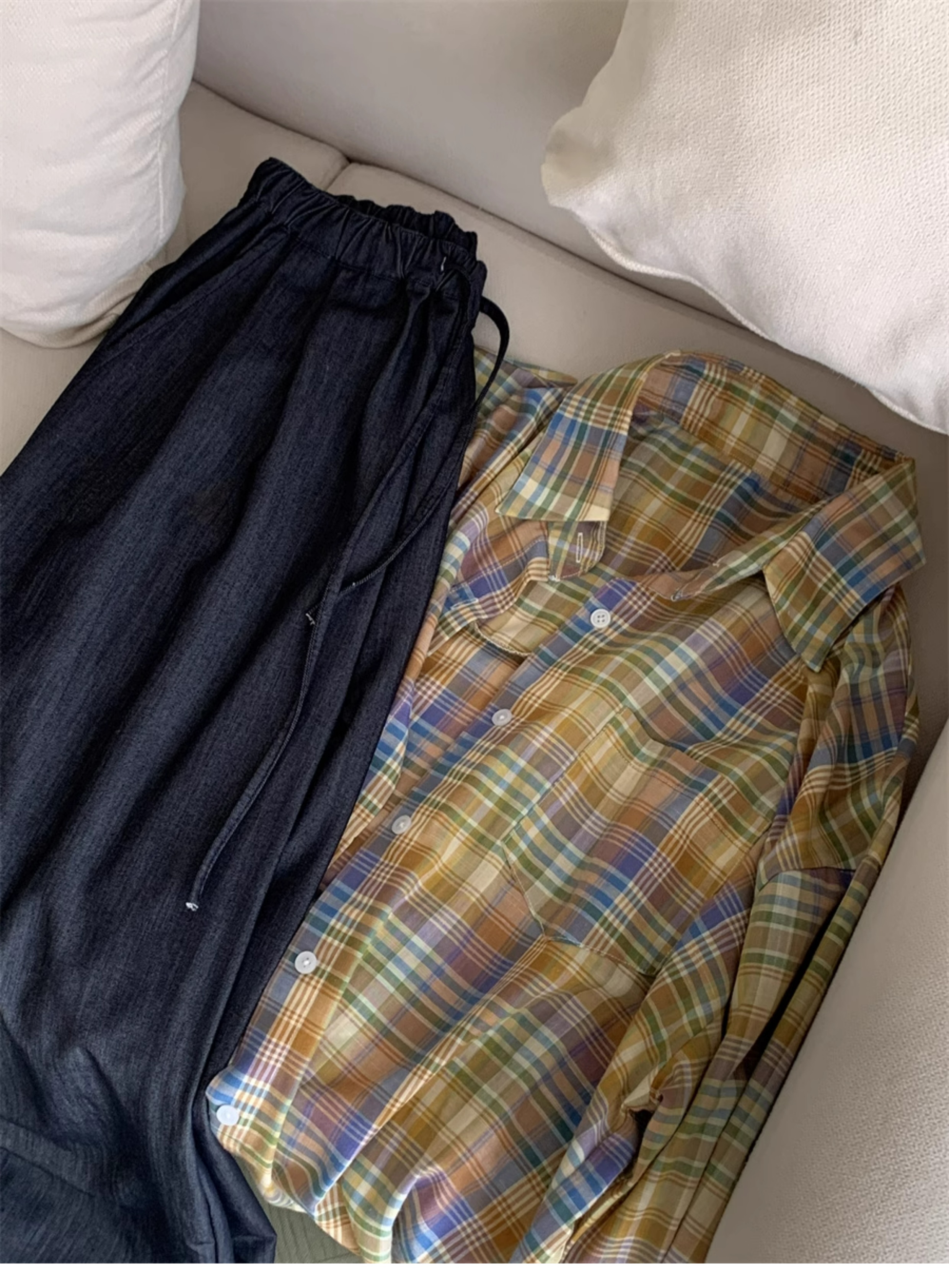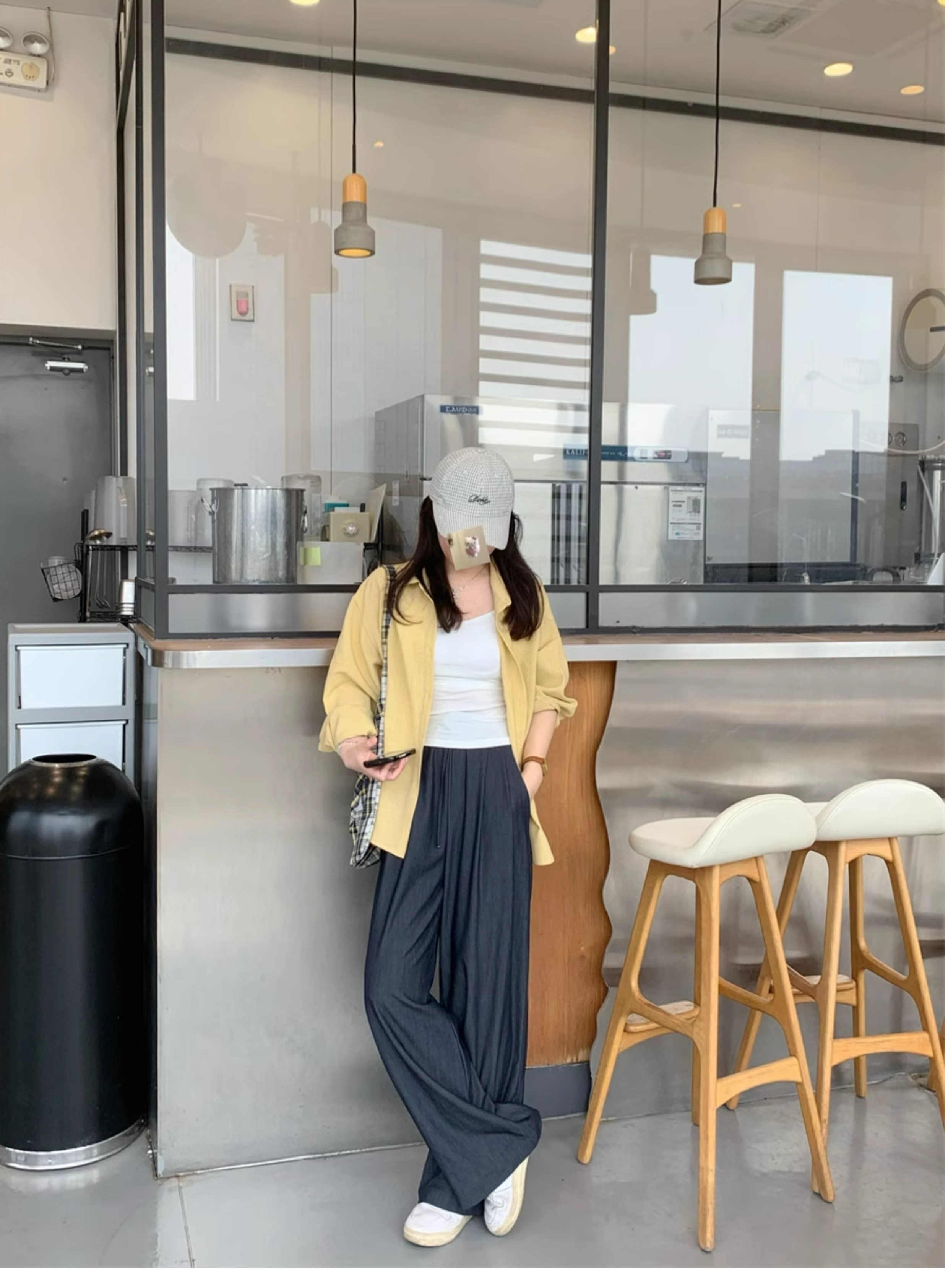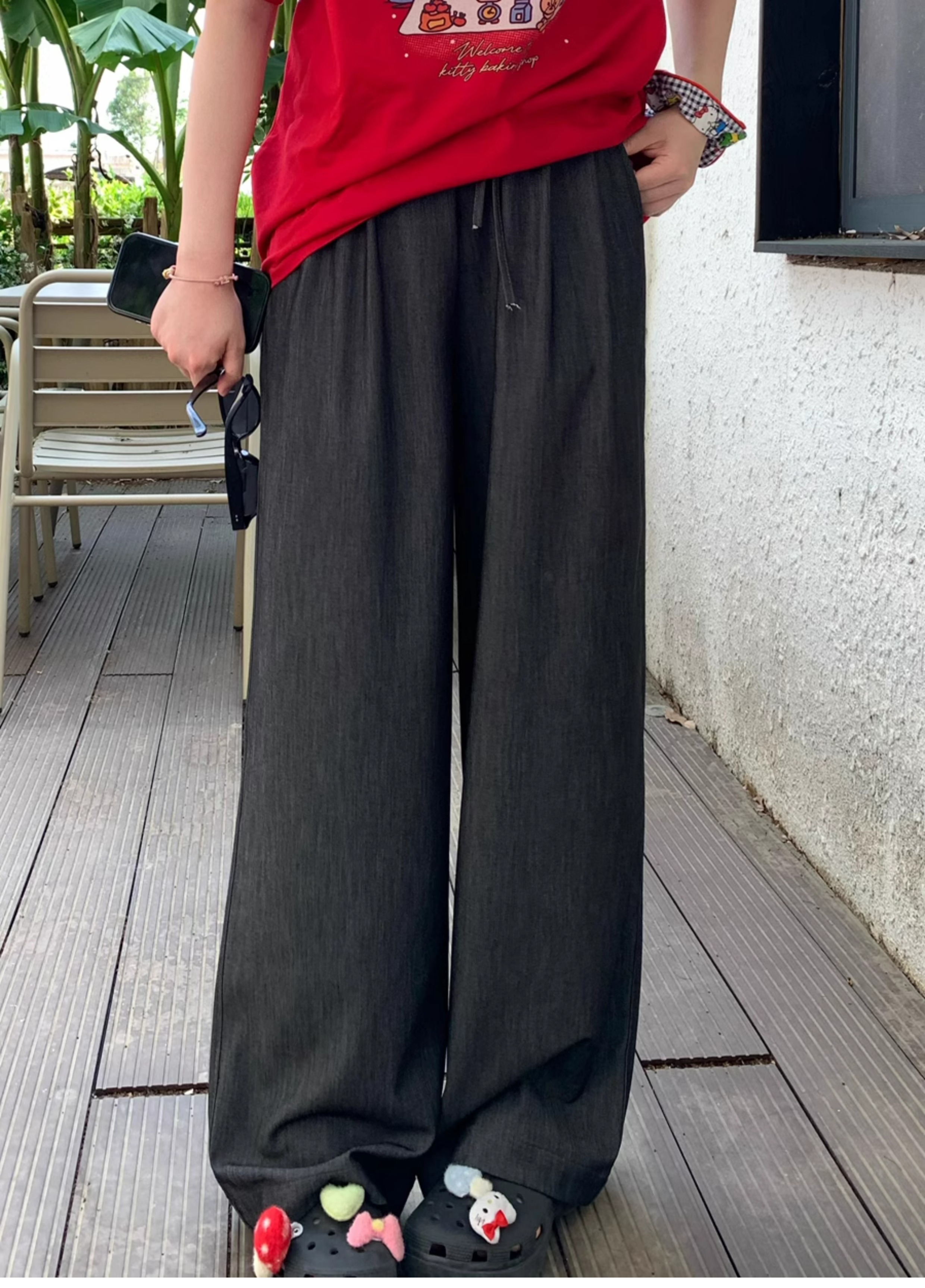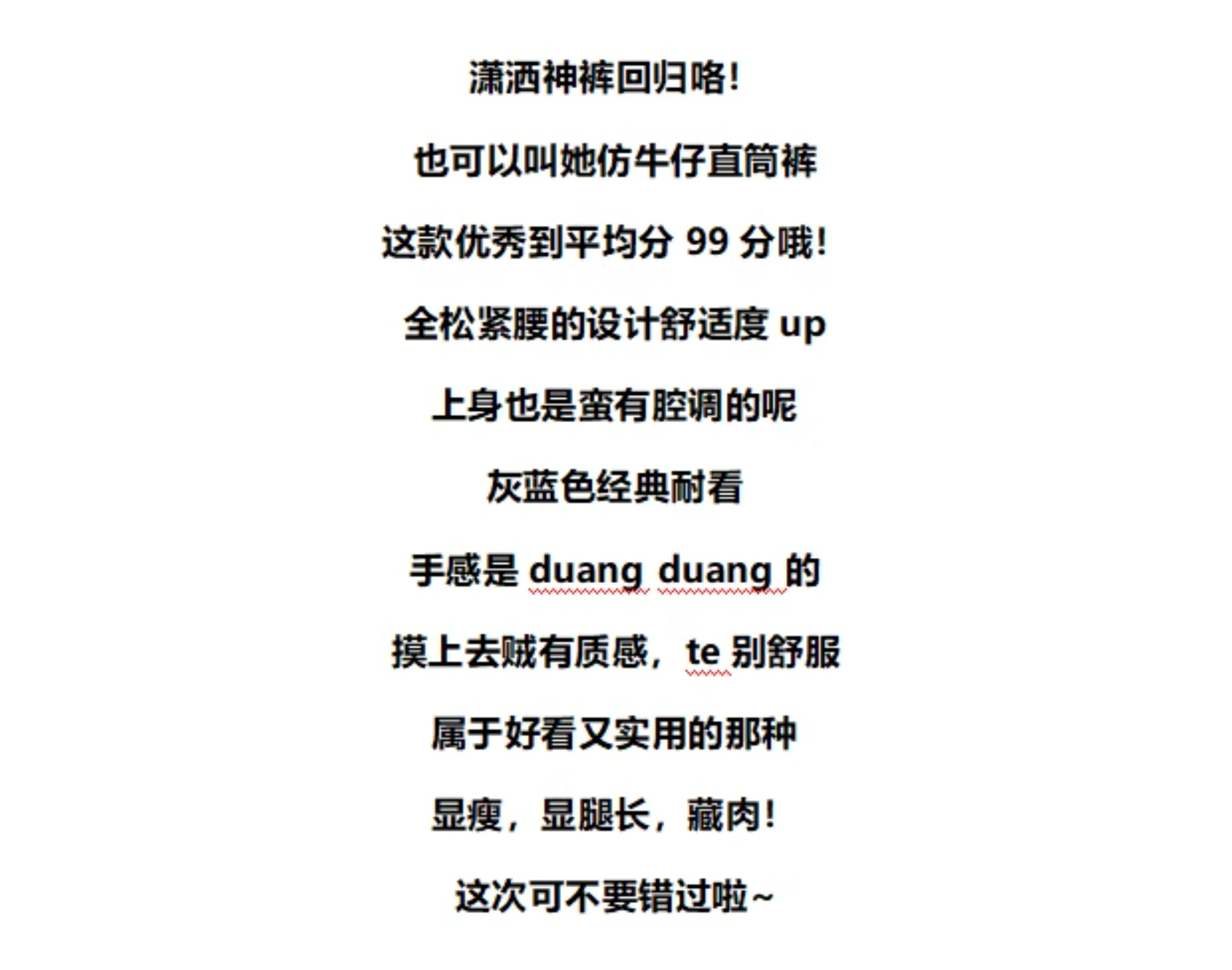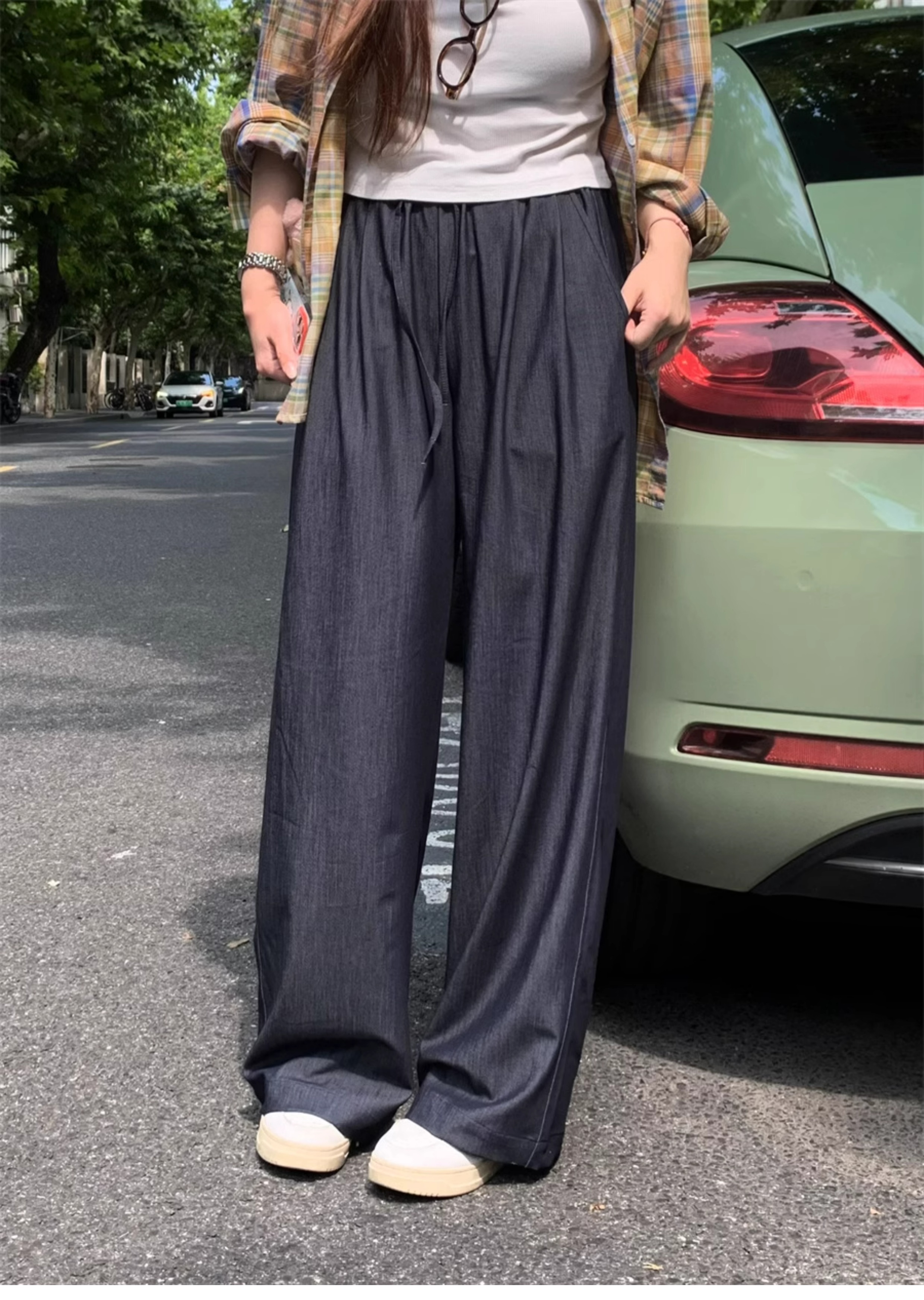 Ttang Studio's Popular Items Are Back! Stylish Pants 2025 Summer Elastic Waist Faux Denim Straight-Leg Floor-Length Pants