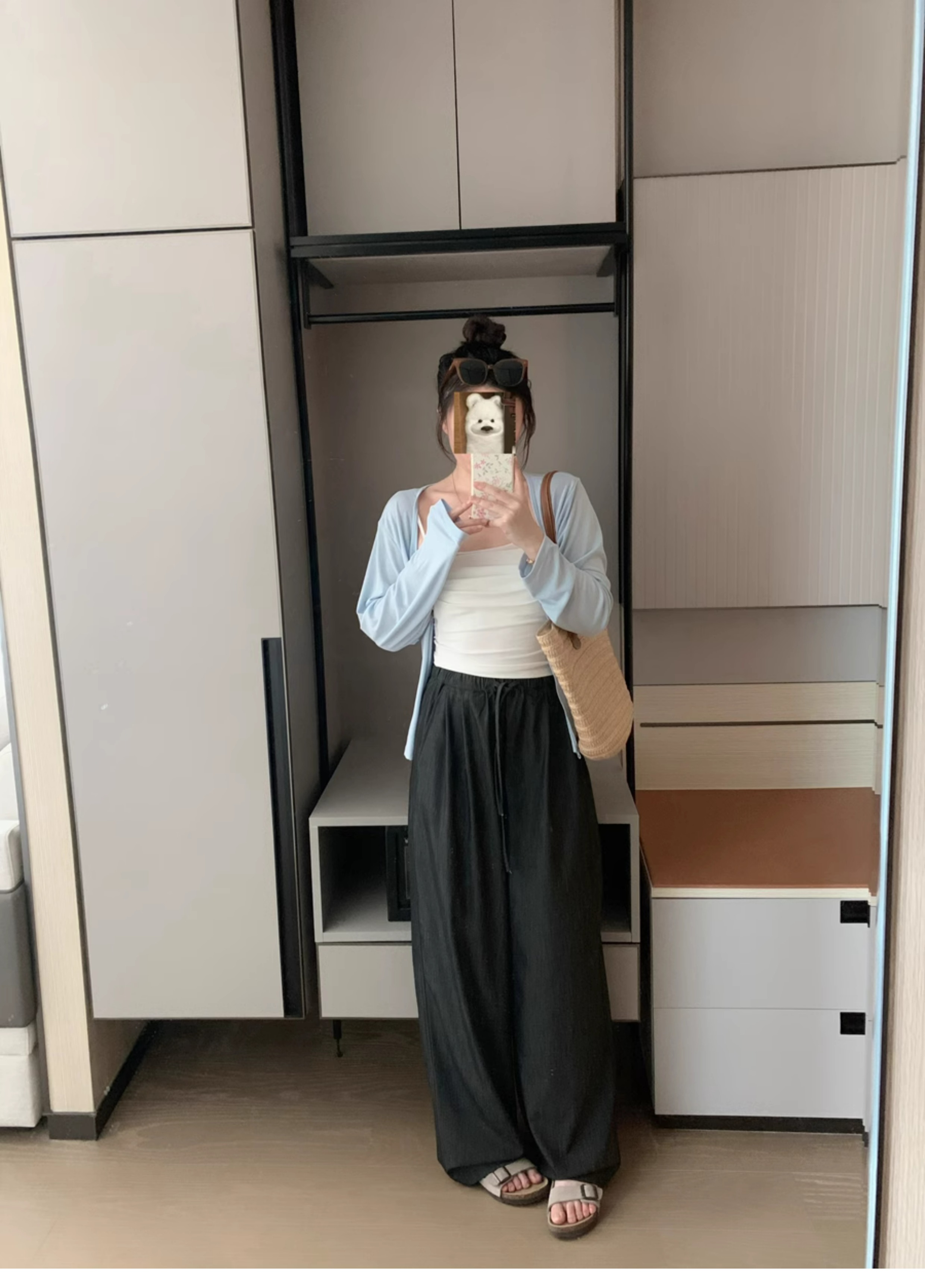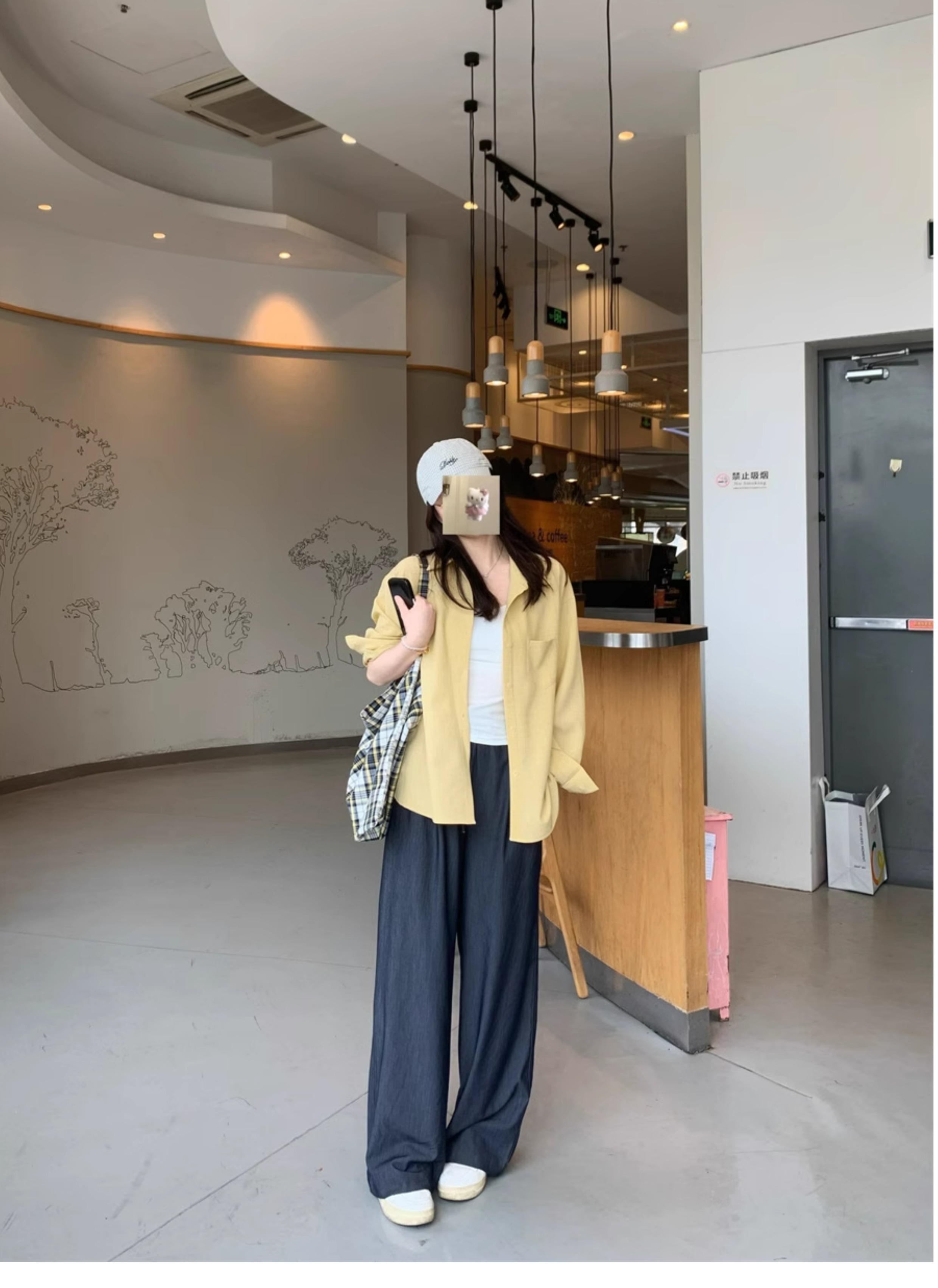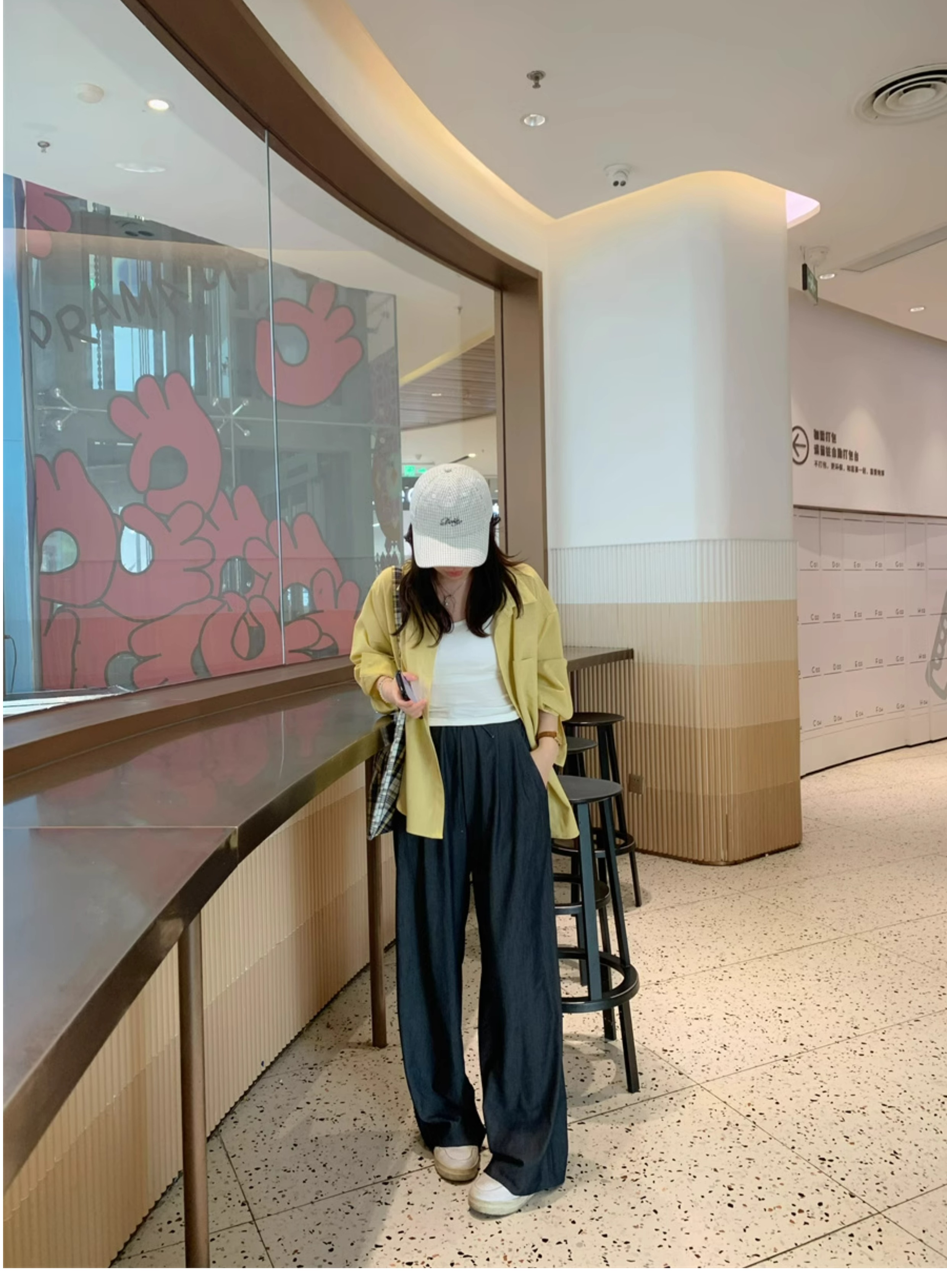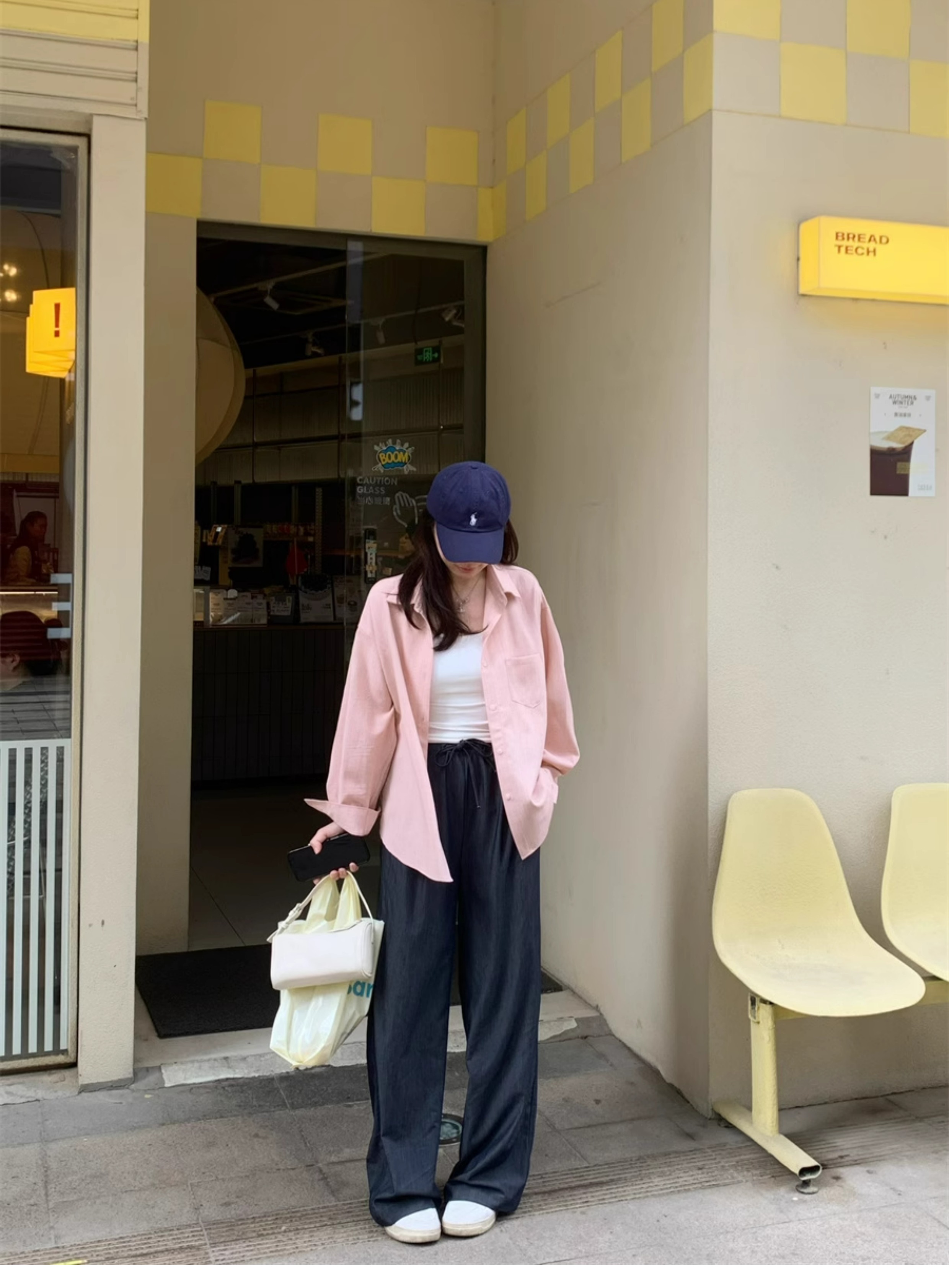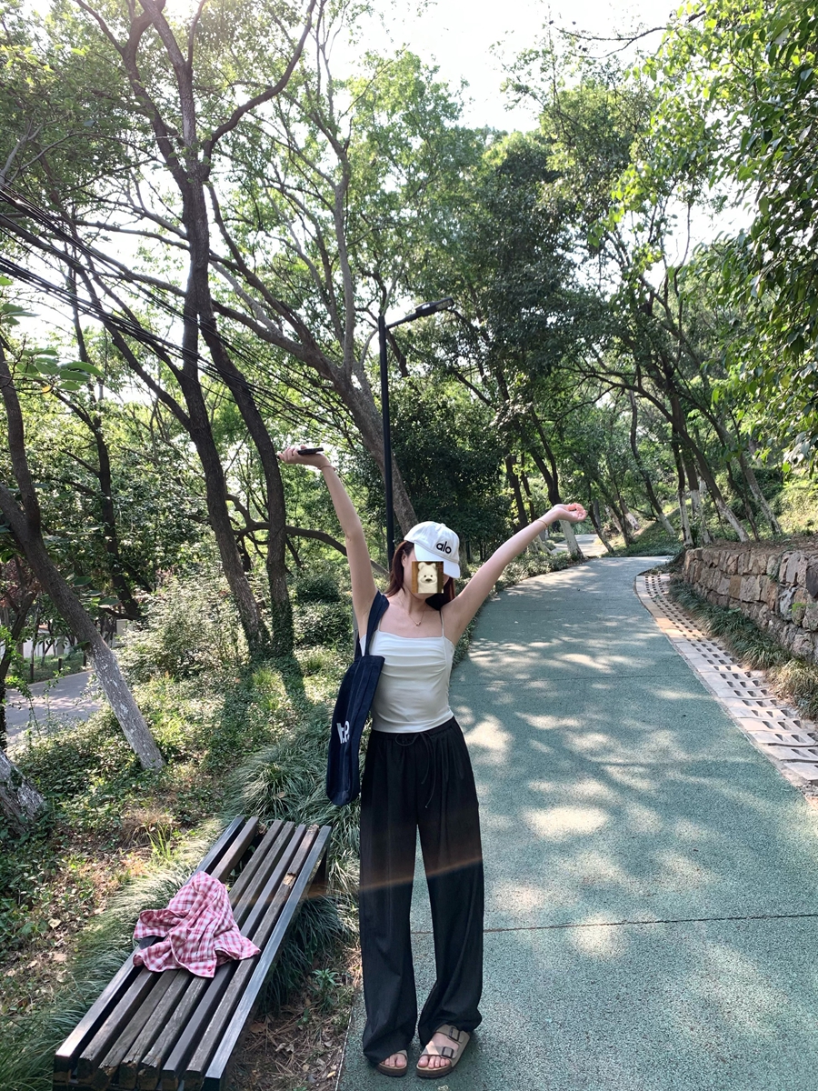 Ttang Studio's Popular Items Are Back! Stylish Pants 2025 Summer Elastic Waist Faux Denim Straight-Leg Floor-Length Pants
