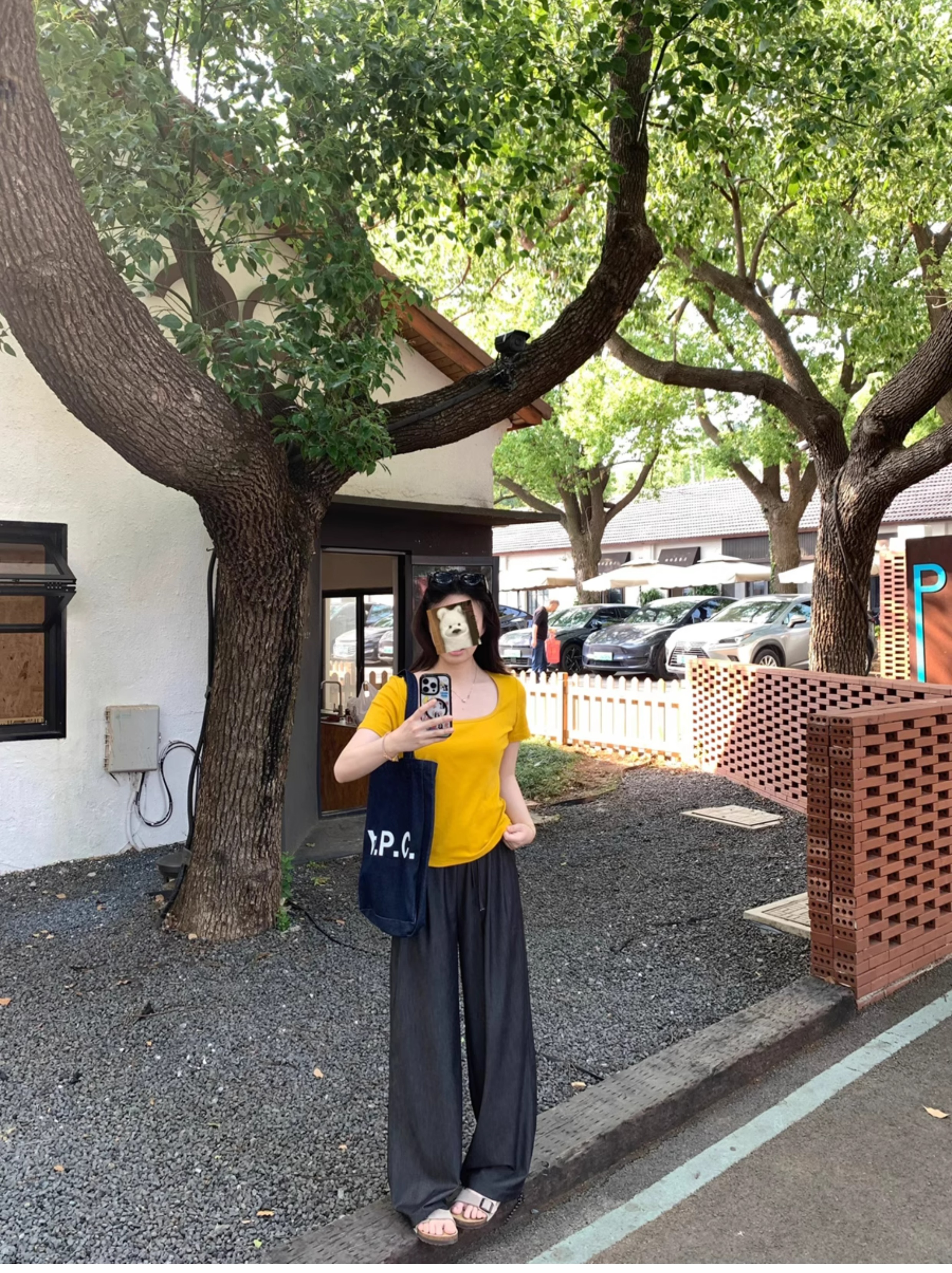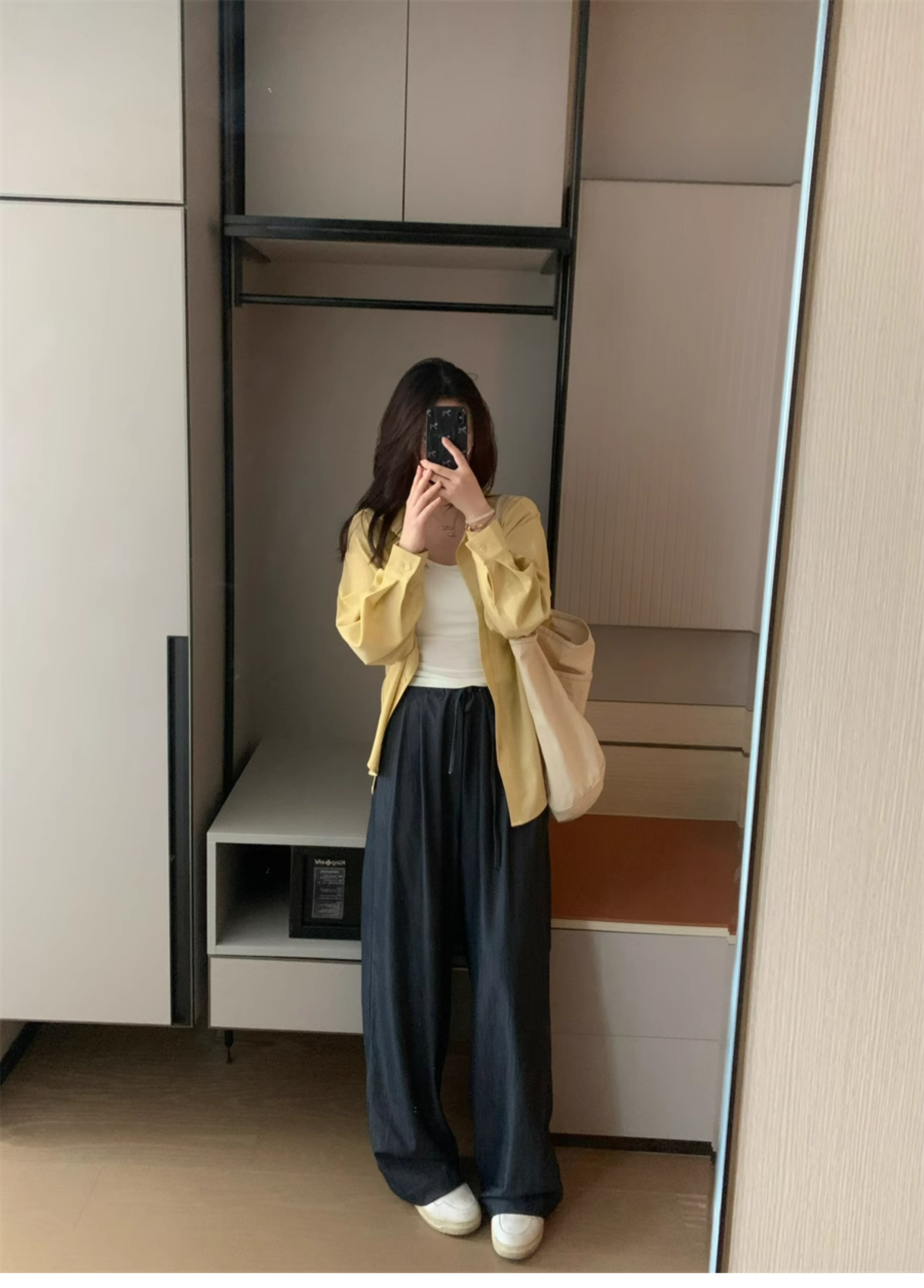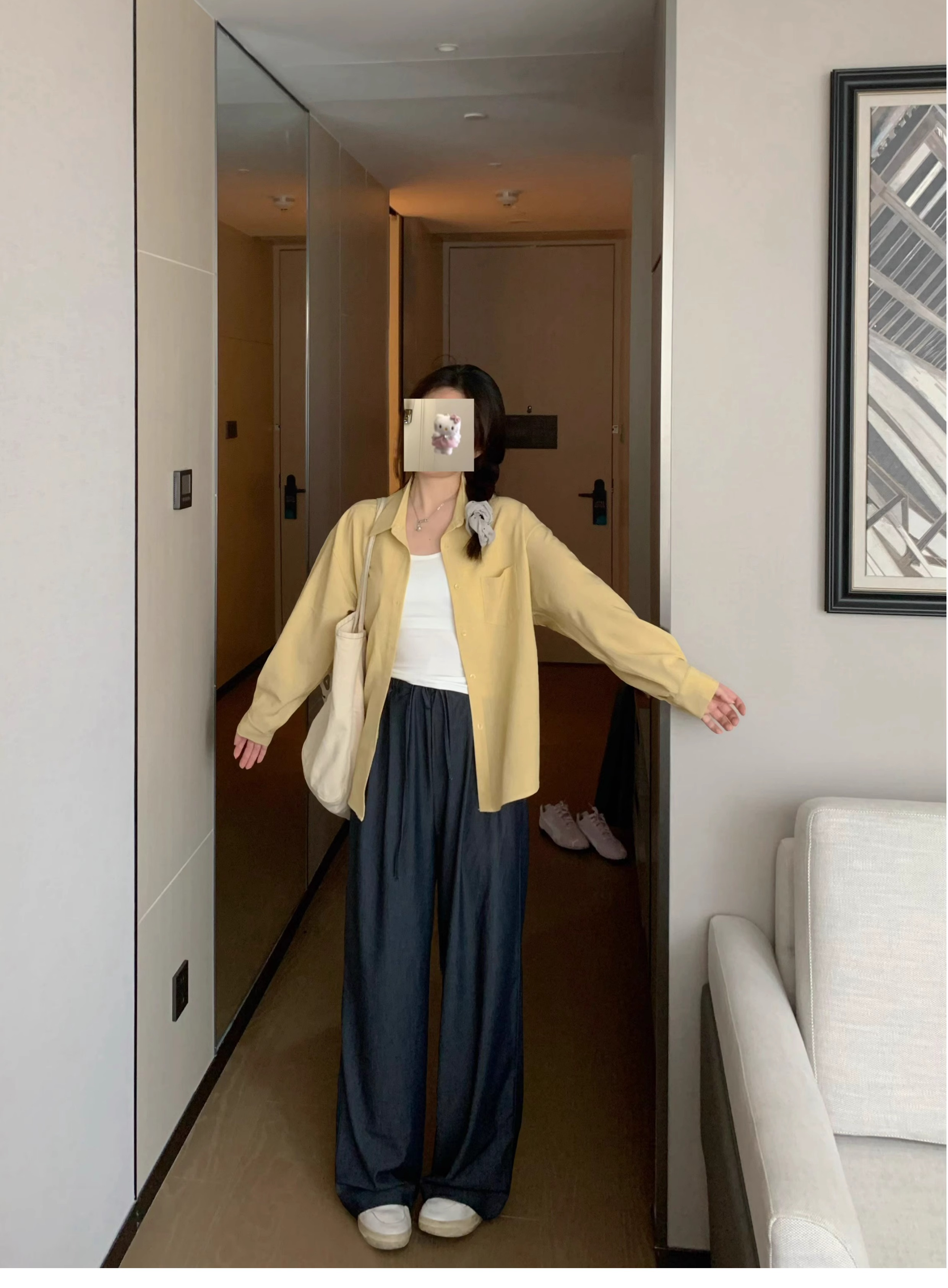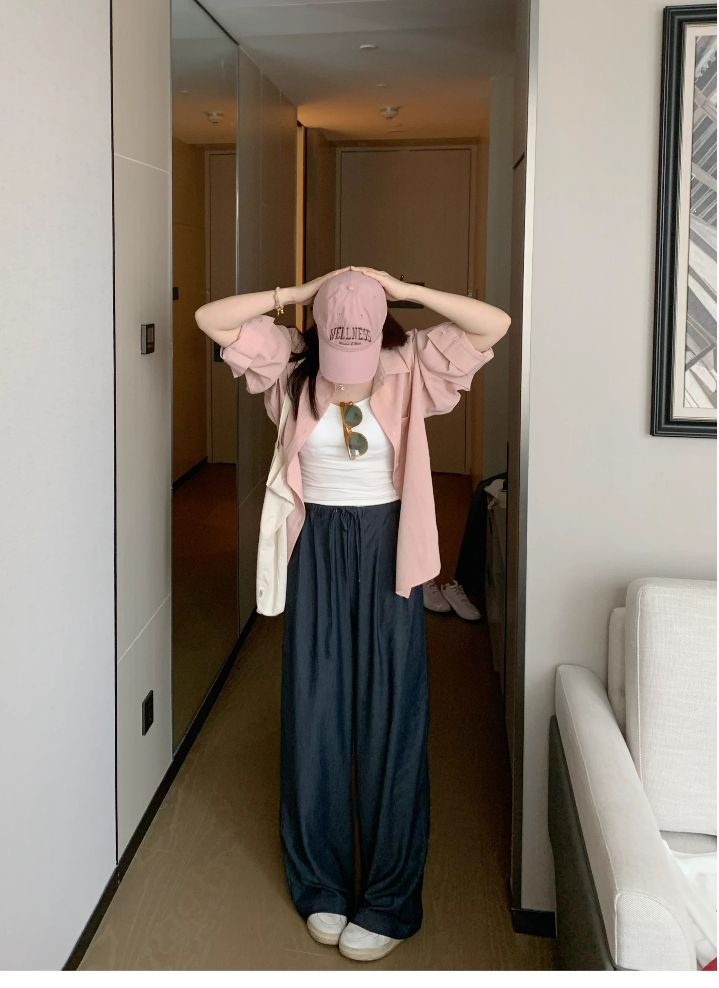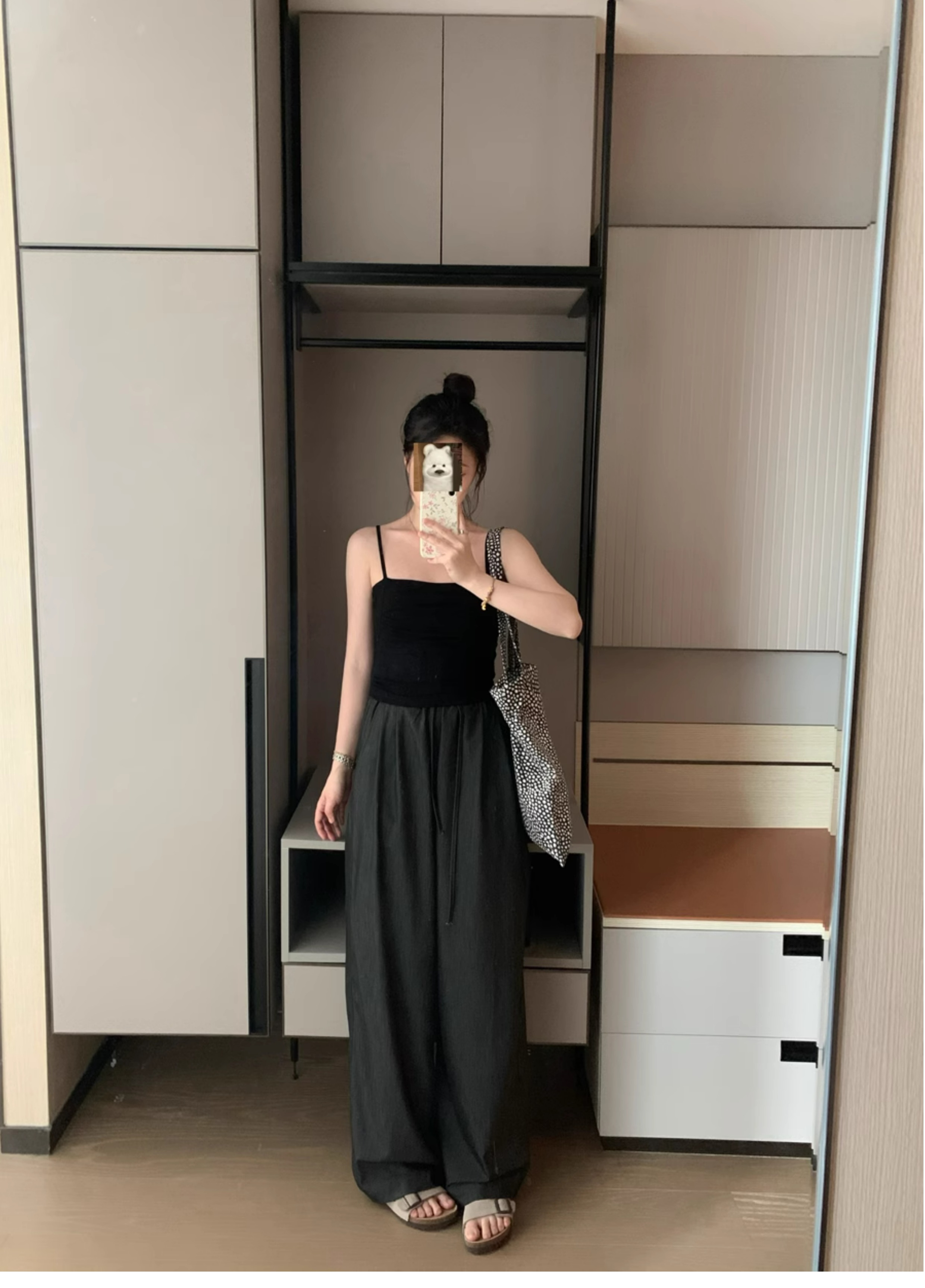 Ttang Studio's Popular Items Are Back! Stylish Pants 2025 Summer Elastic Waist Faux Denim Straight-Leg Floor-Length Pants