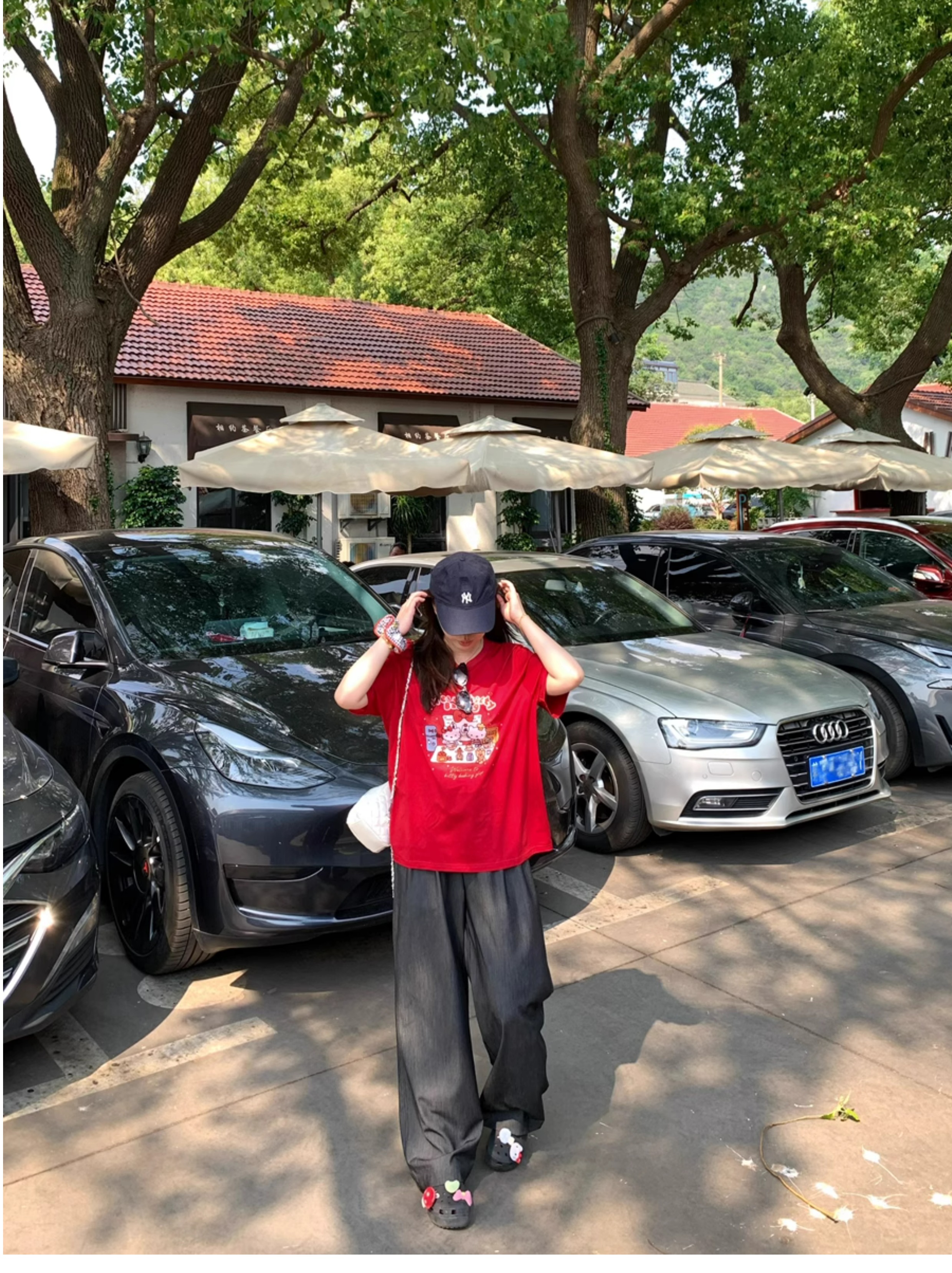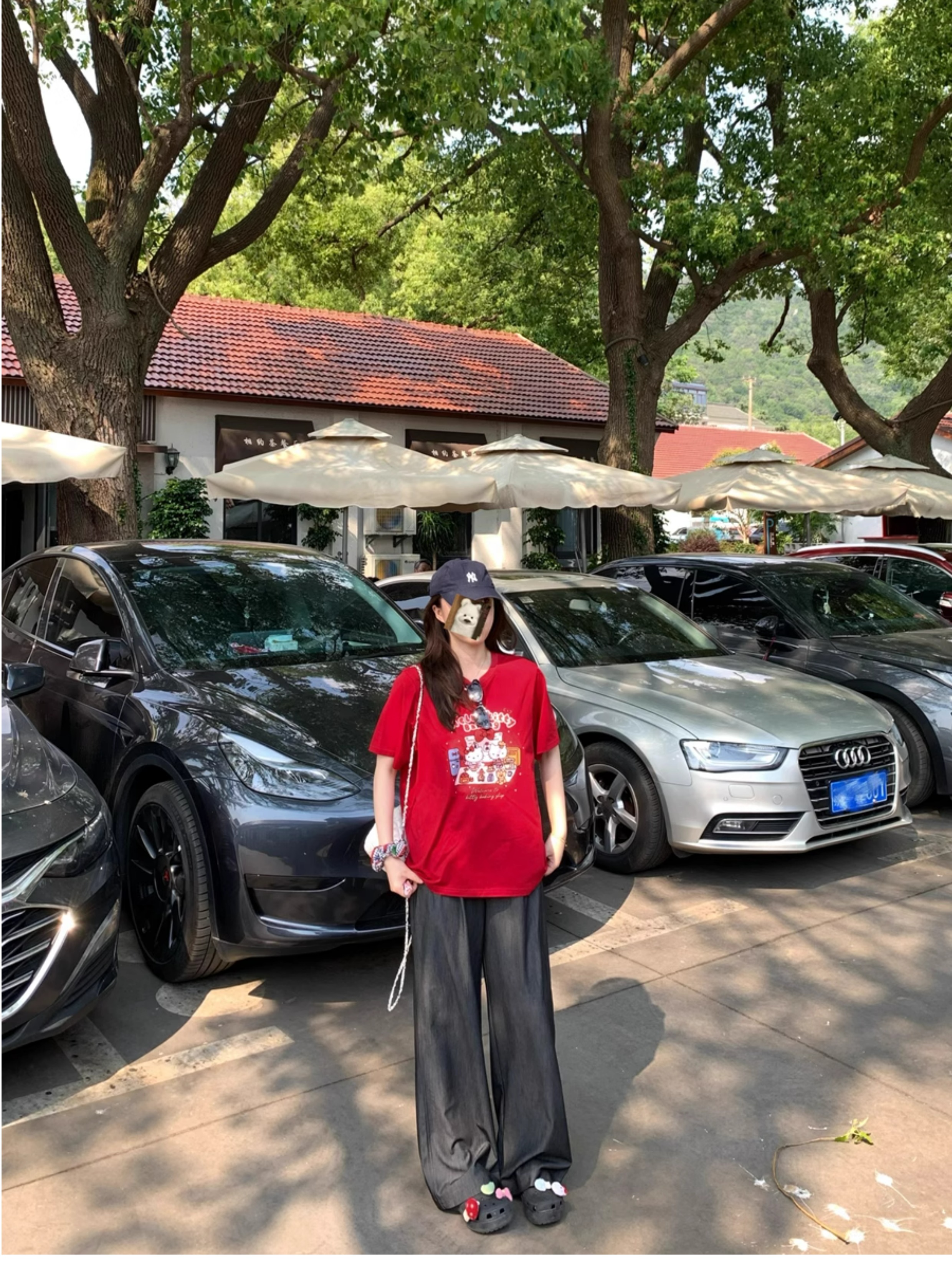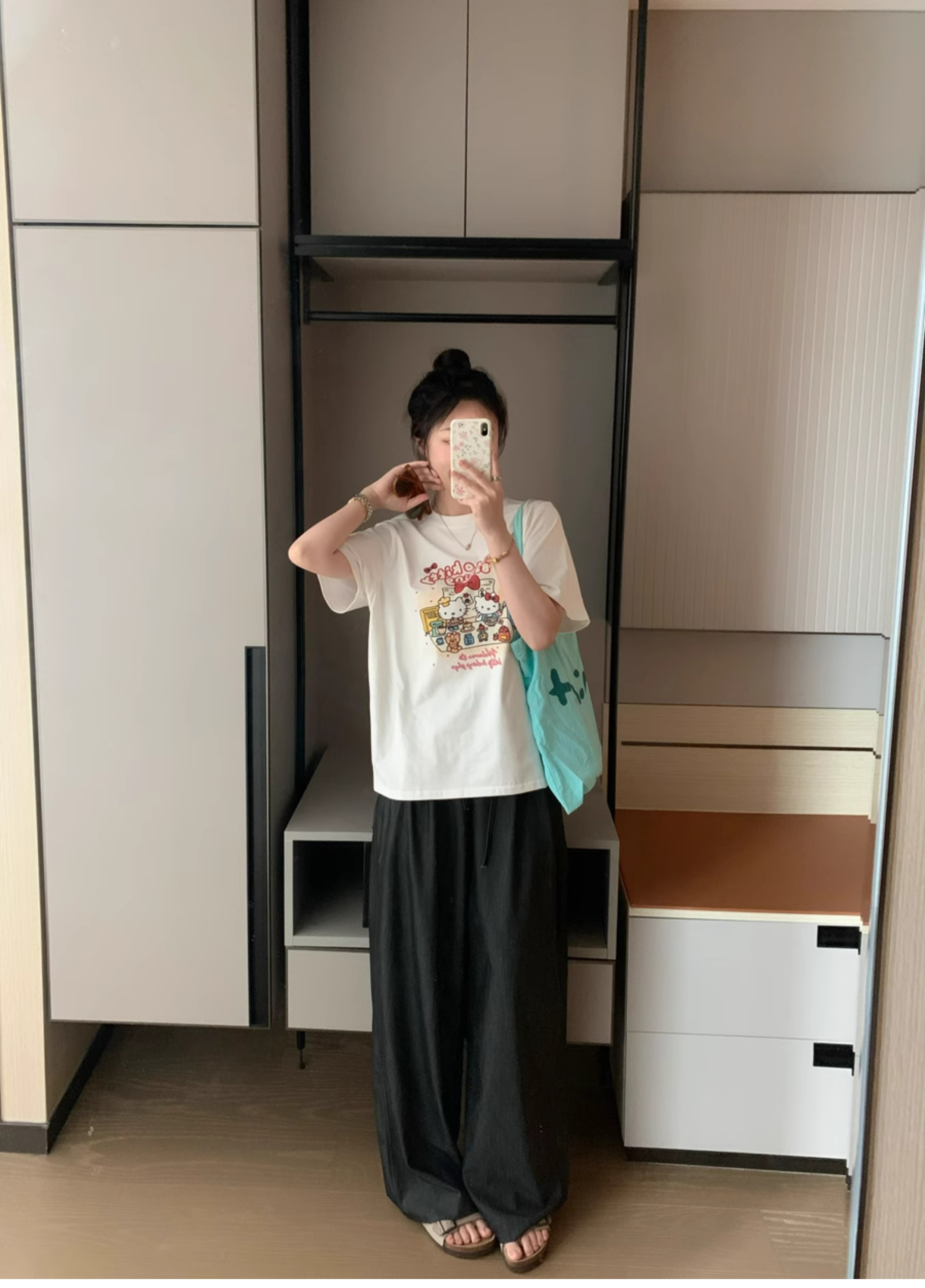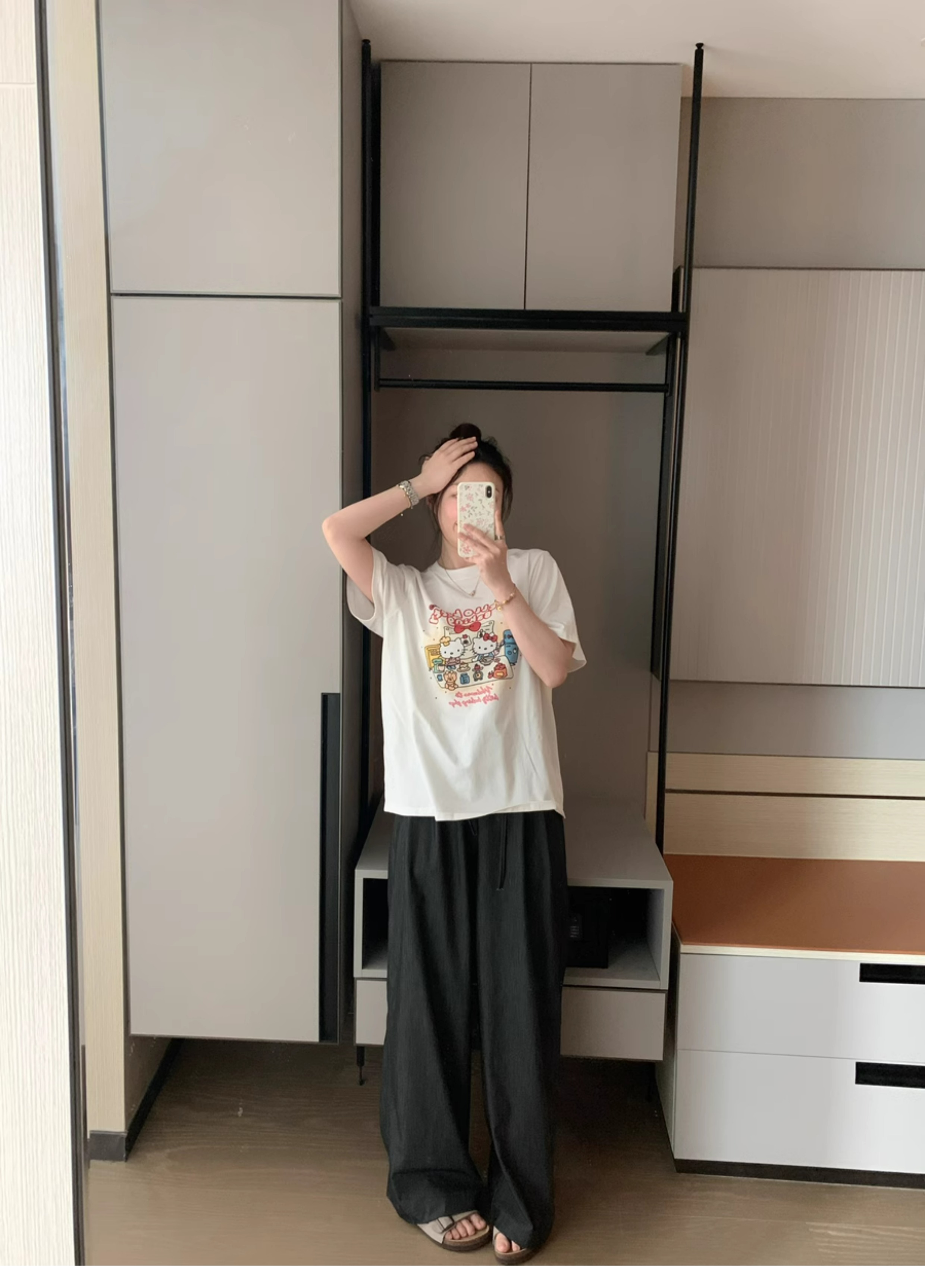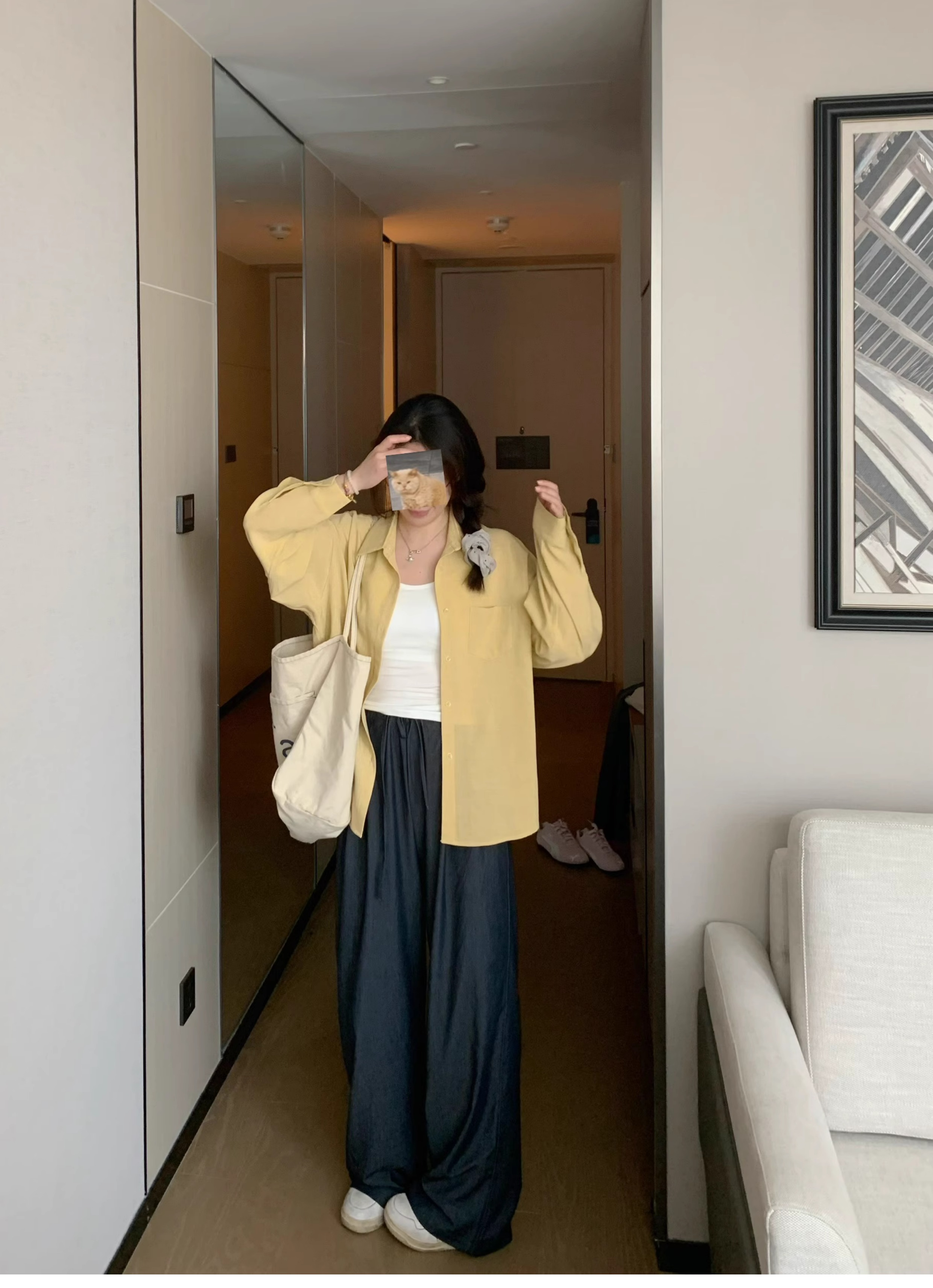 Ttang Studio's Popular Items Are Back! Stylish Pants 2025 Summer Elastic Waist Faux Denim Straight-Leg Floor-Length Pants