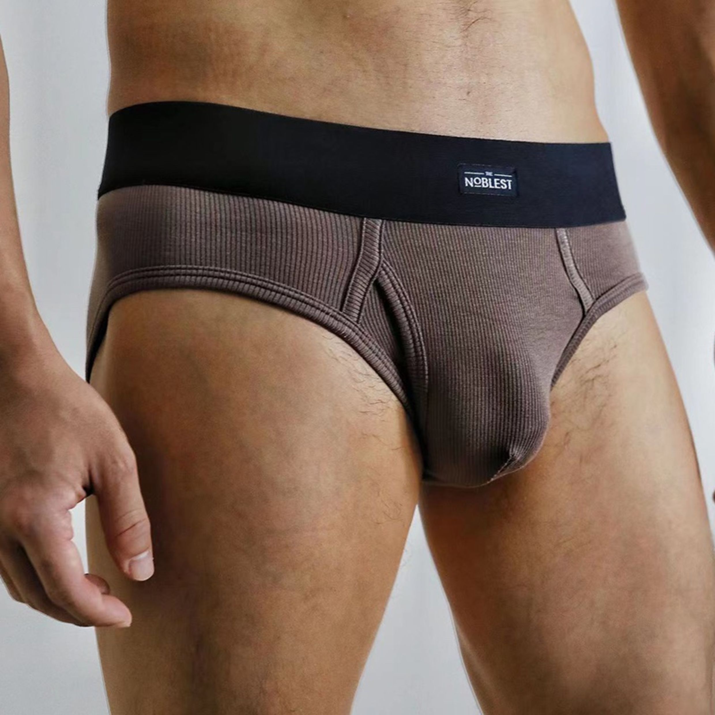 Noblest Men's Ribbed Rayon Briefs Solid Color Sexy Underwear Young Men's Shorts