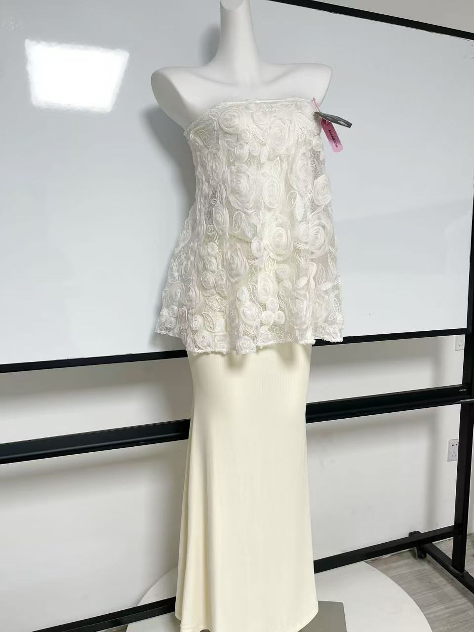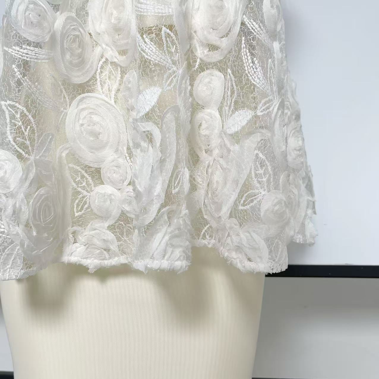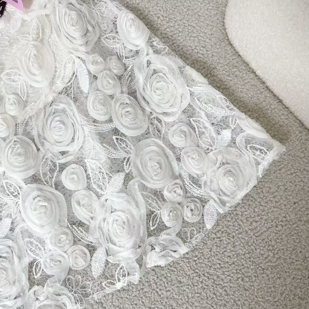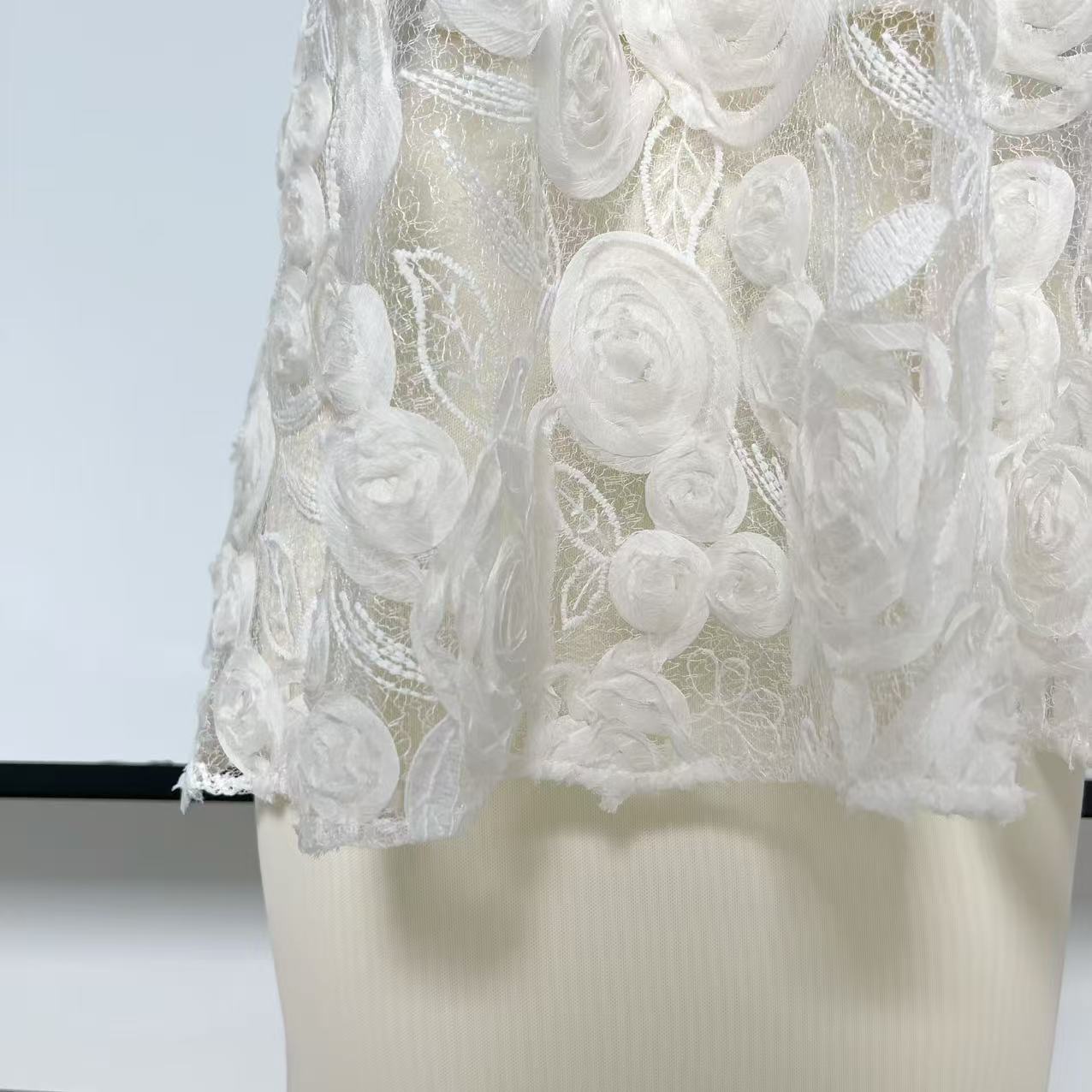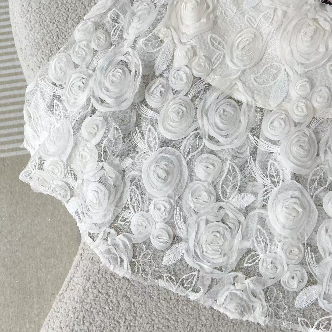 裙身立体玫瑰刺绣与花卉亮片装饰