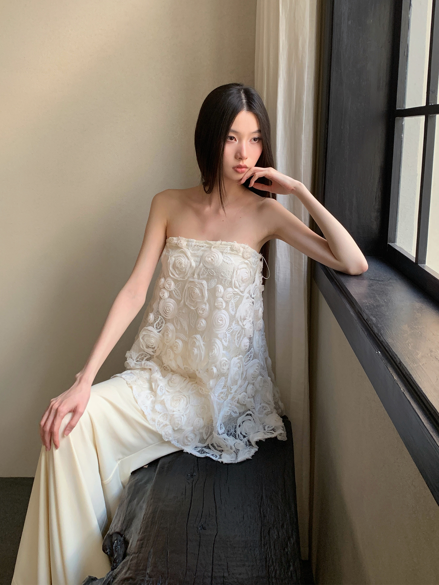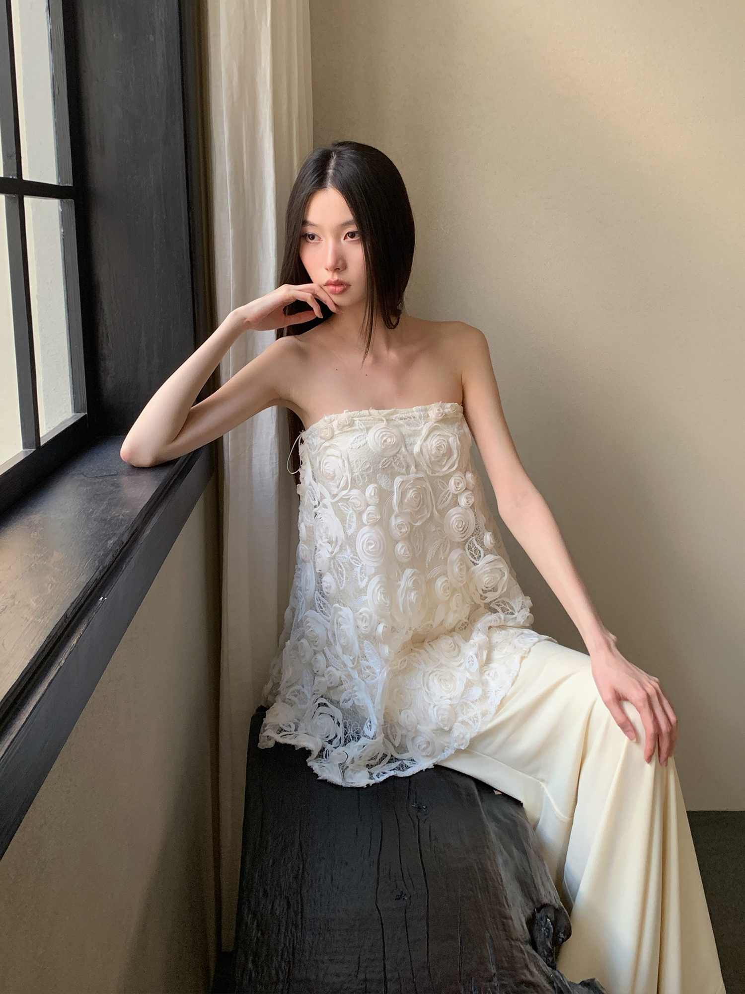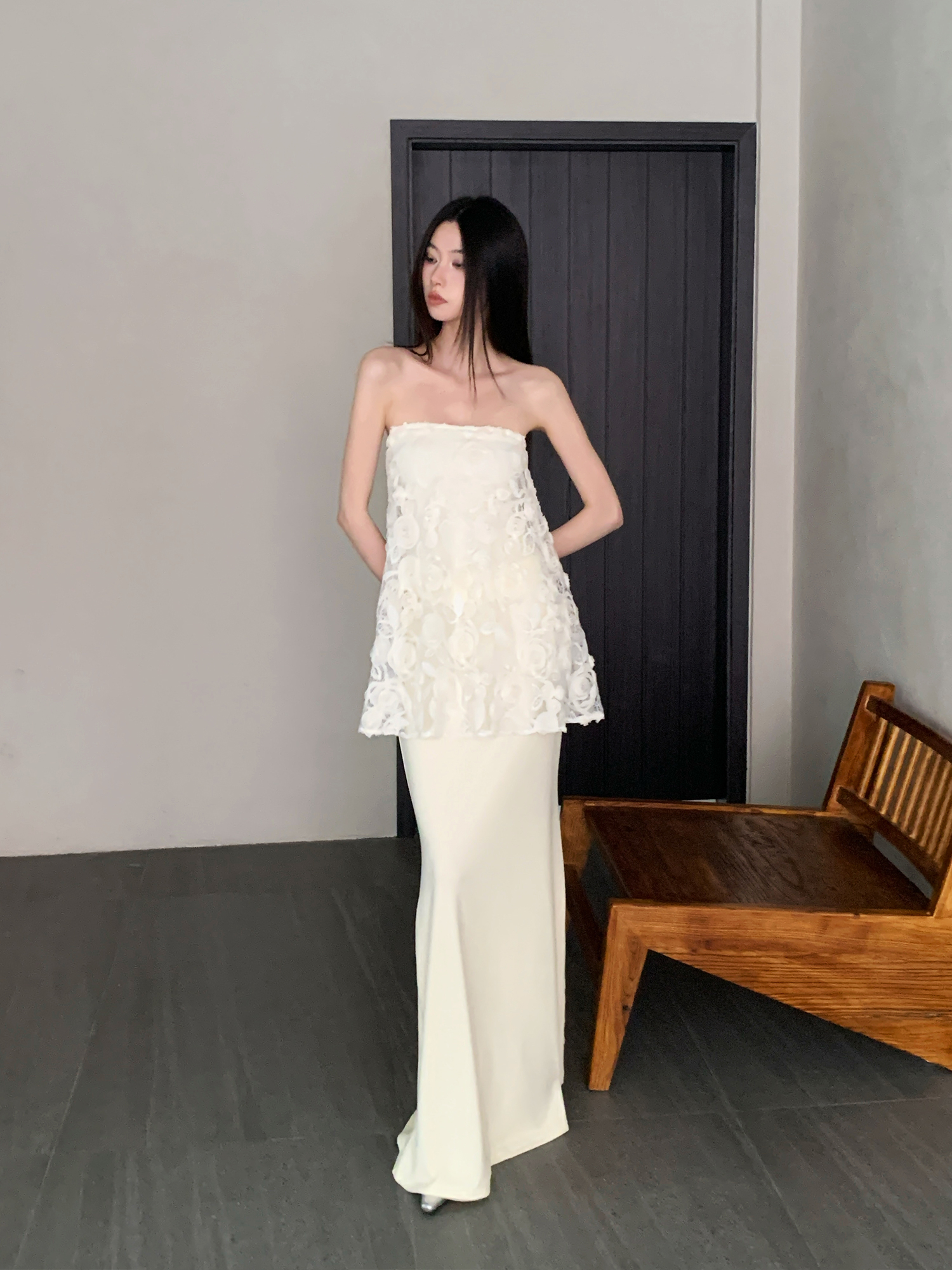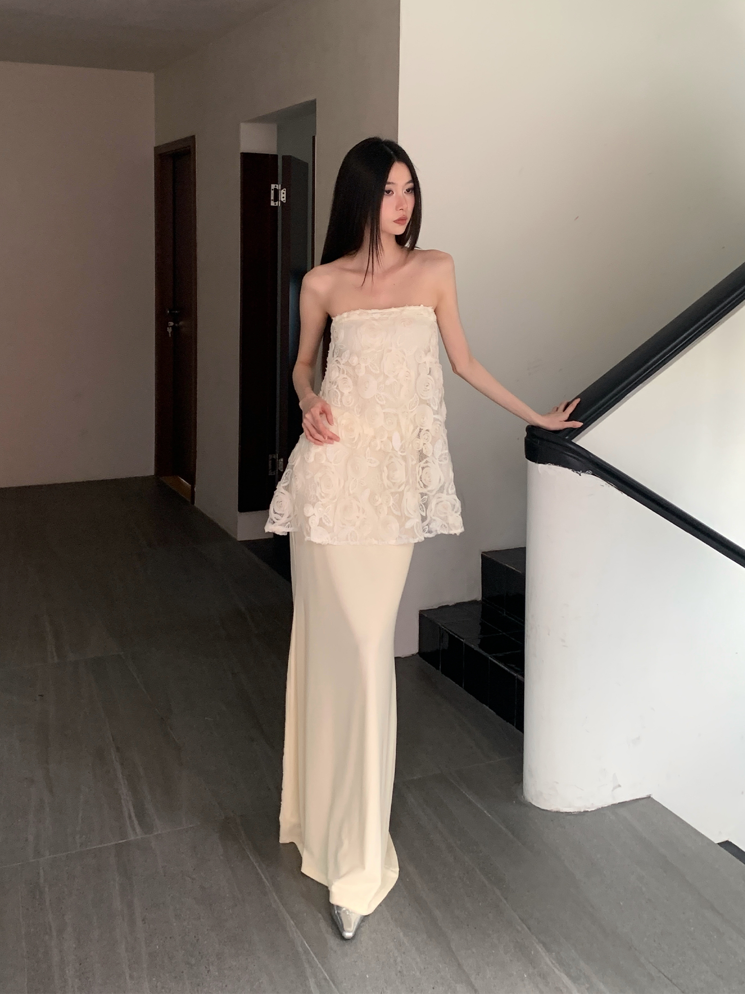 抹胸设计大方展露迷人锁骨与肩颈线条