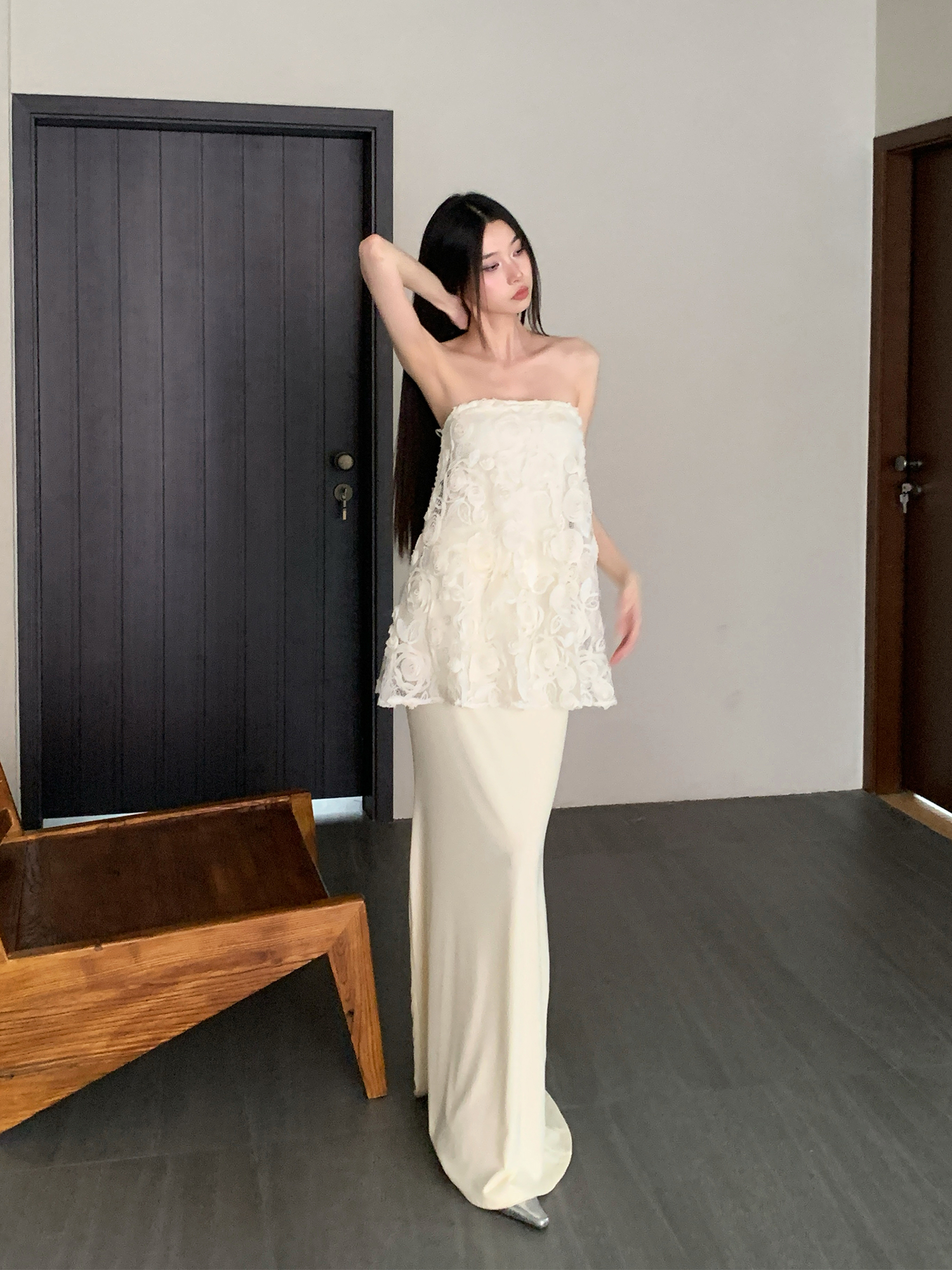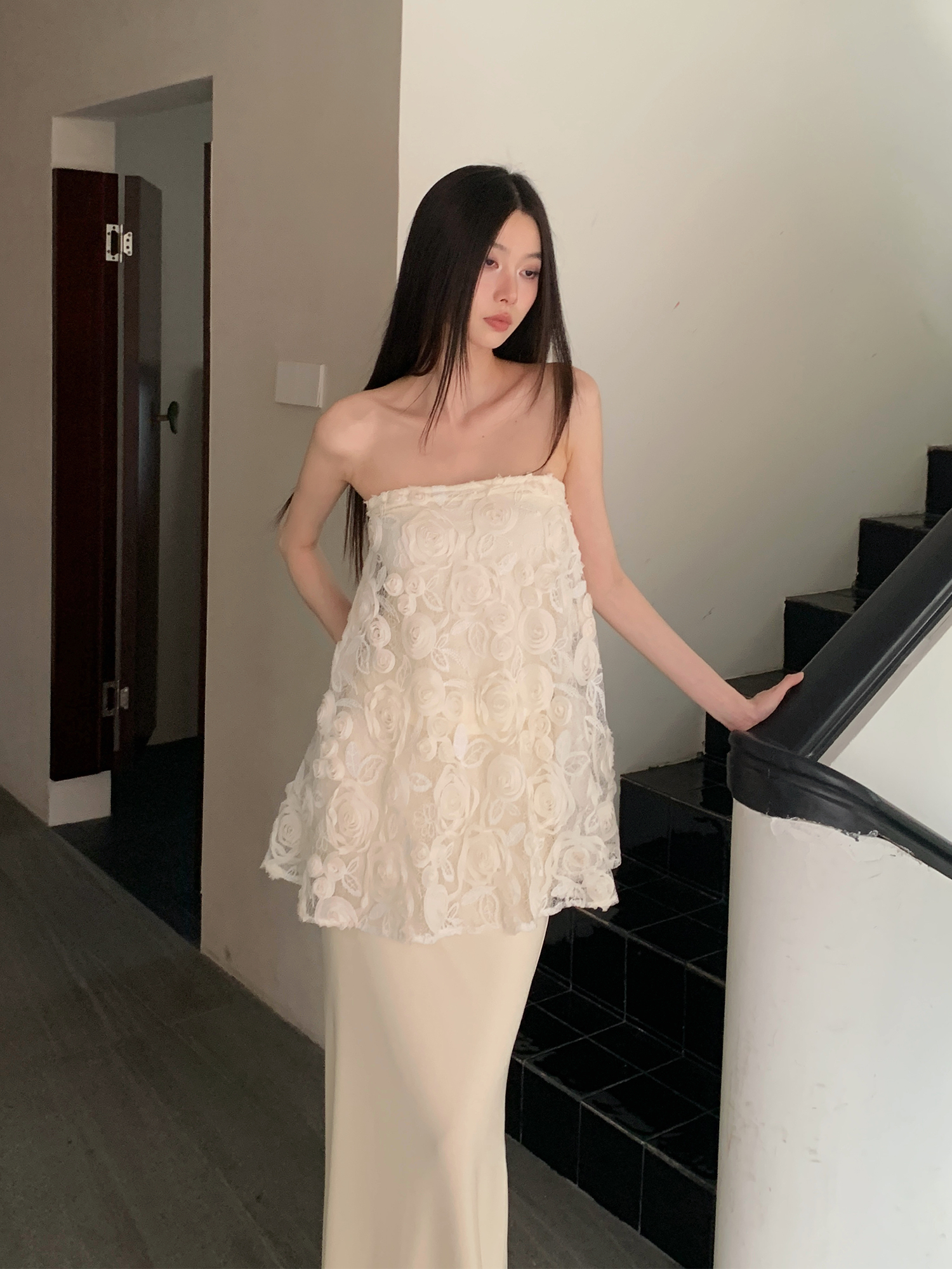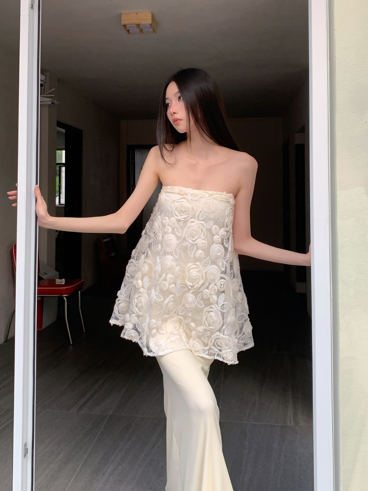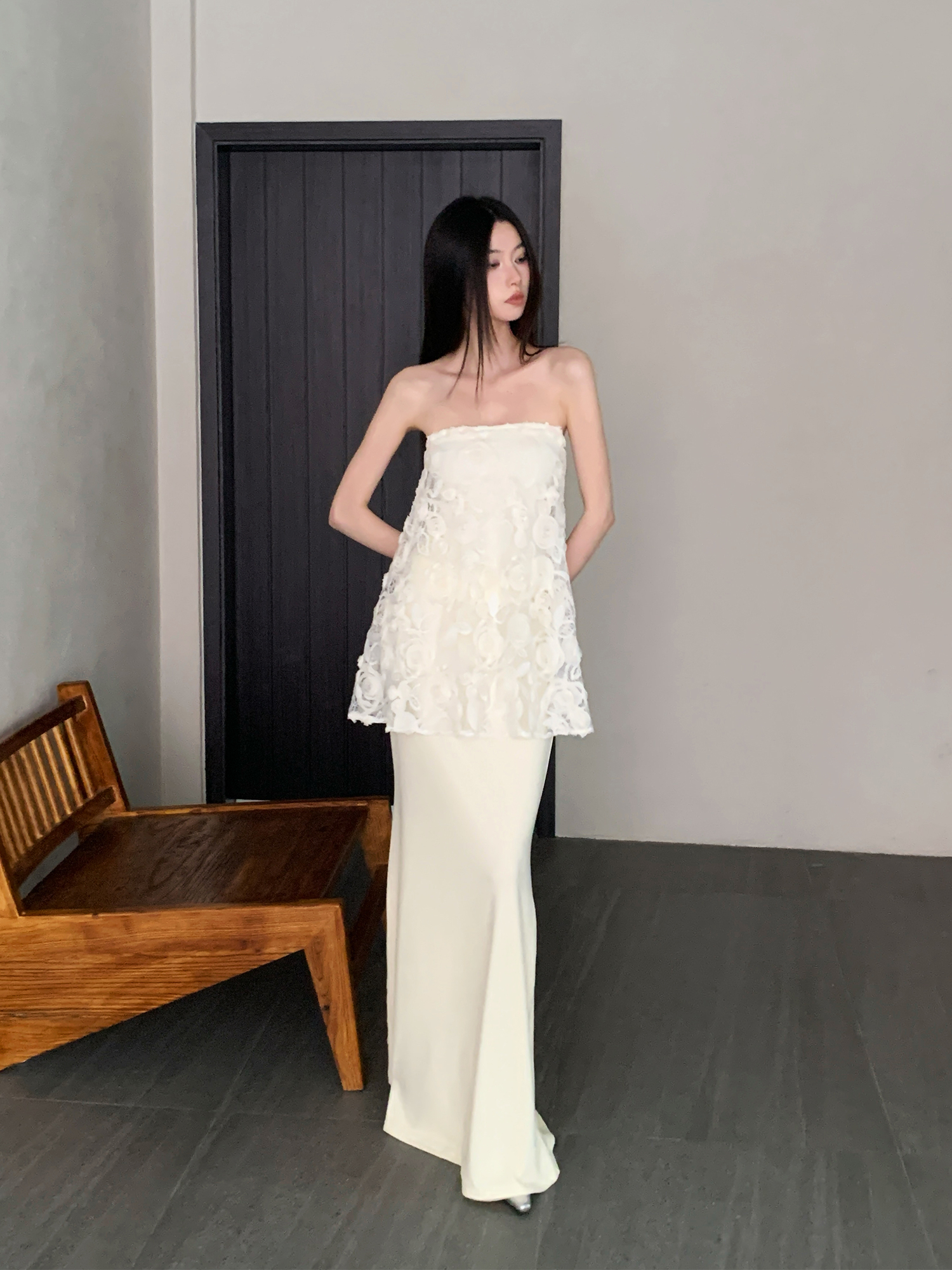 抹胸设计大方展露迷人锁骨与肩颈线条