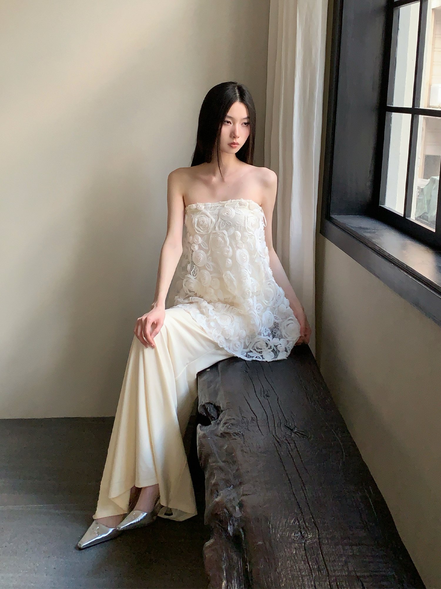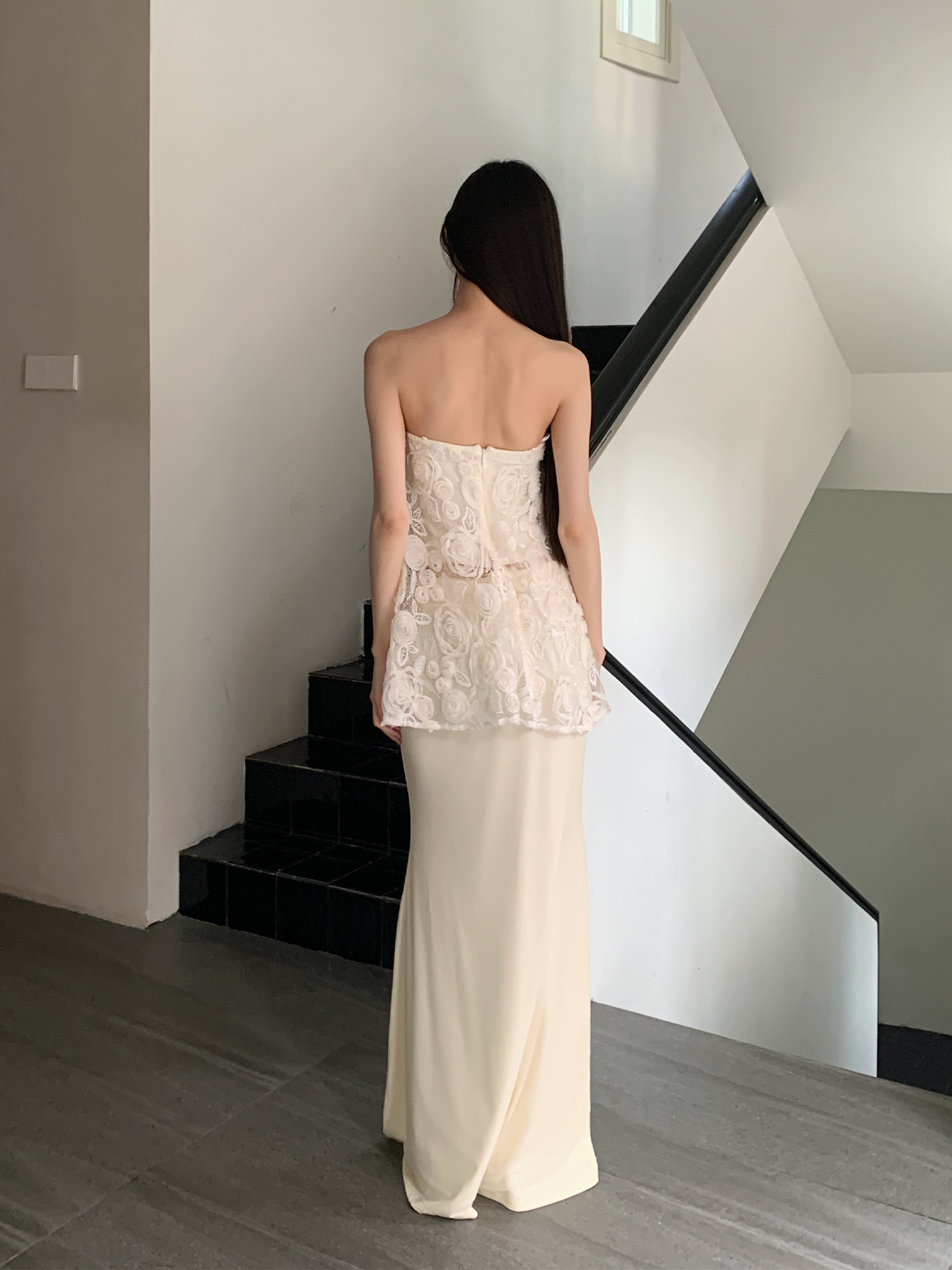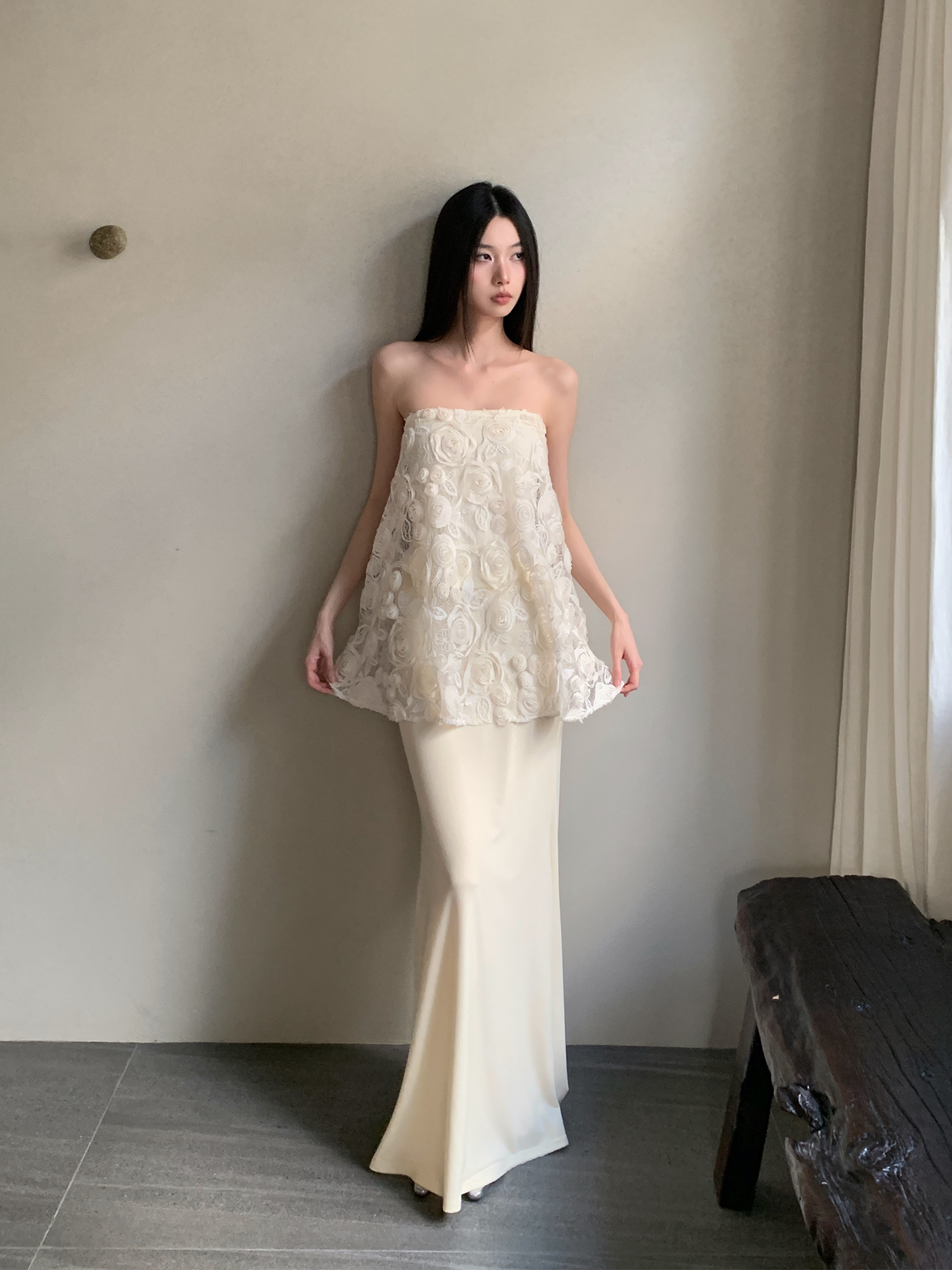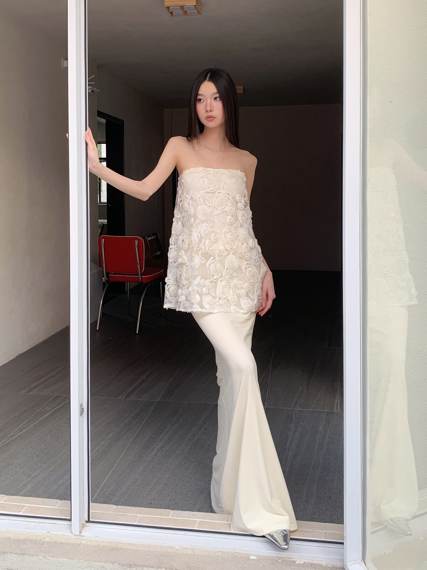 抹胸设计大方展露迷人锁骨与肩颈线条