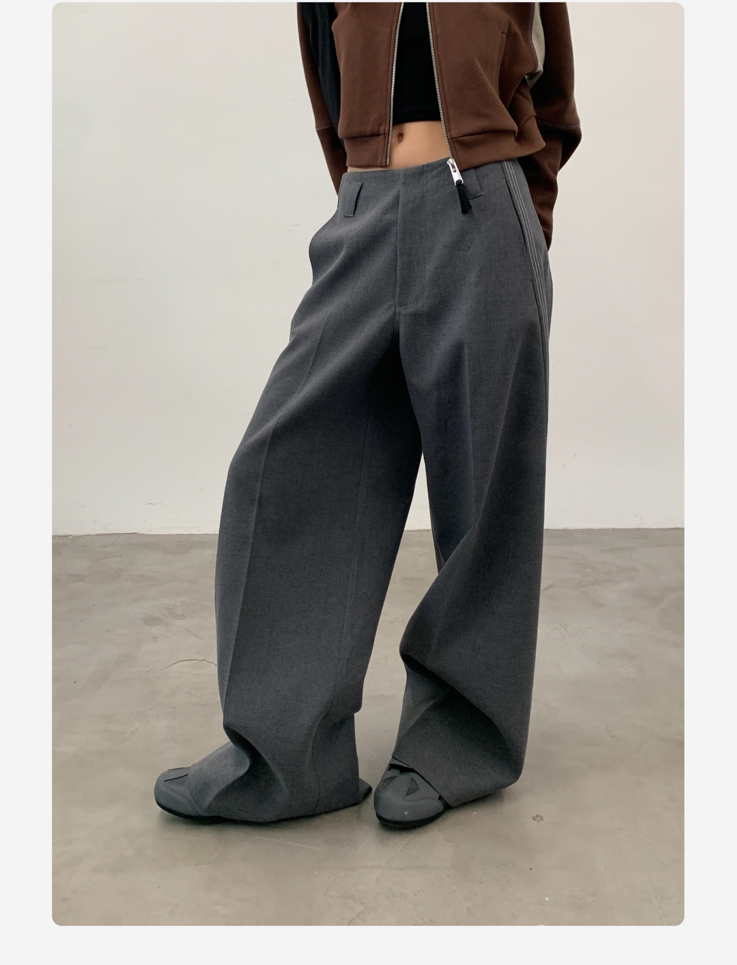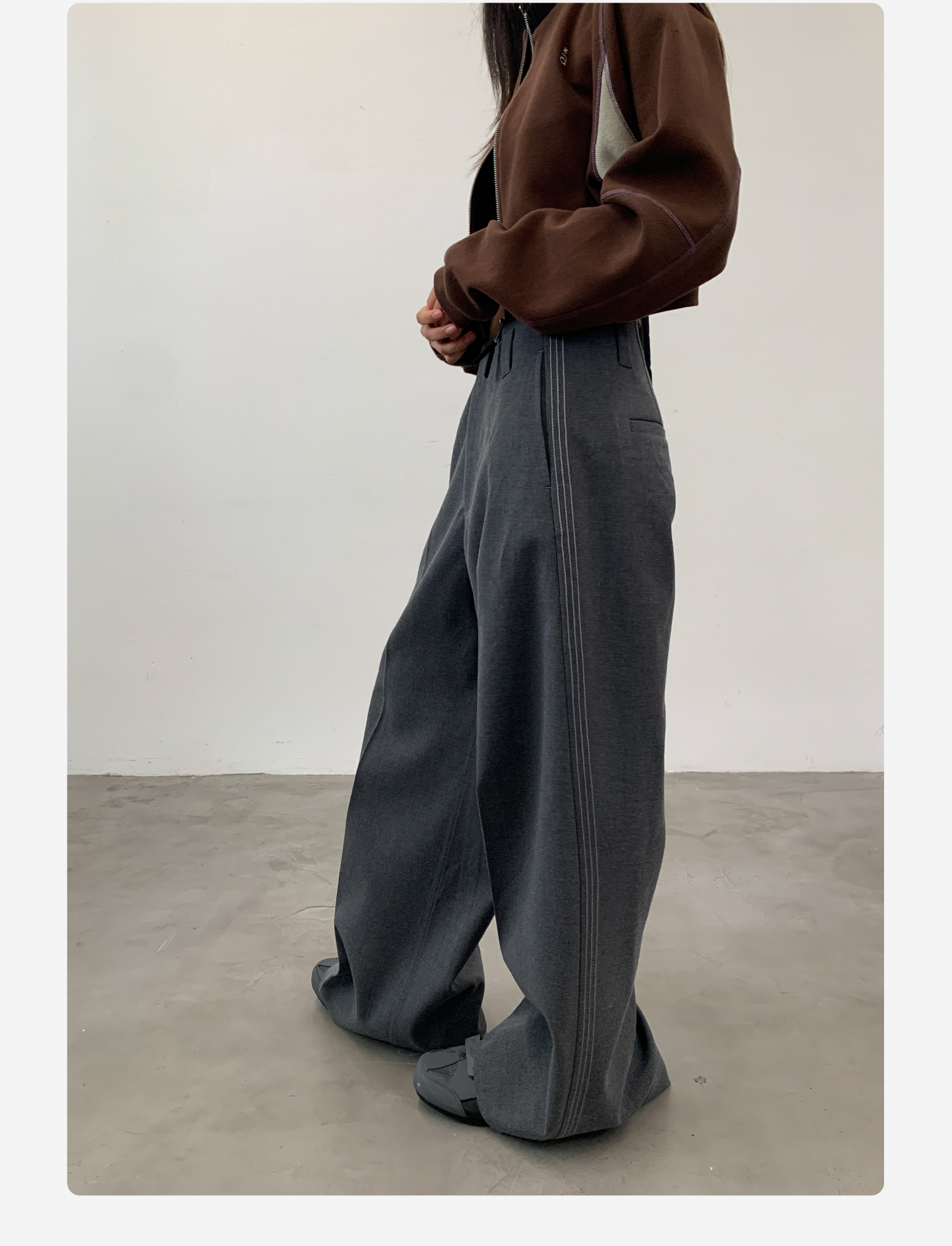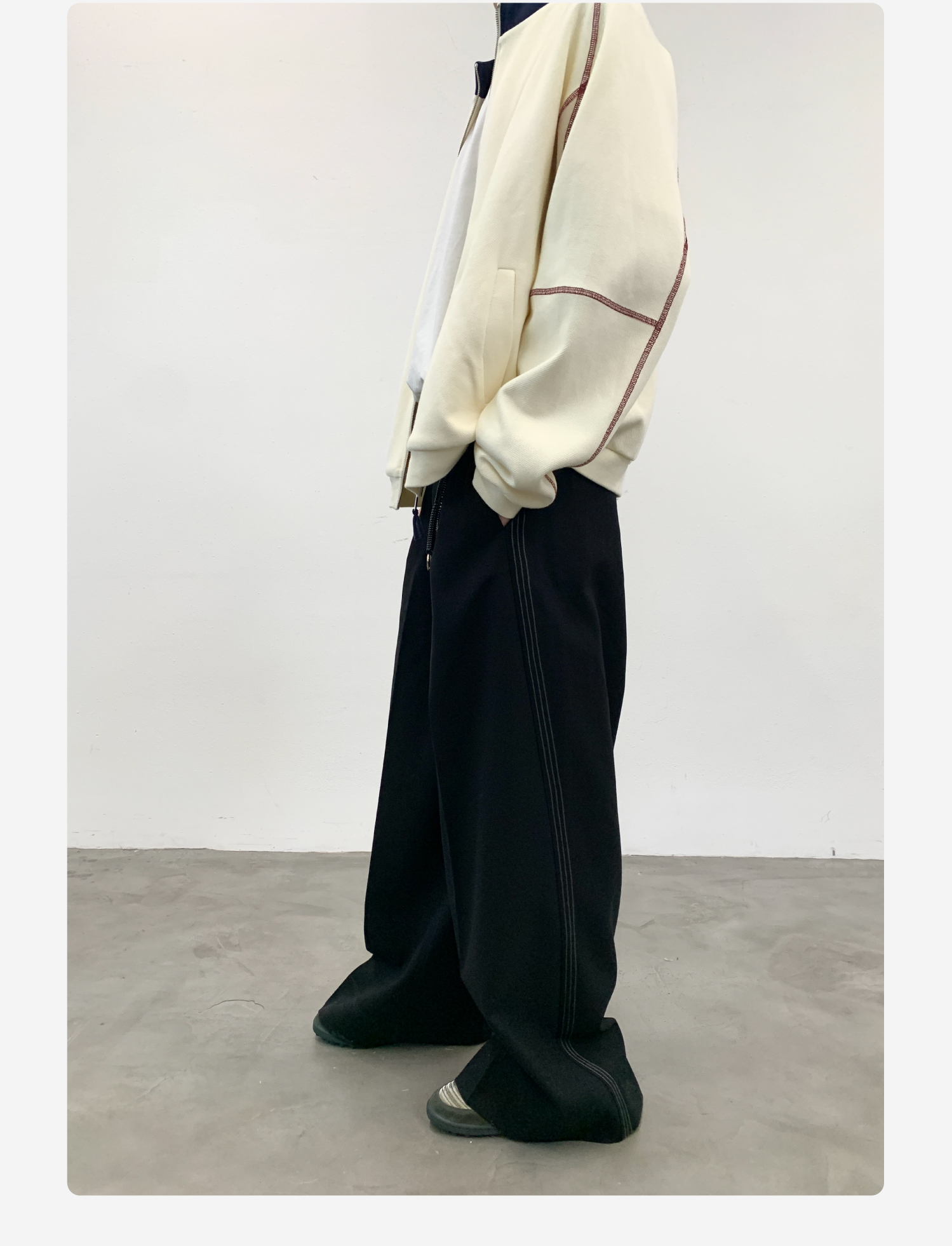 Roaringwild Roaring Beast Black Color-Block Loose Fit Women's Wide-Leg Pants That Make Legs Look Longer, Chinese Style Men's Dress Pants