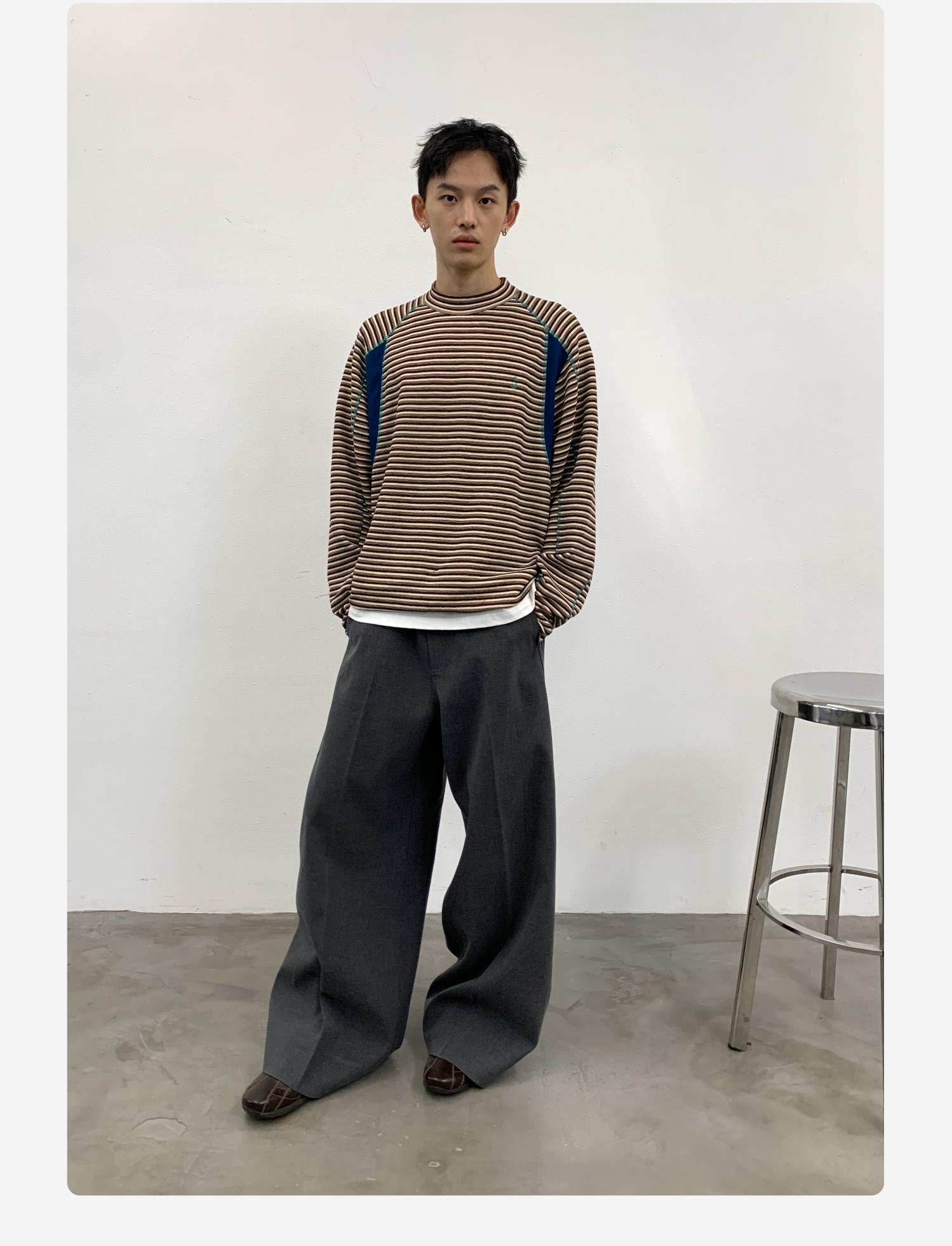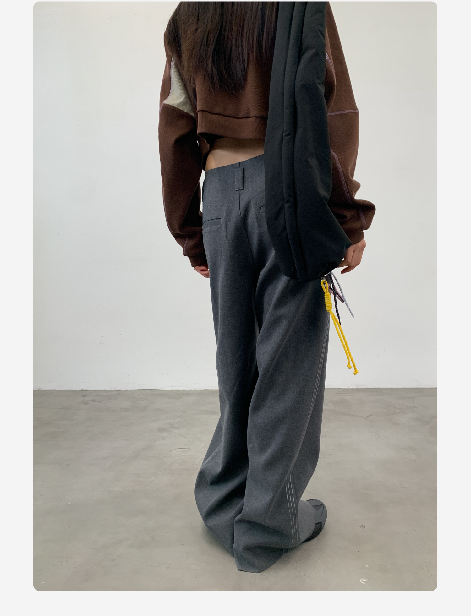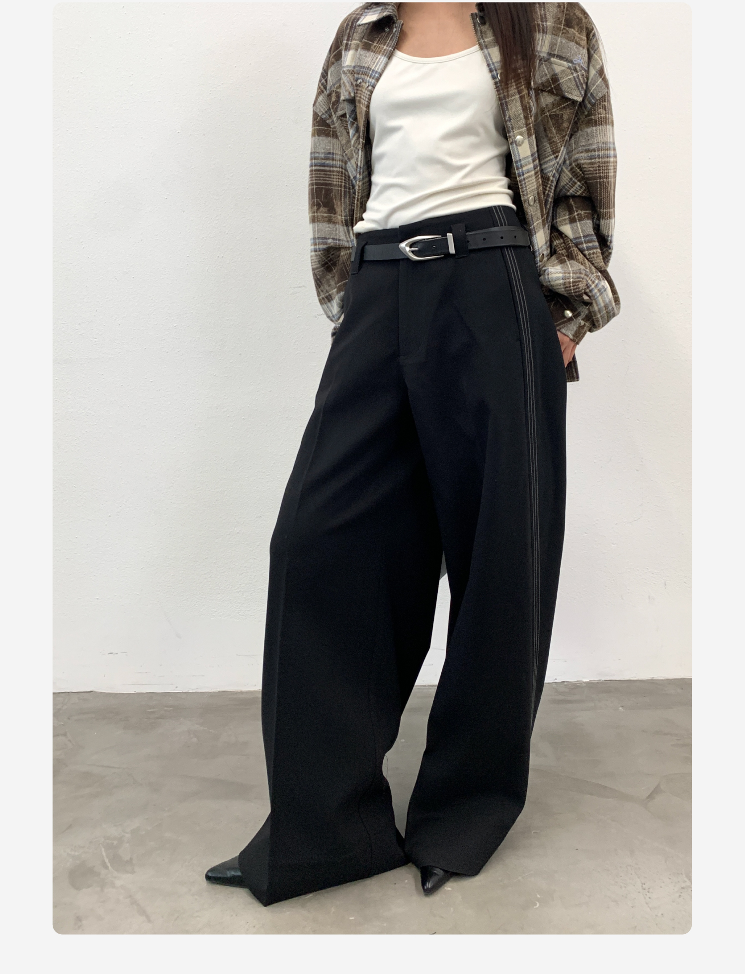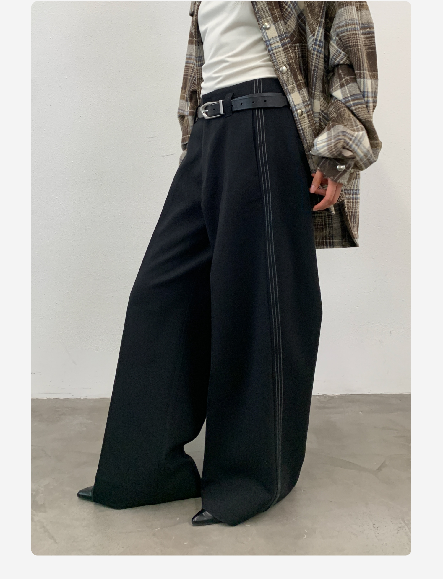 Roaringwild Roaring Beast Black Color-Block Loose Fit Women's Wide-Leg Pants That Make Legs Look Longer, Chinese Style Men's Dress Pants
