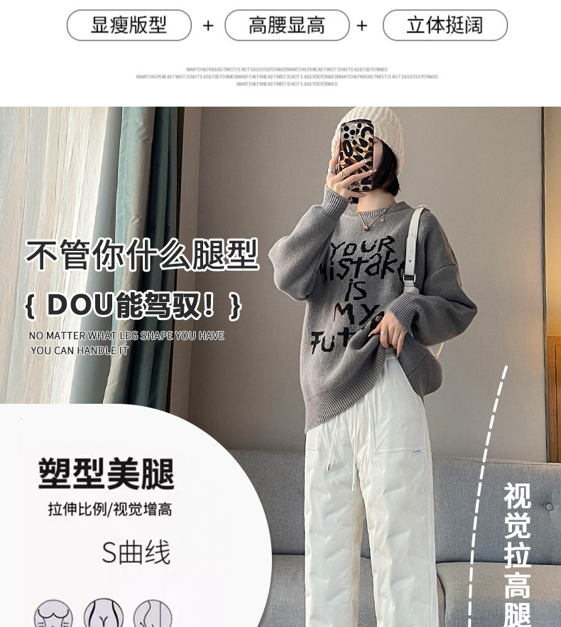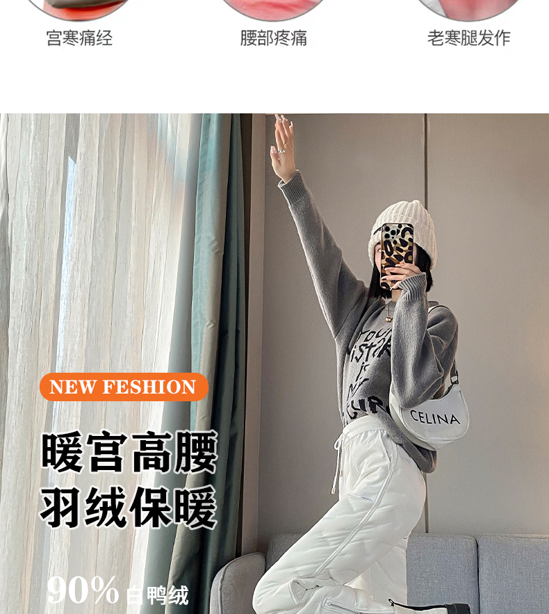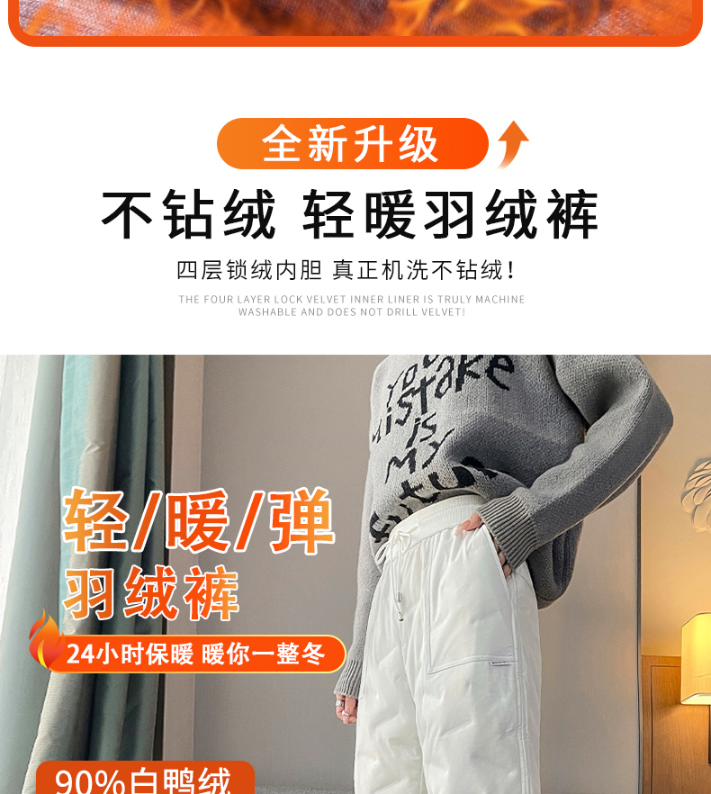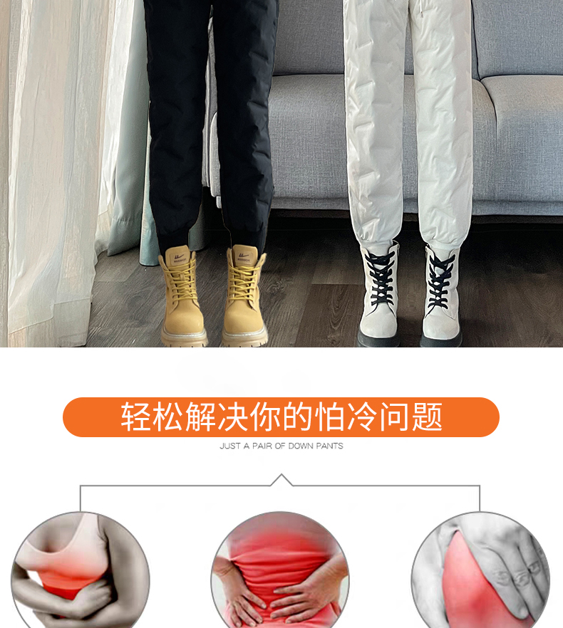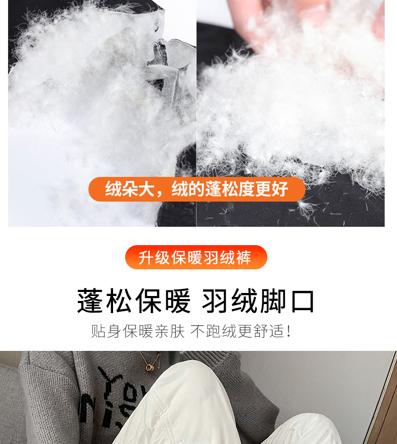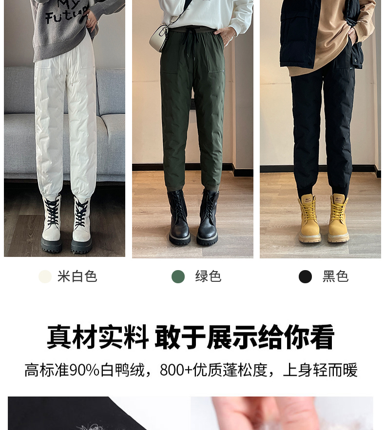 Off-White down Pants for Women, Suitable for Outdoor Wear, 2024 Winter New Model, 90% White Duck Down, Thickened for Extreme Cold Weather in Northeastern Regions down to -40 Degrees