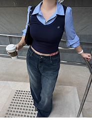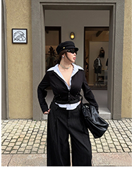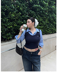 Boolibyoo American-Style Sweetie Is Coming Soon! Plus-Size Hot Girl Striped Shirt with Small Flutter Sleeves, Waist-Cinching and Slimming Top