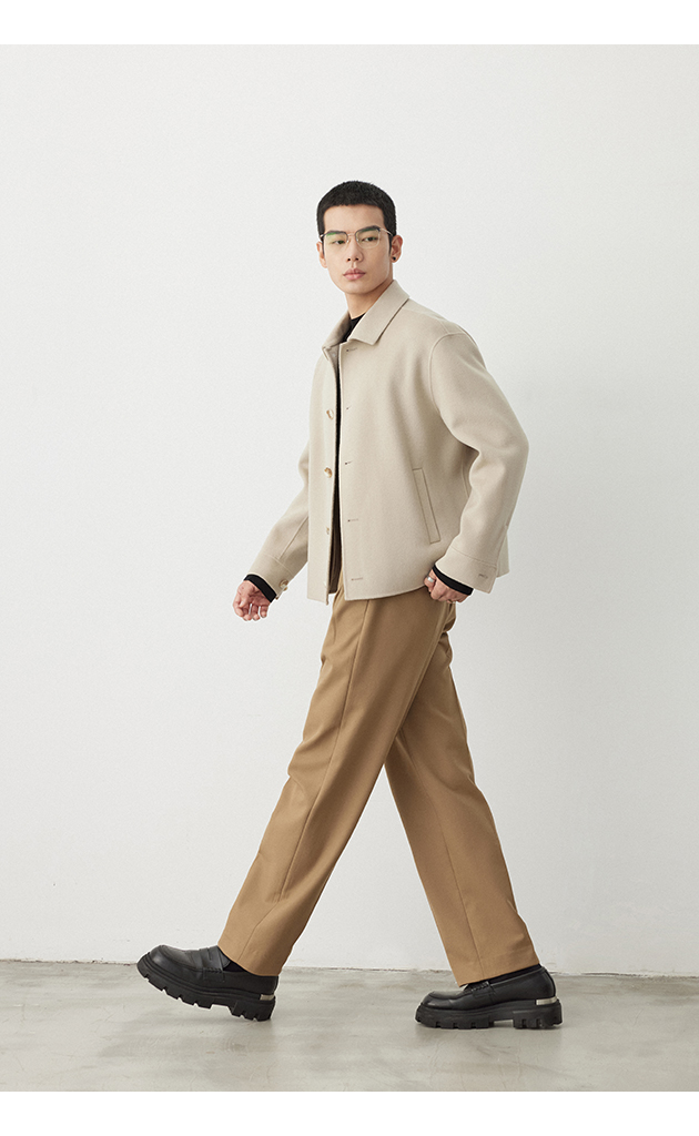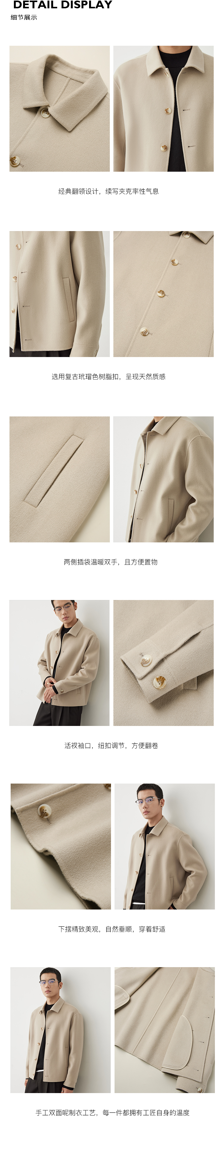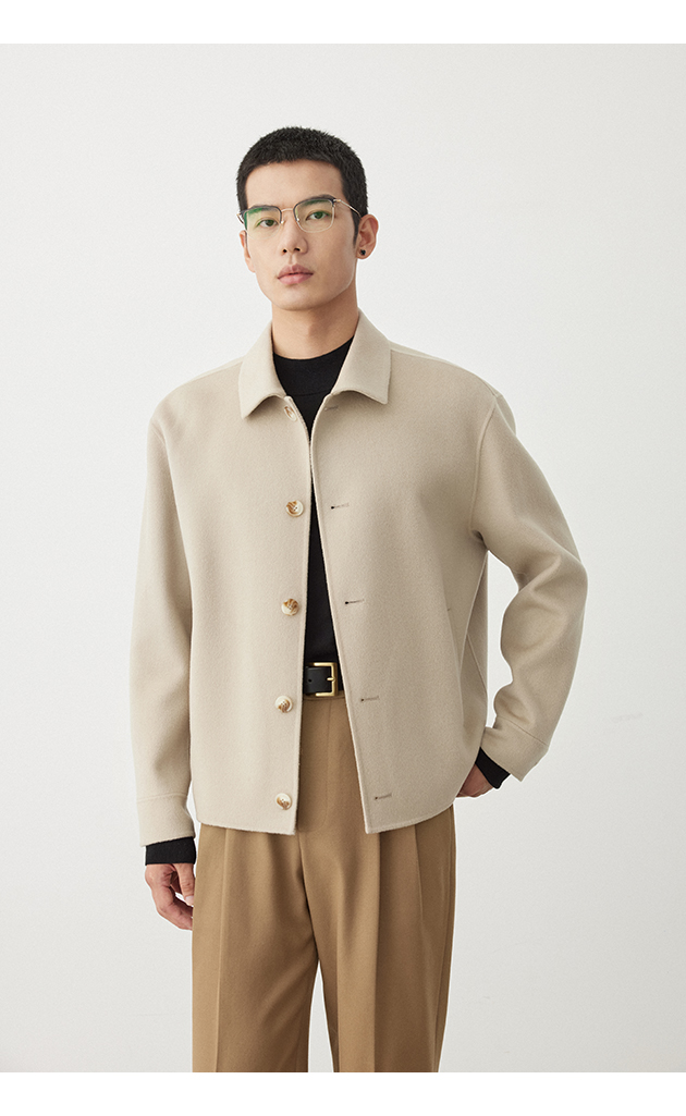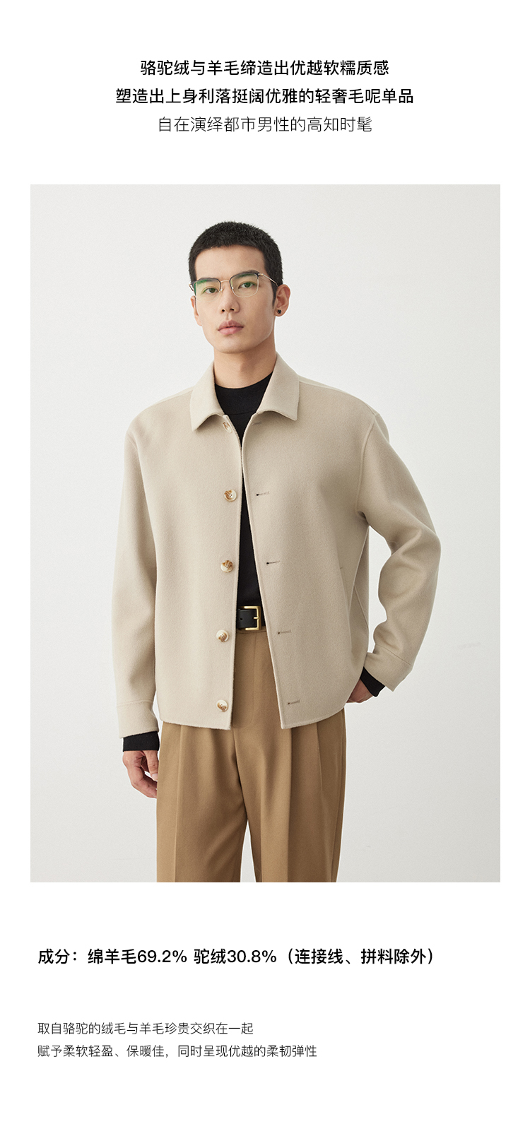 OSENS80 wool camel velvet fabric short Heavy weight handmade double-sided tweed jacket Outwear men's Fall and winter