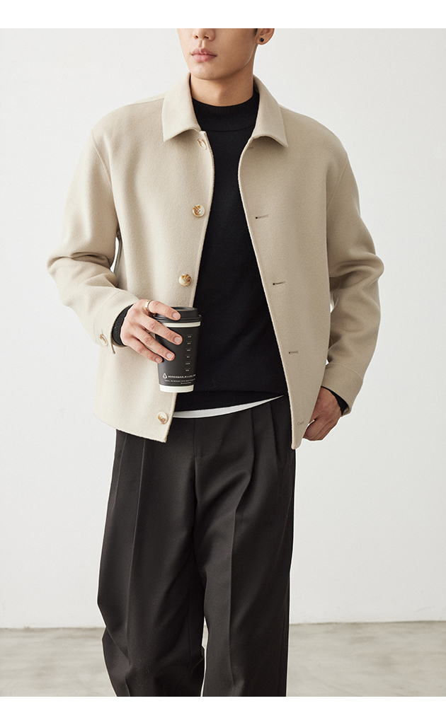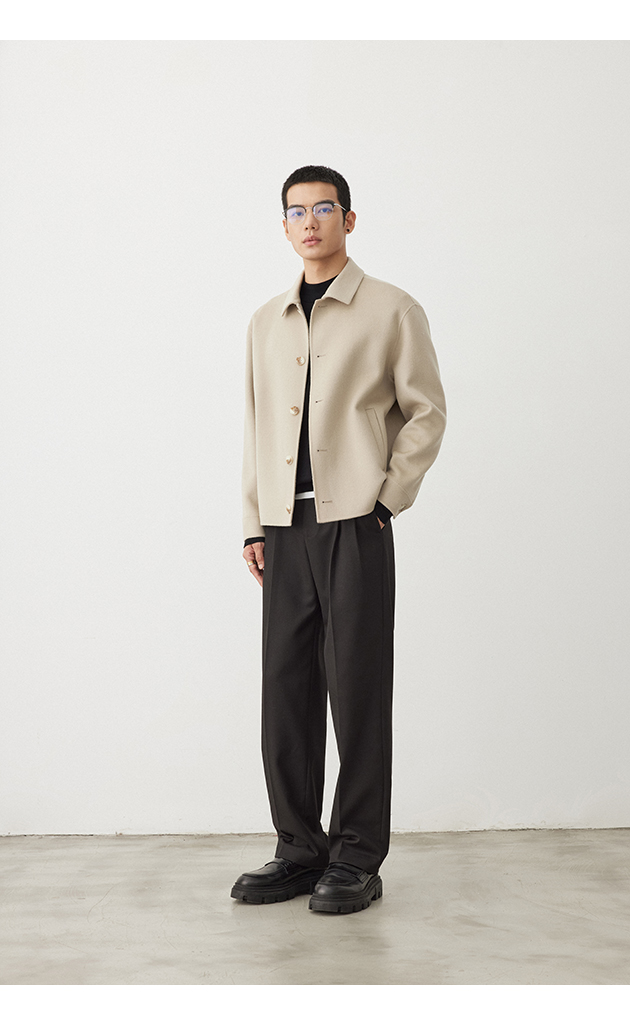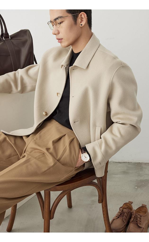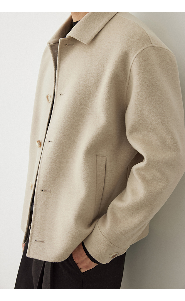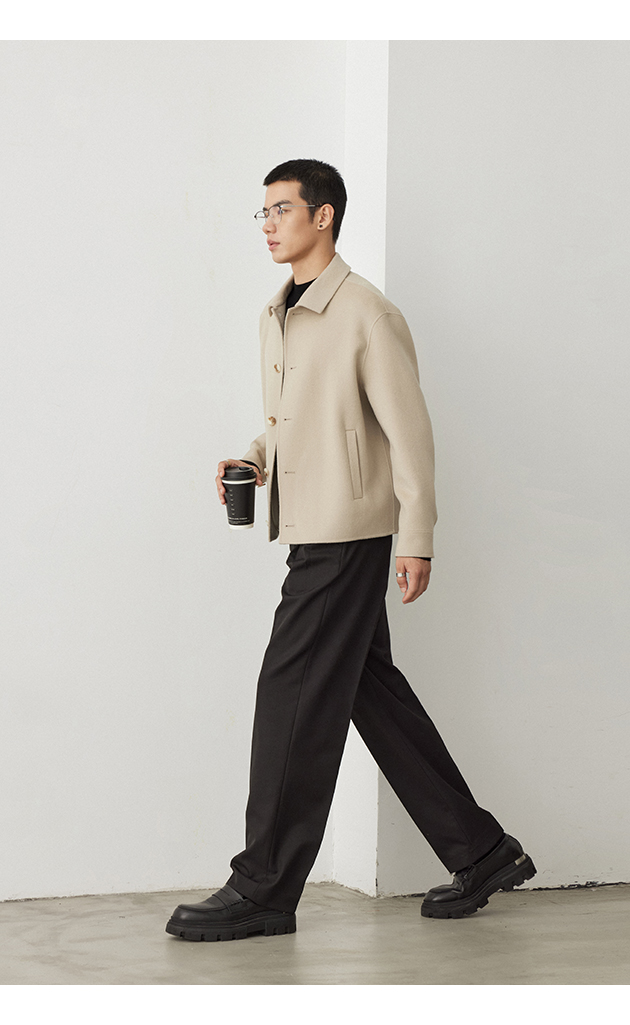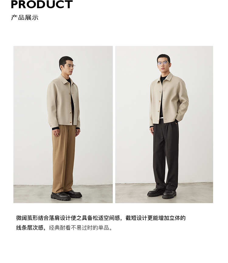 OSENS80 wool camel velvet fabric short Heavy weight handmade double-sided tweed jacket Outwear men's Fall and winter