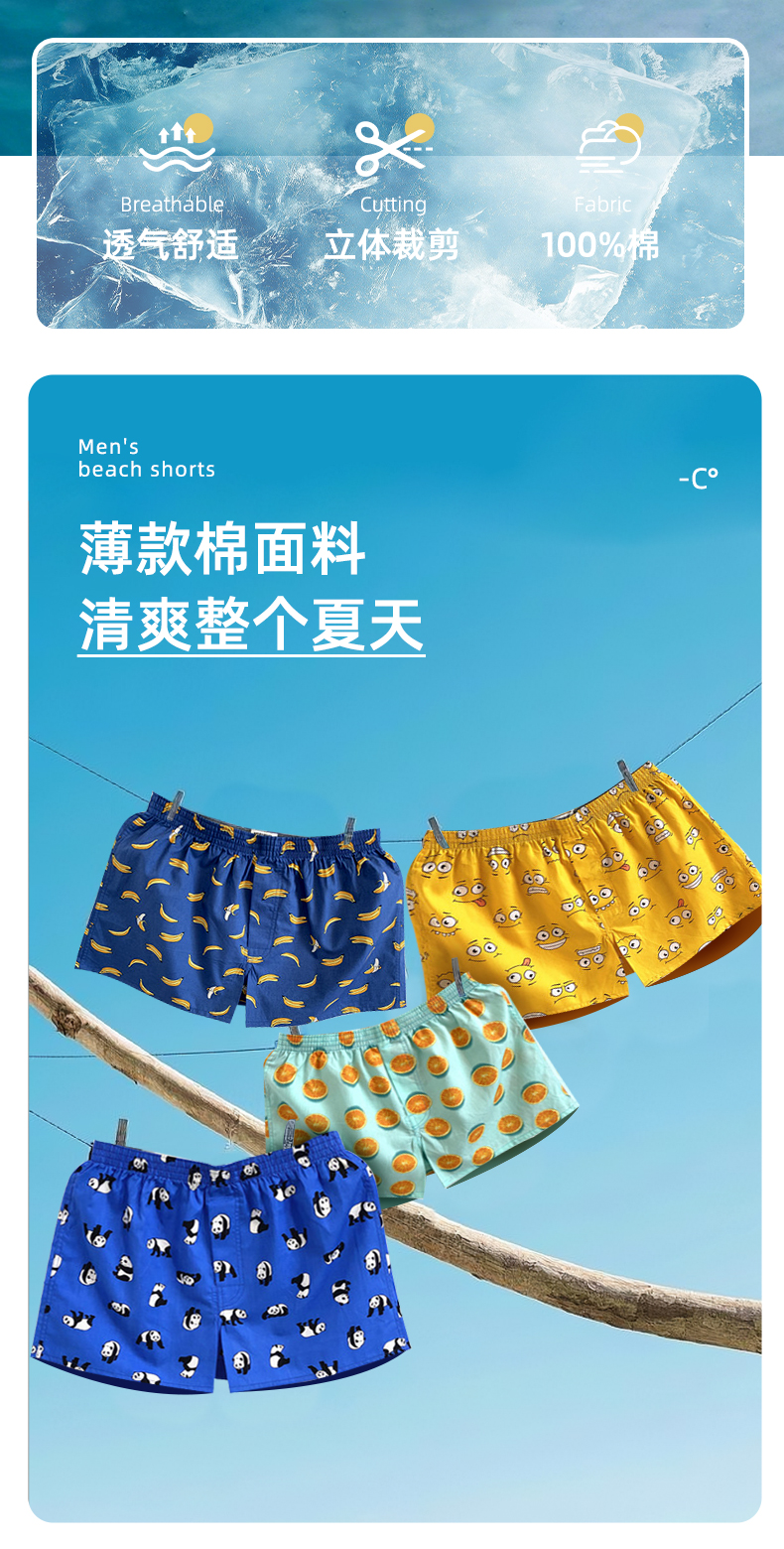 2025 New Pure Cotton Boxer Shorts for Men, Loose, Comfortable, Breathable, with Unique Cartoon Print, Home Wear, Sleep Shorts