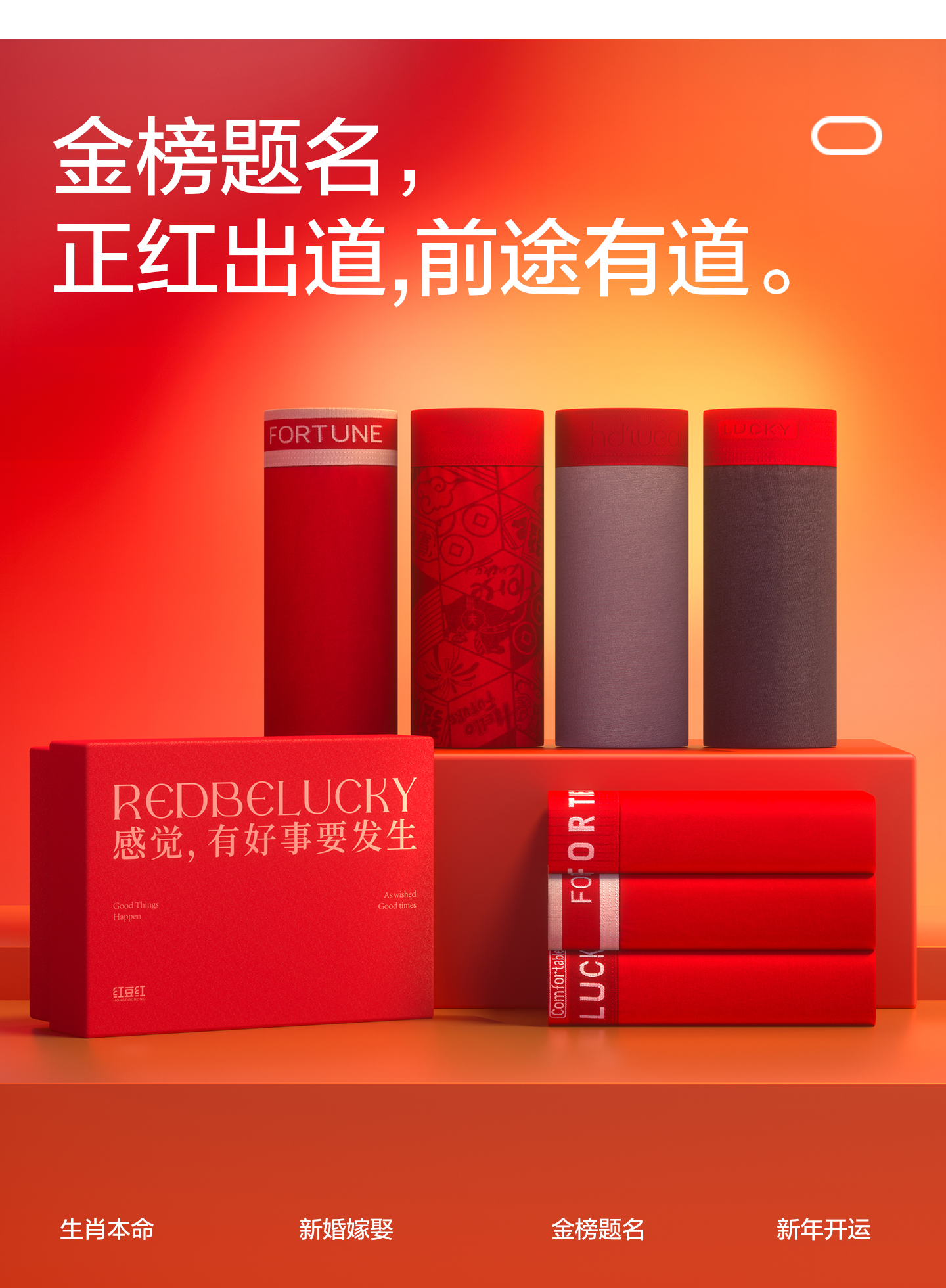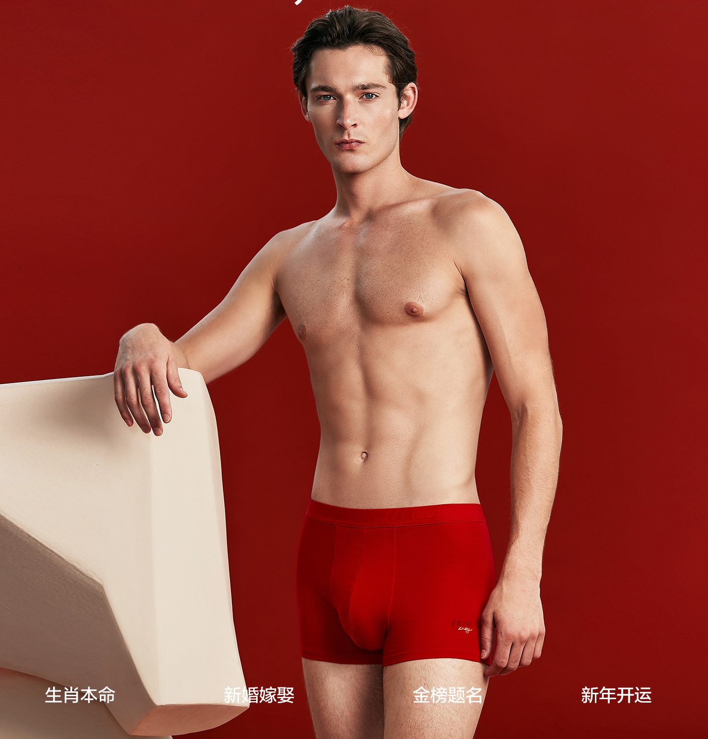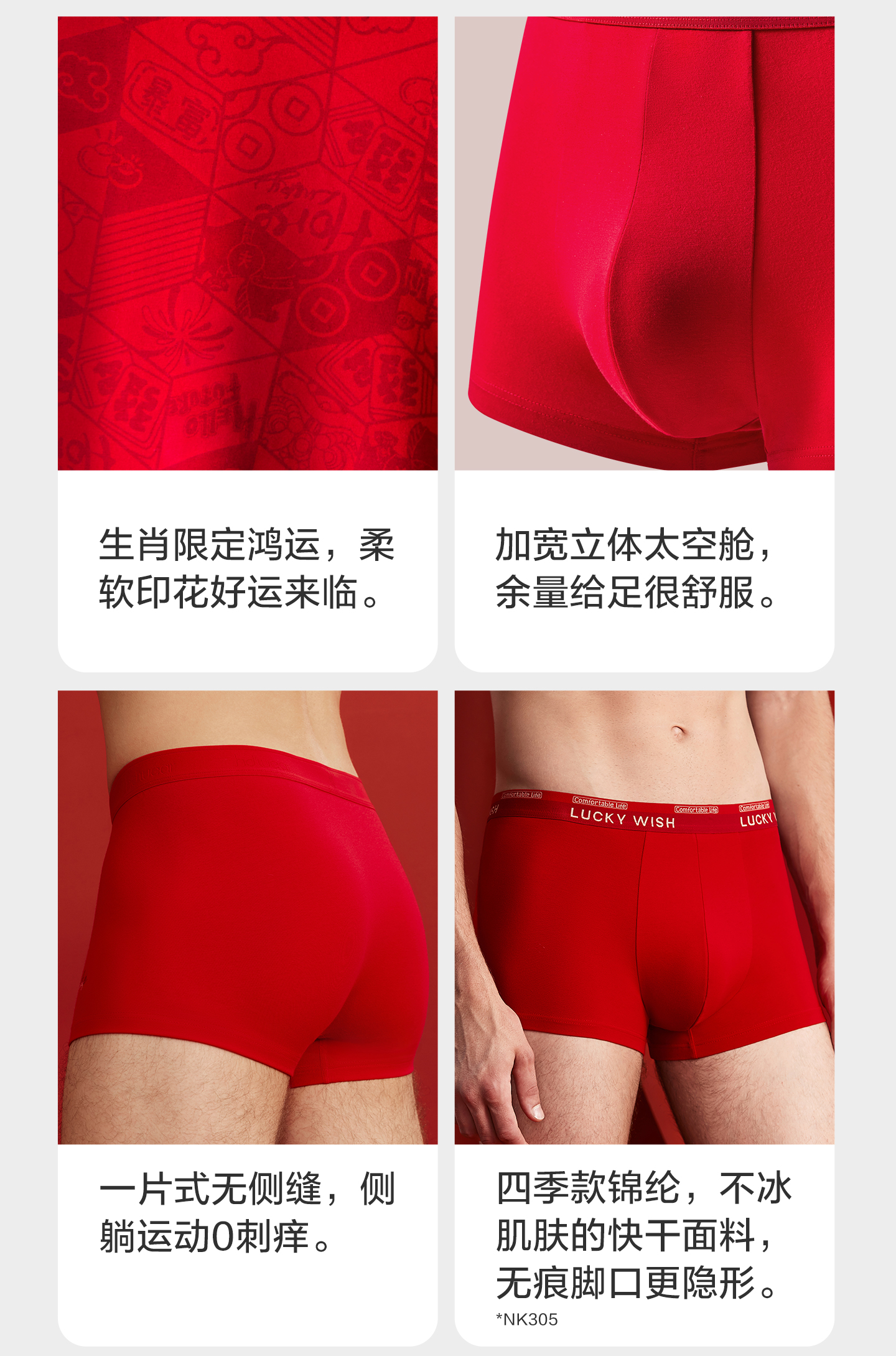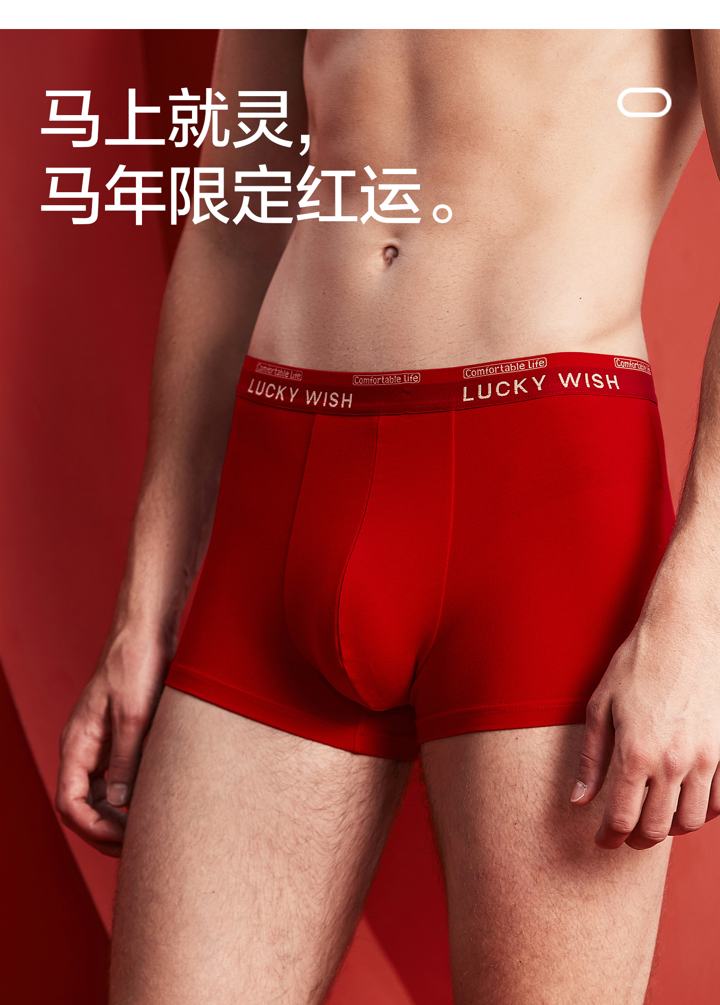 Red Men's Underwear Made of Pure Cotton with Antibacterial Crotch, Suitable as a Gift for the Year of the Snake or Horse, Wedding Gift, Socks, Boxer Shorts Gift Box