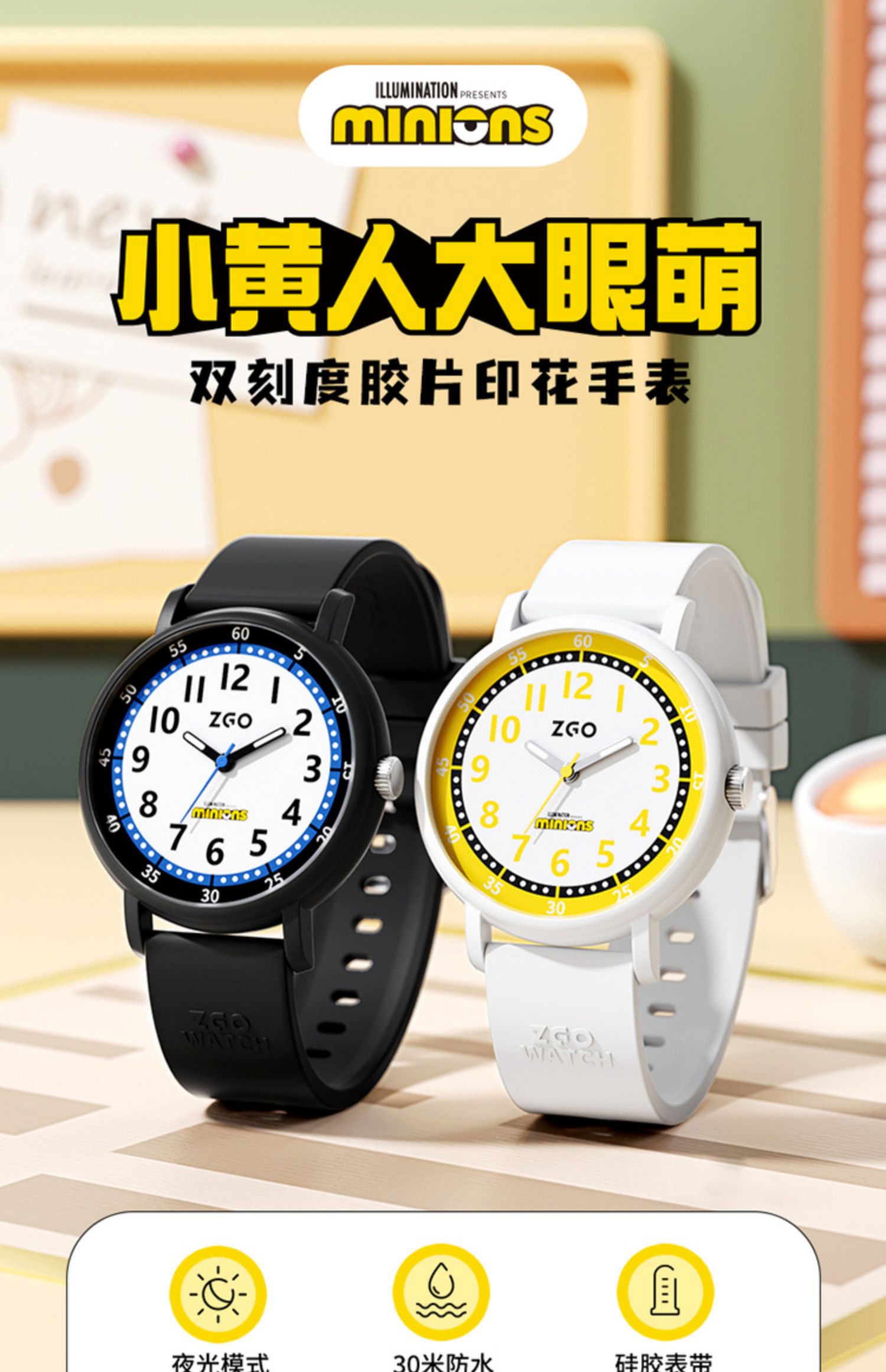 Universal Studios Official Minions Co-Branded Watch for Female Students, Male Middle School and High School Students, Boys and Girls, Exam-Specific Watch