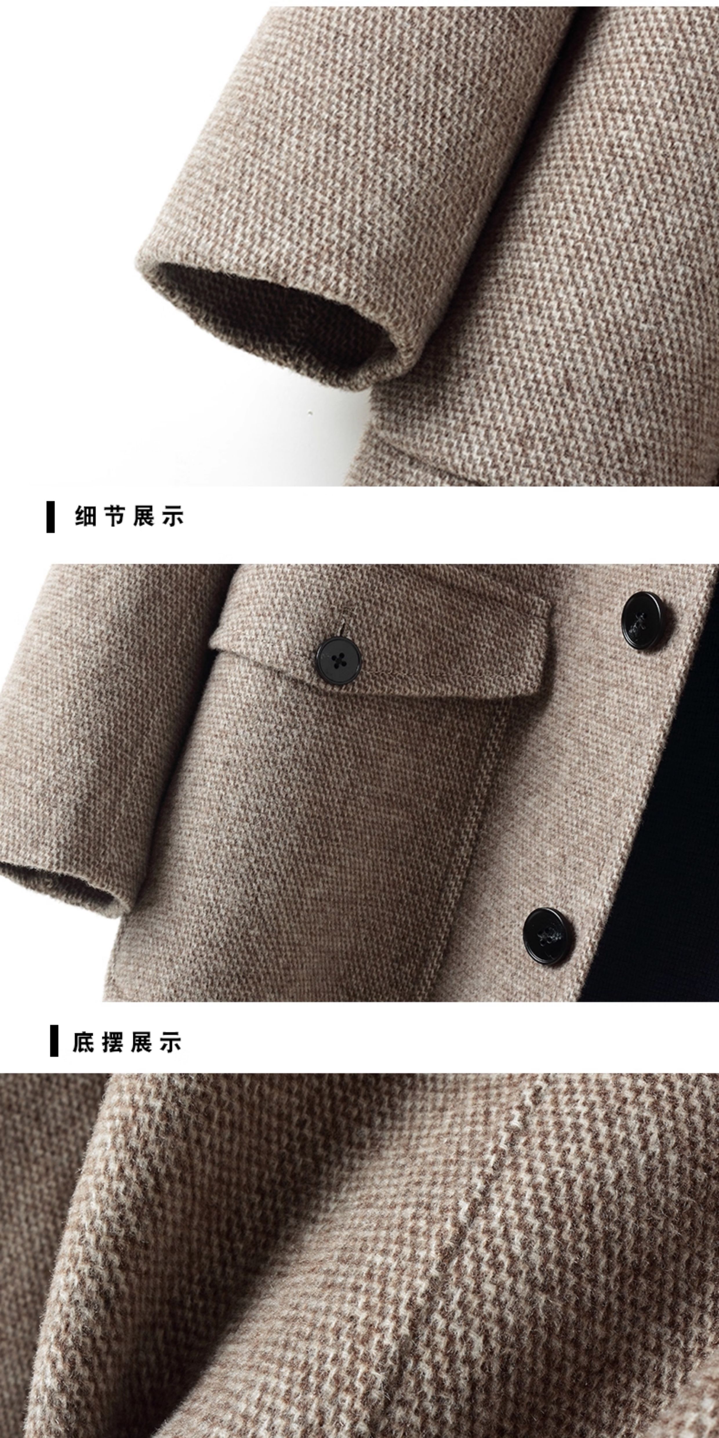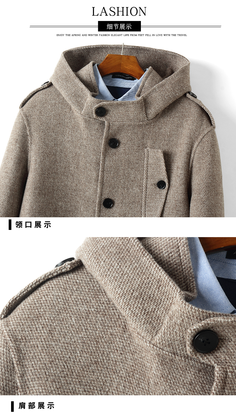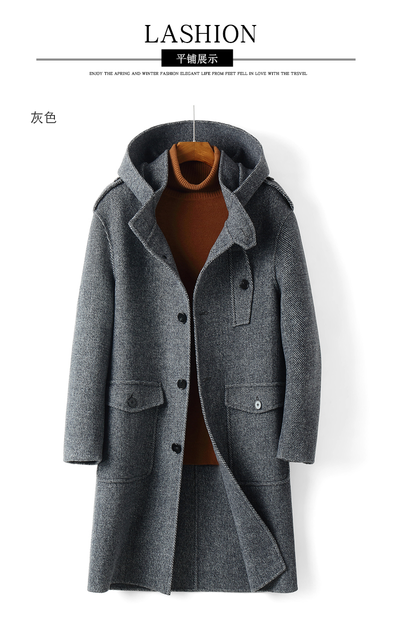 25 New Winter Products: Hooded Double-Sided Wool Coat for Men, Thickened Mid-Length Woolen Coat Without Cashmere, Trench Coat