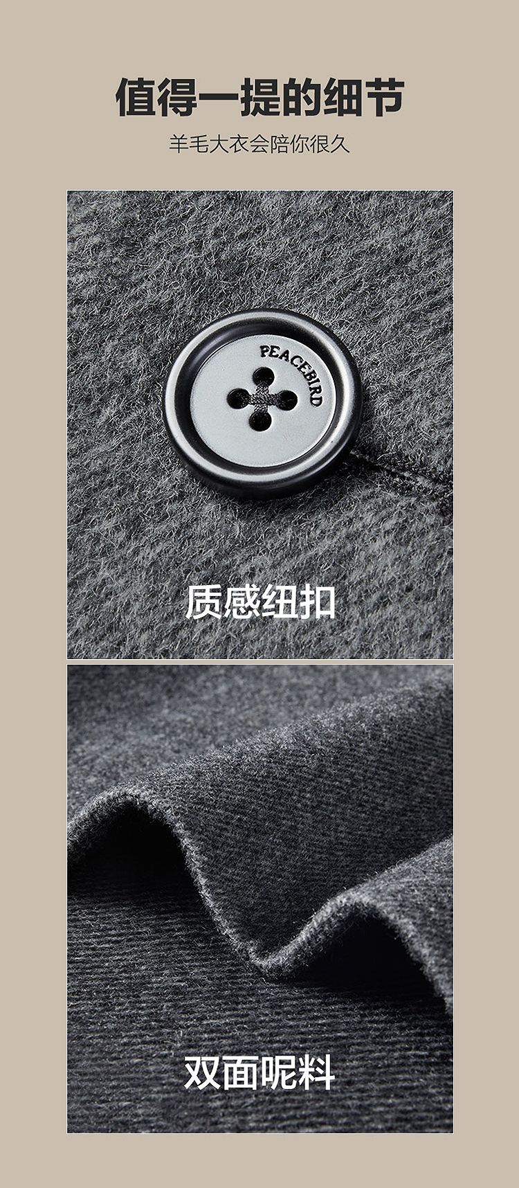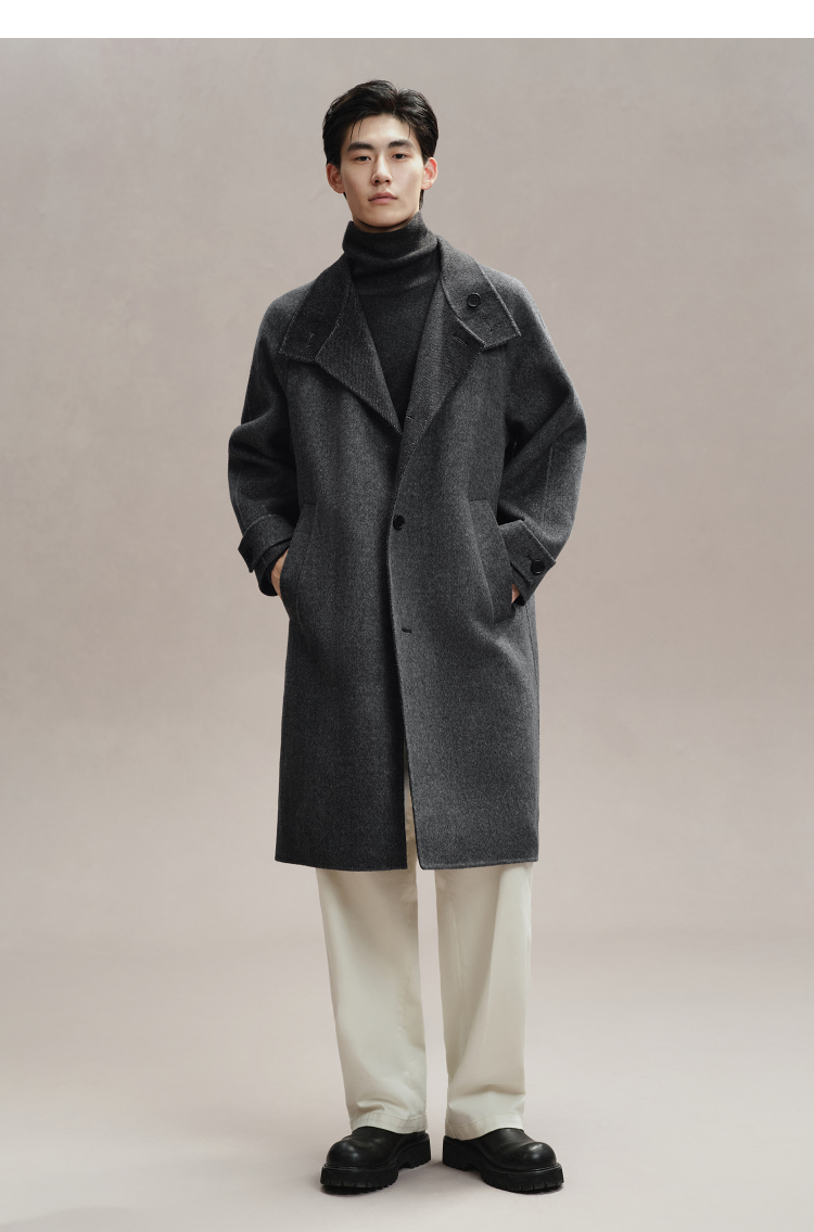 Peacebird Men's Casual Woolen Coat Loose, Stylish and Comfortable Wool Blend Men's Coat