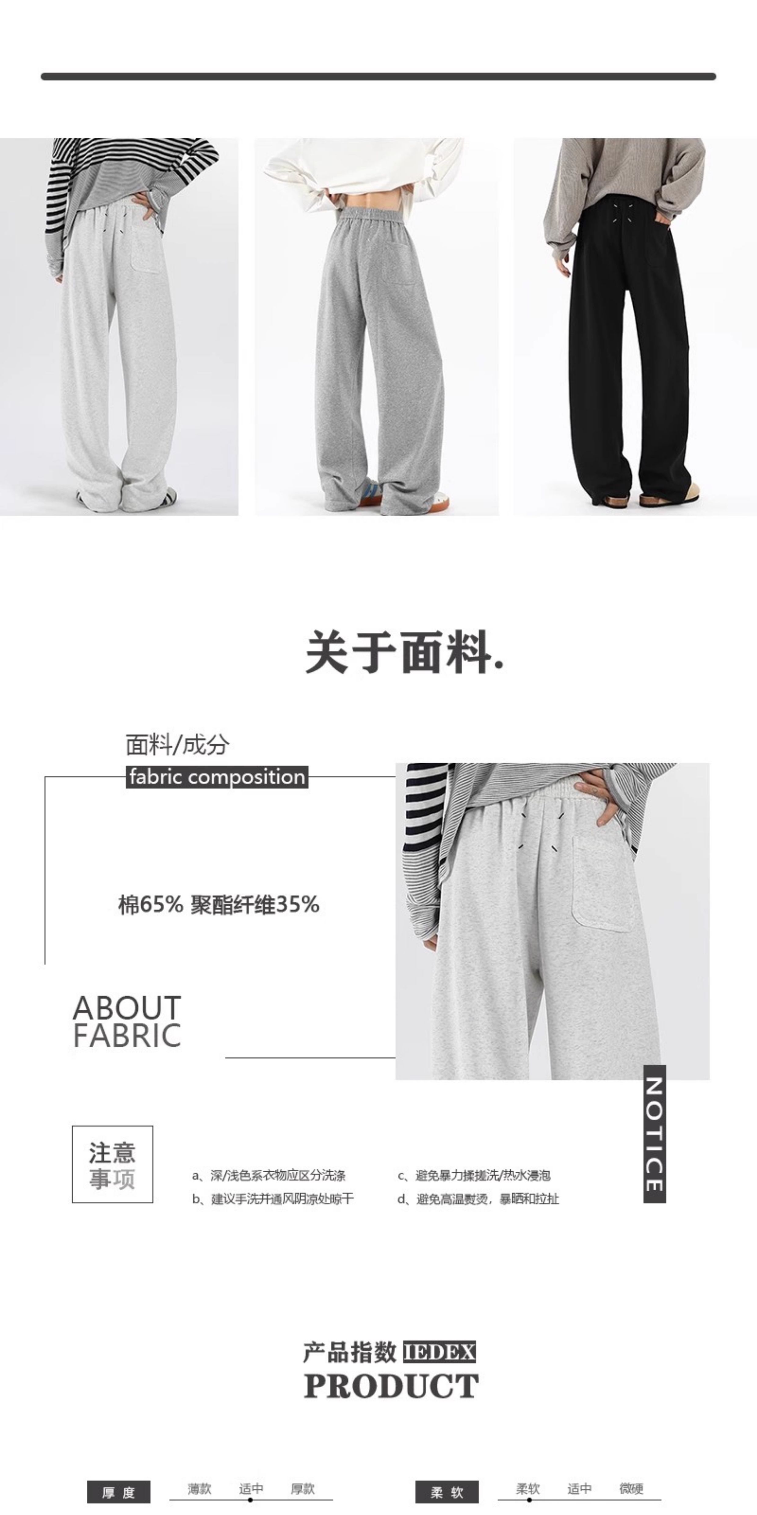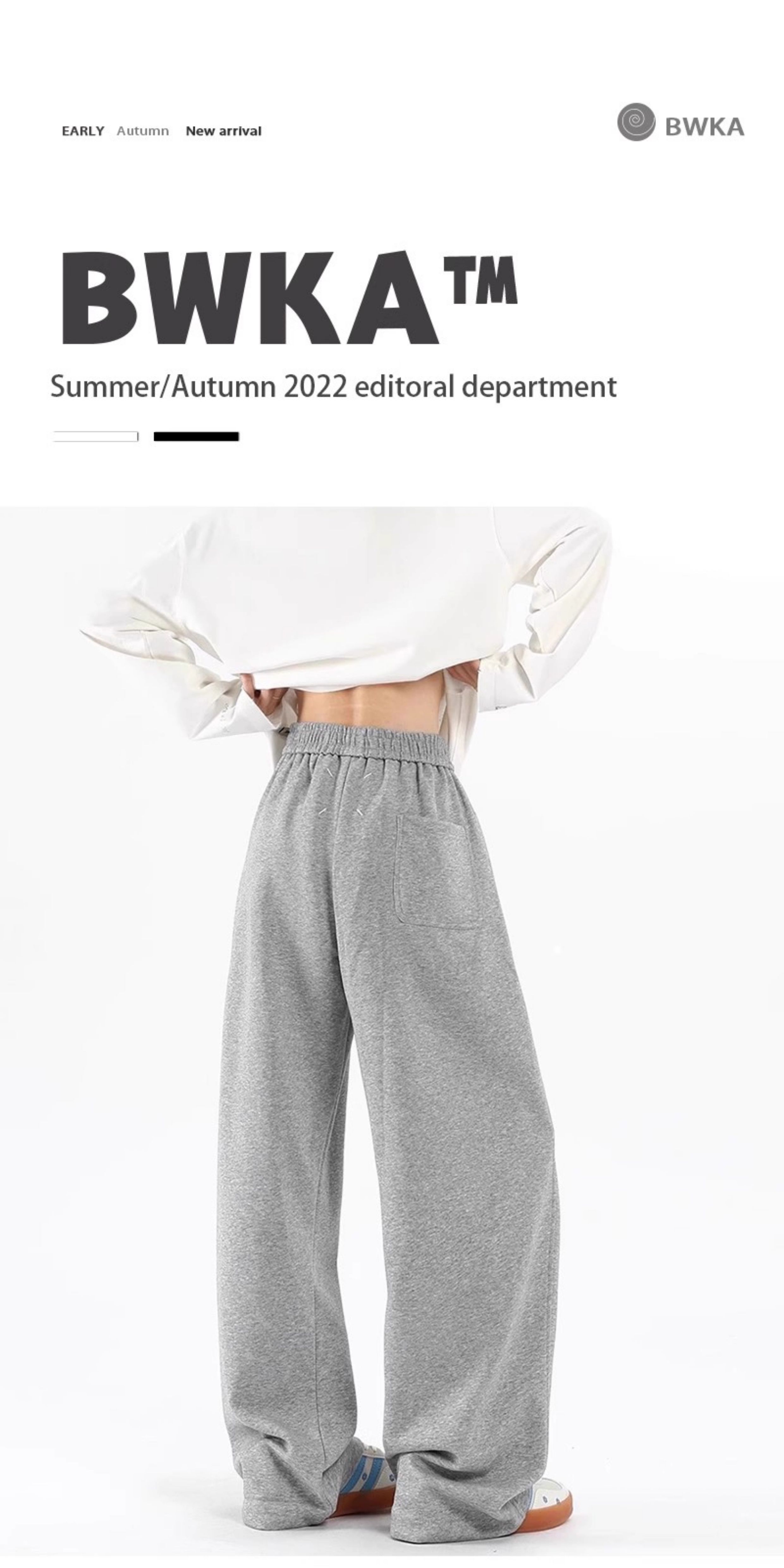 Bwka Heavyweight Gray Fleece-Lined Sweatpants for Women and Men, Autumn and Winter Loose Wide-Leg Scimitar Pants with Drape, Casual Sports Long Pants