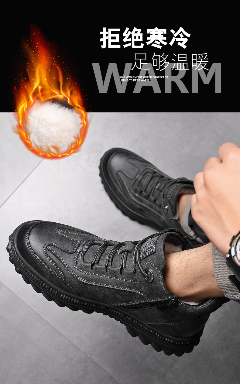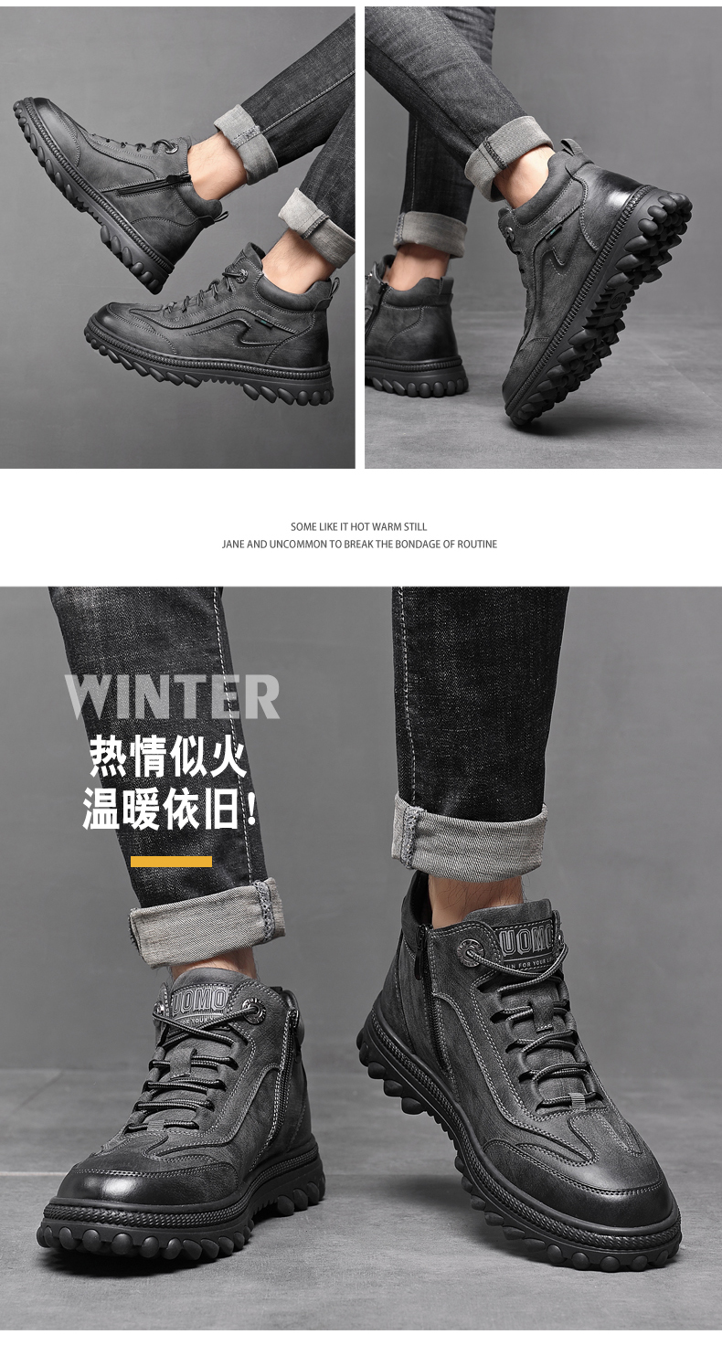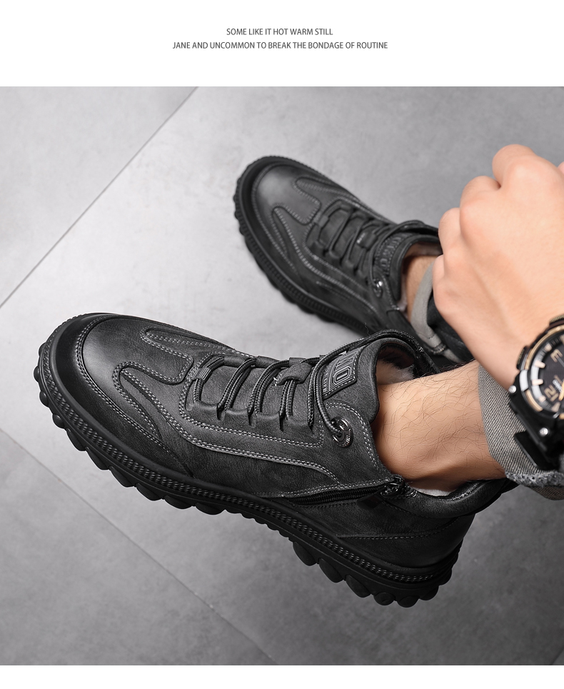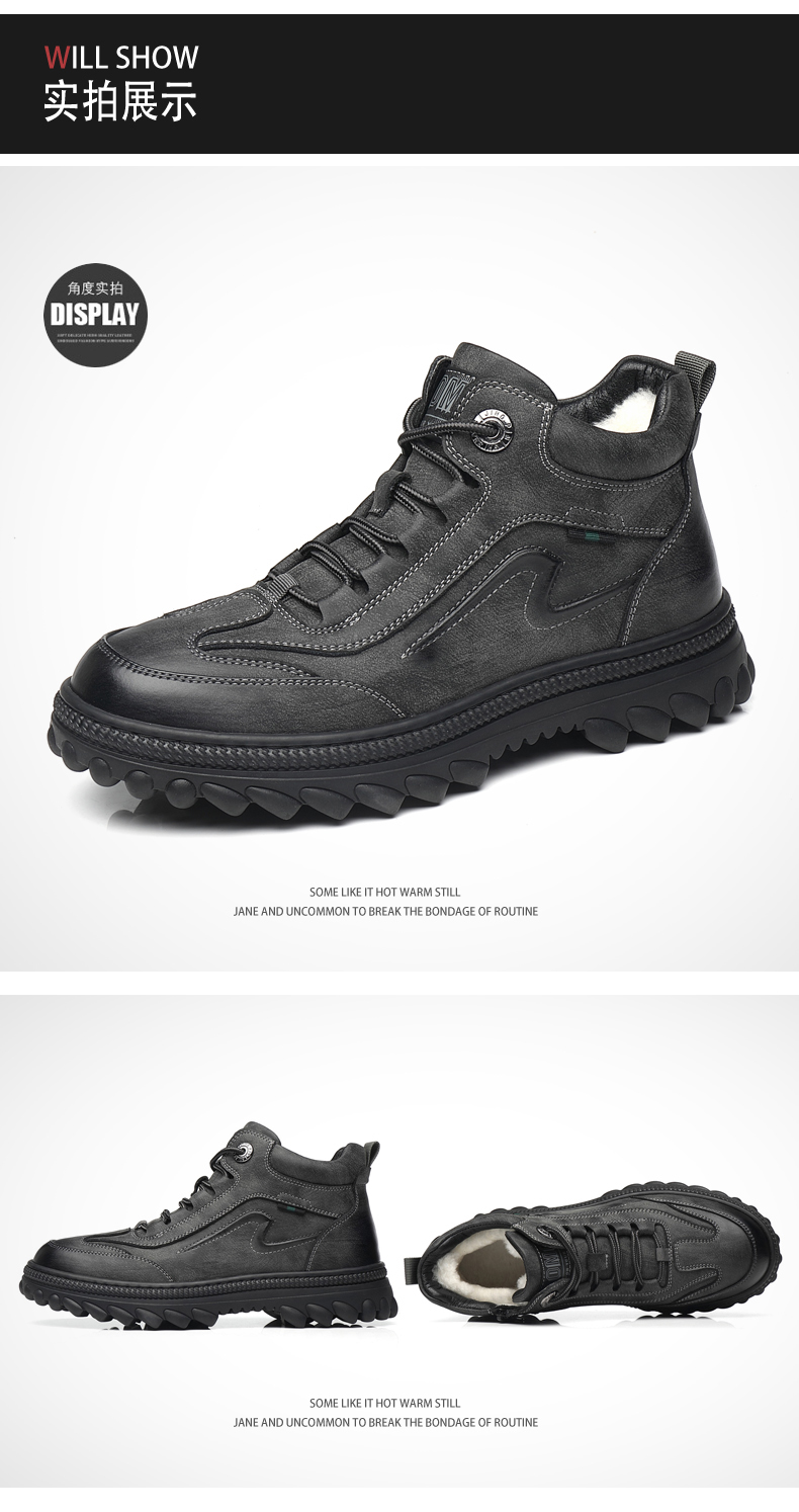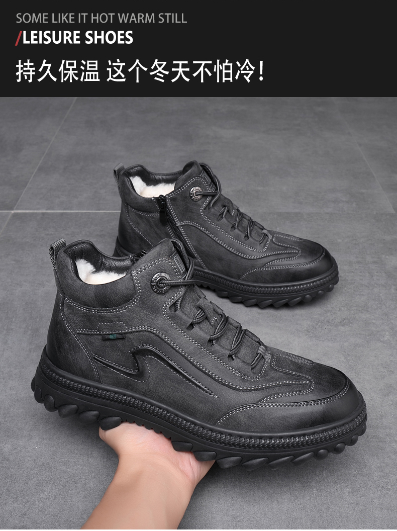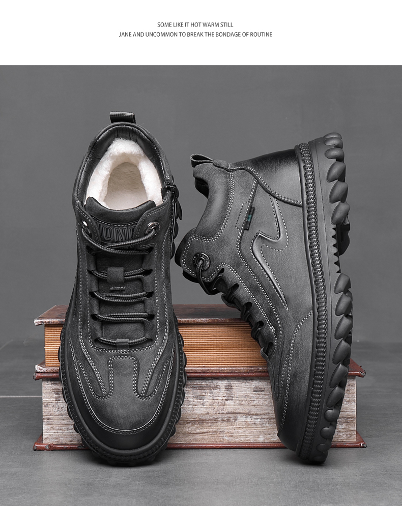 Men's Cotton Shoes, Genuine Leather, Wool, Fleece-Lined, Thickened, High-Top Casual Cotton Leather Shoes, Non-Slip, Warm Men's Shoes, Winter Snow Boots