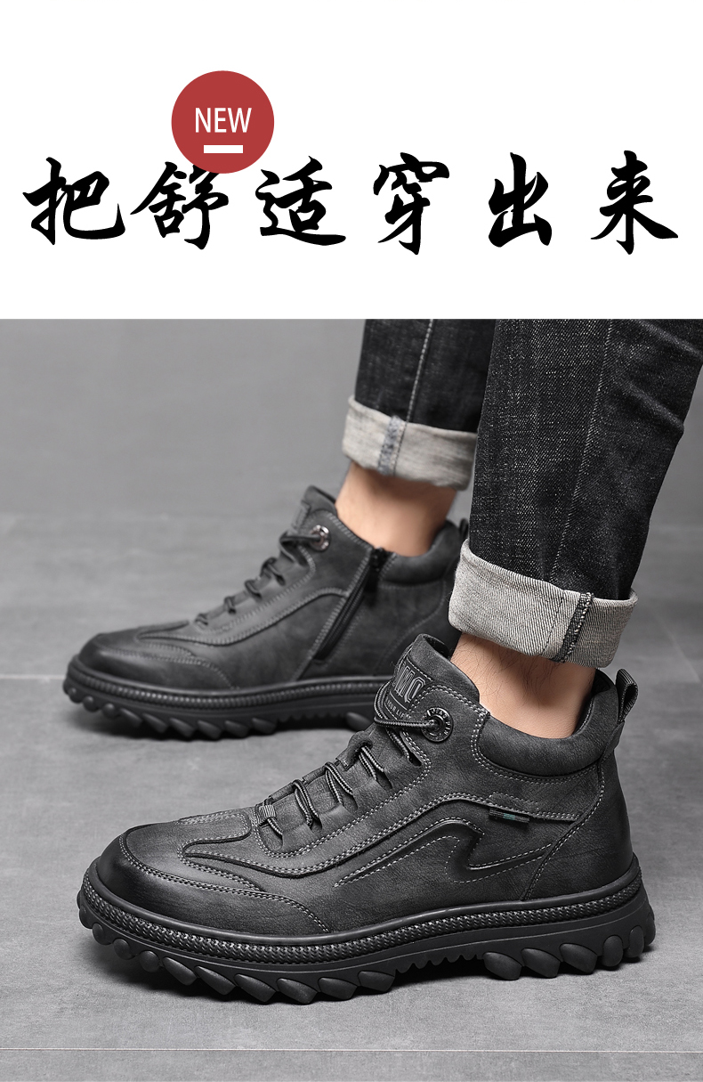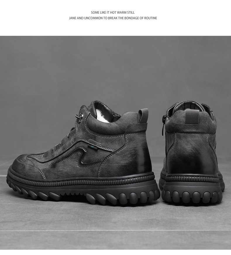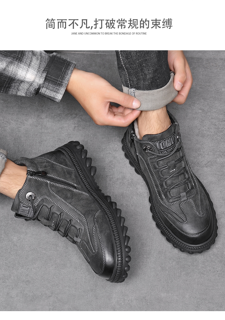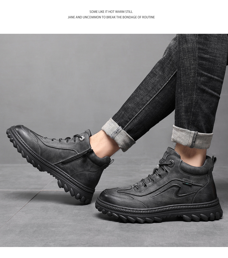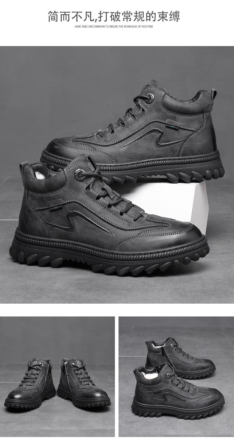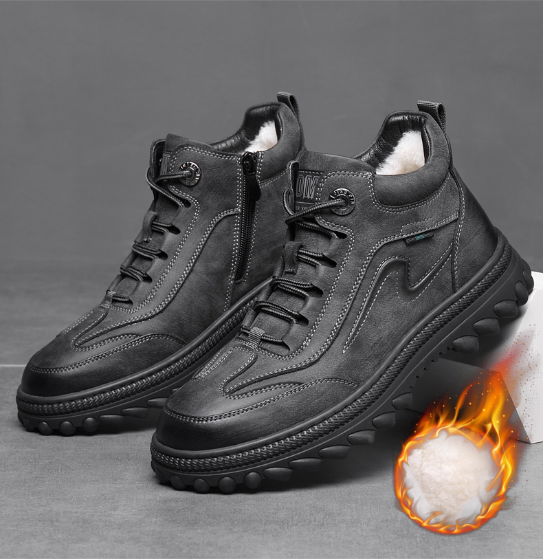 Men's Cotton Shoes, Genuine Leather, Wool, Fleece-Lined, Thickened, High-Top Casual Cotton Leather Shoes, Non-Slip, Warm Men's Shoes, Winter Snow Boots