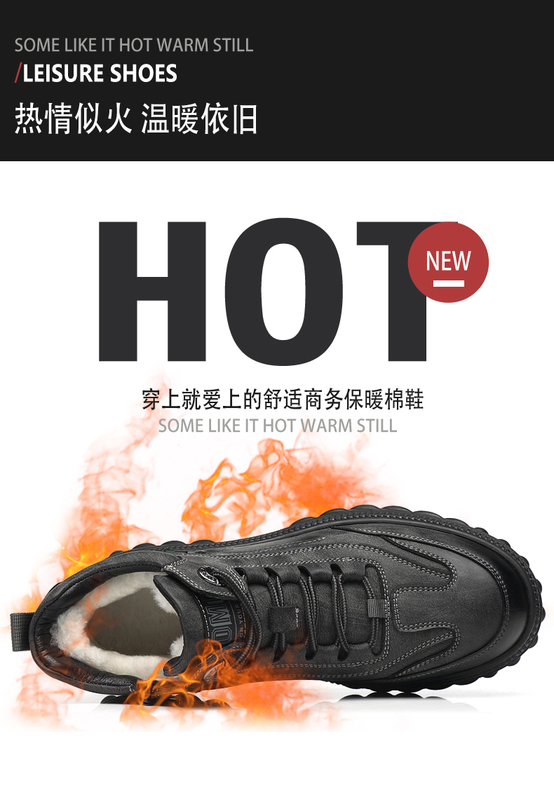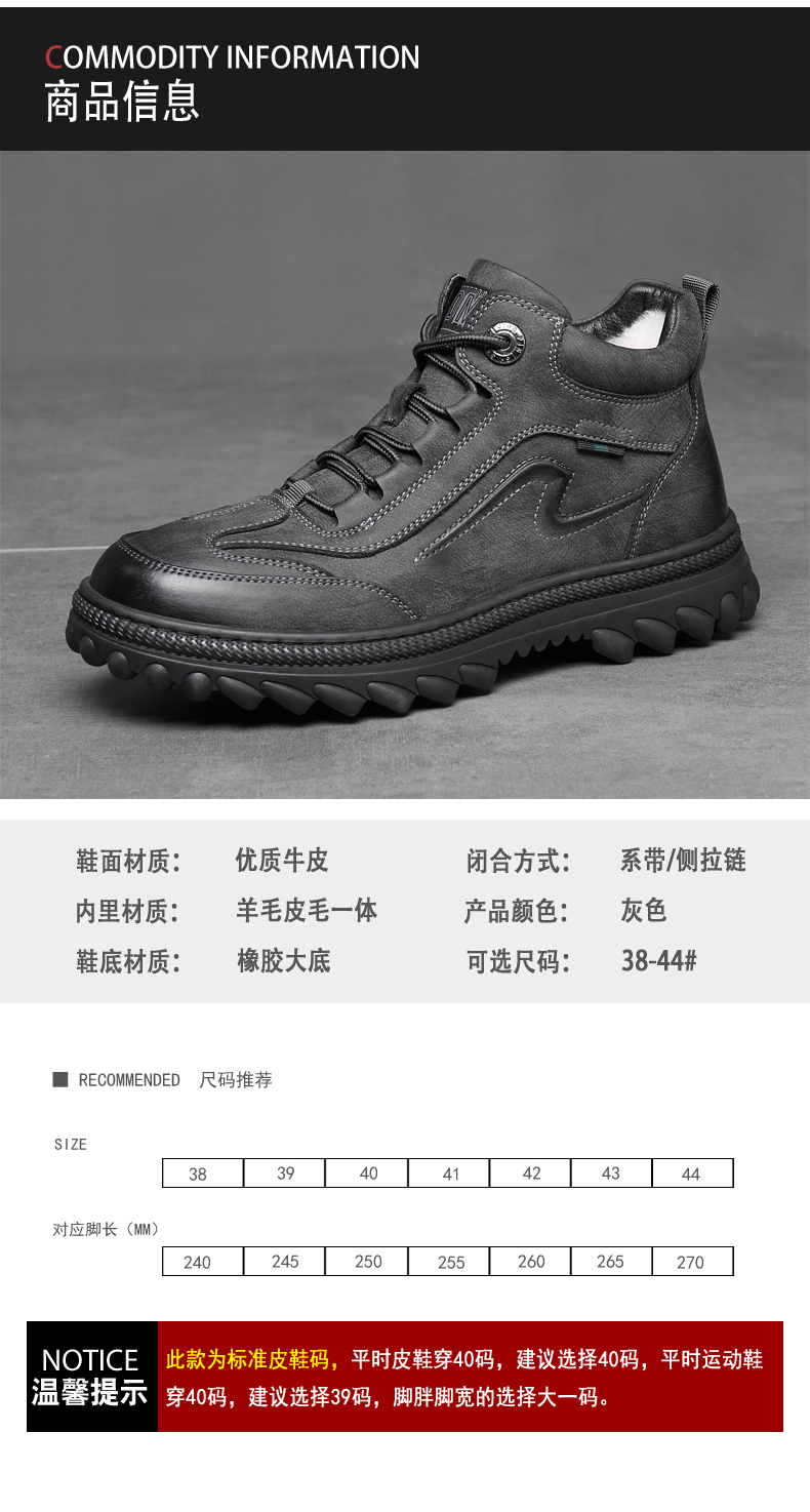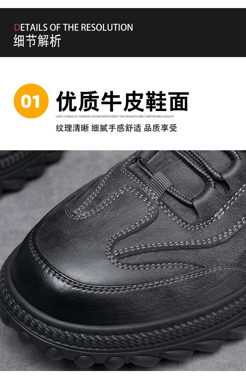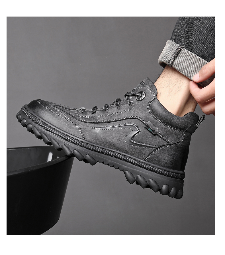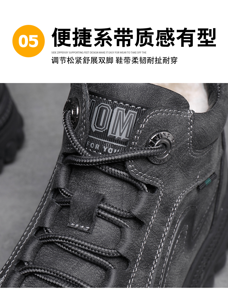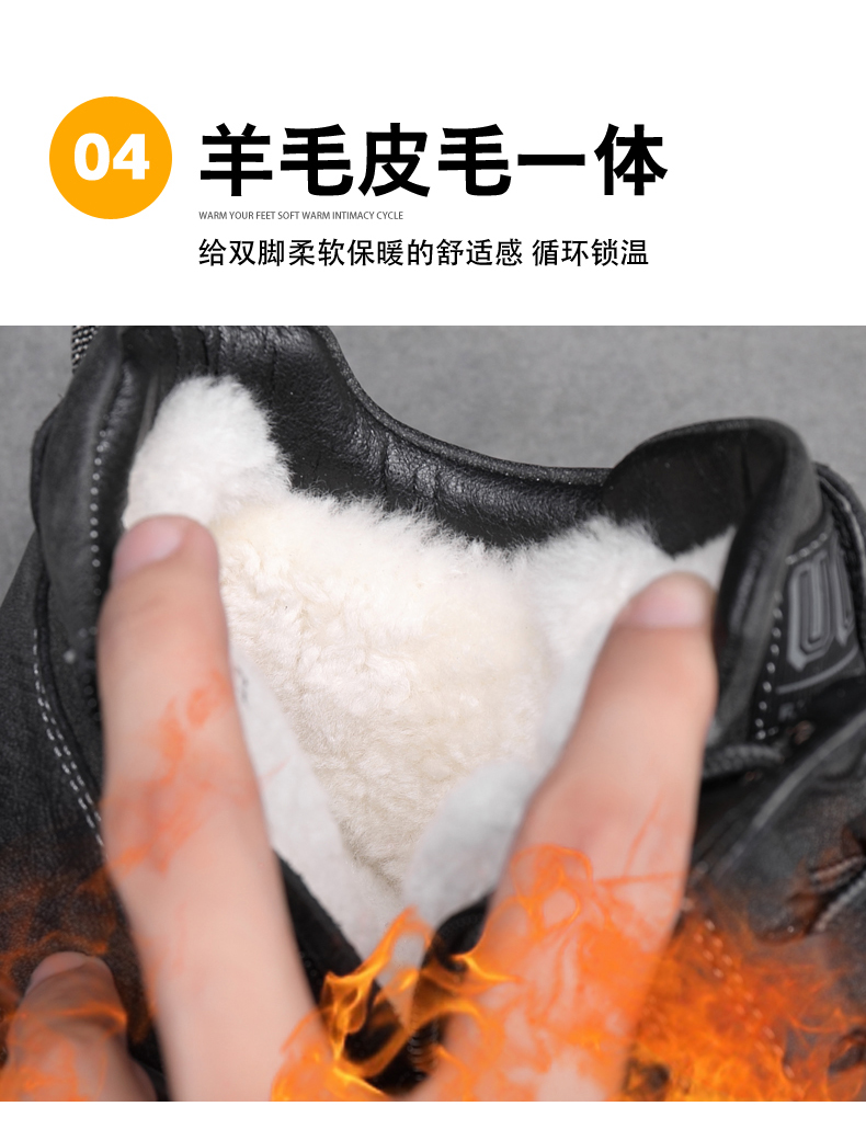 Men's Cotton Shoes, Genuine Leather, Wool, Fleece-Lined, Thickened, High-Top Casual Cotton Leather Shoes, Non-Slip, Warm Men's Shoes, Winter Snow Boots