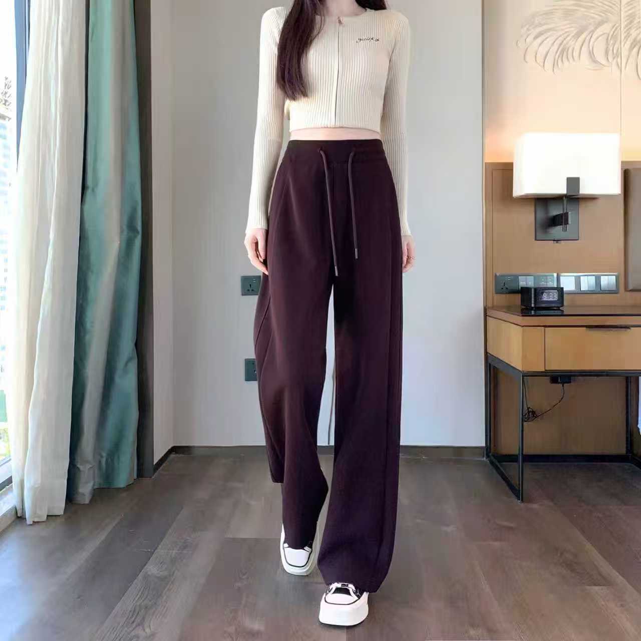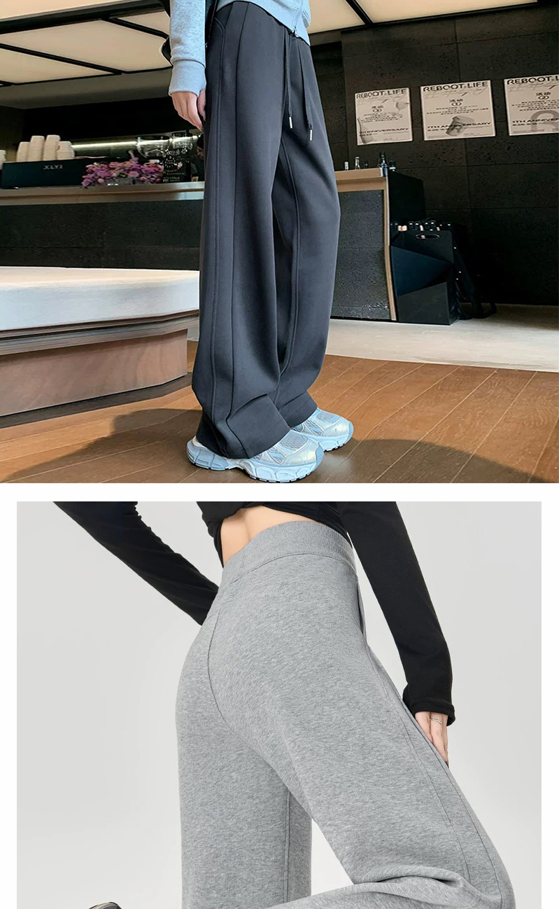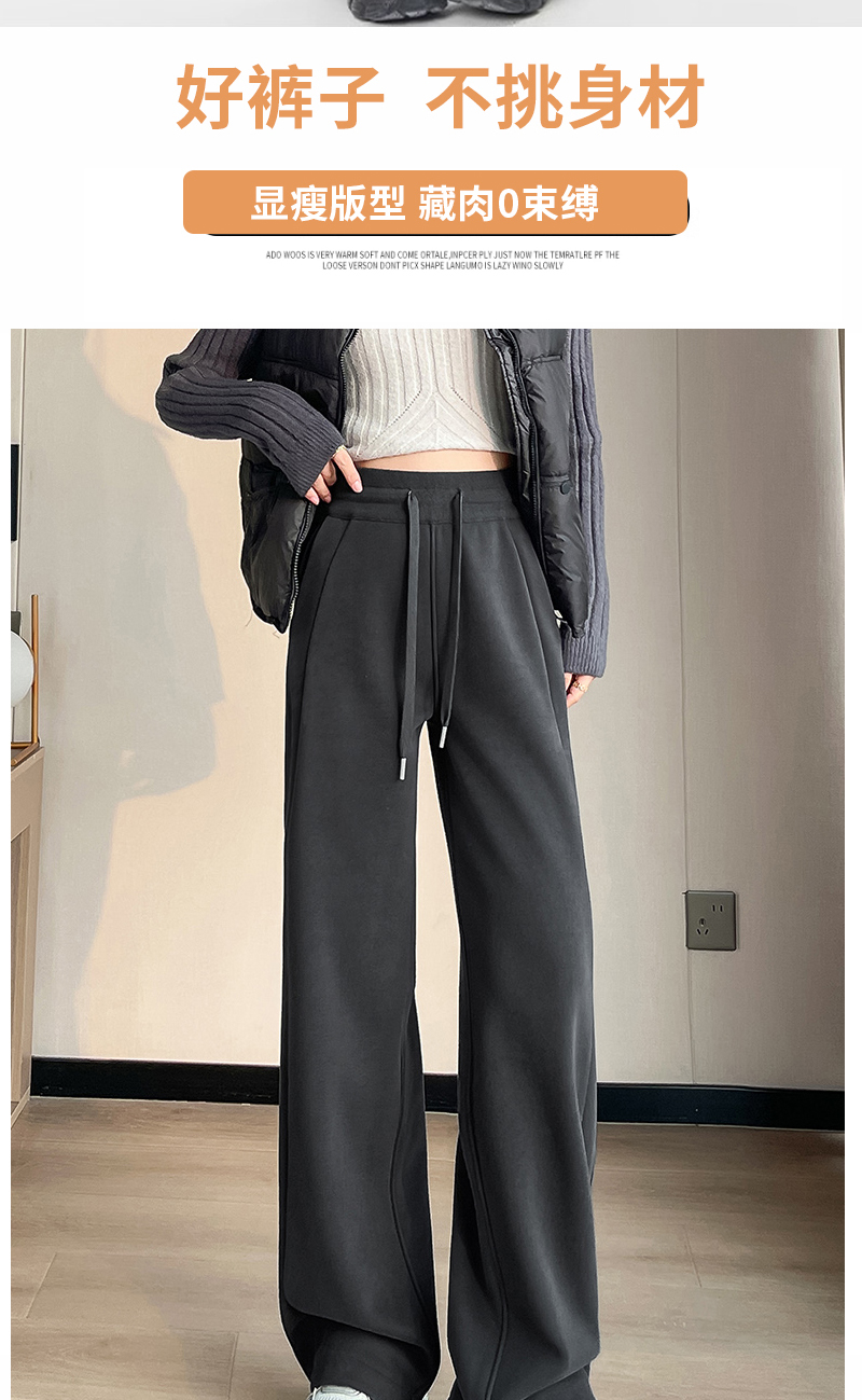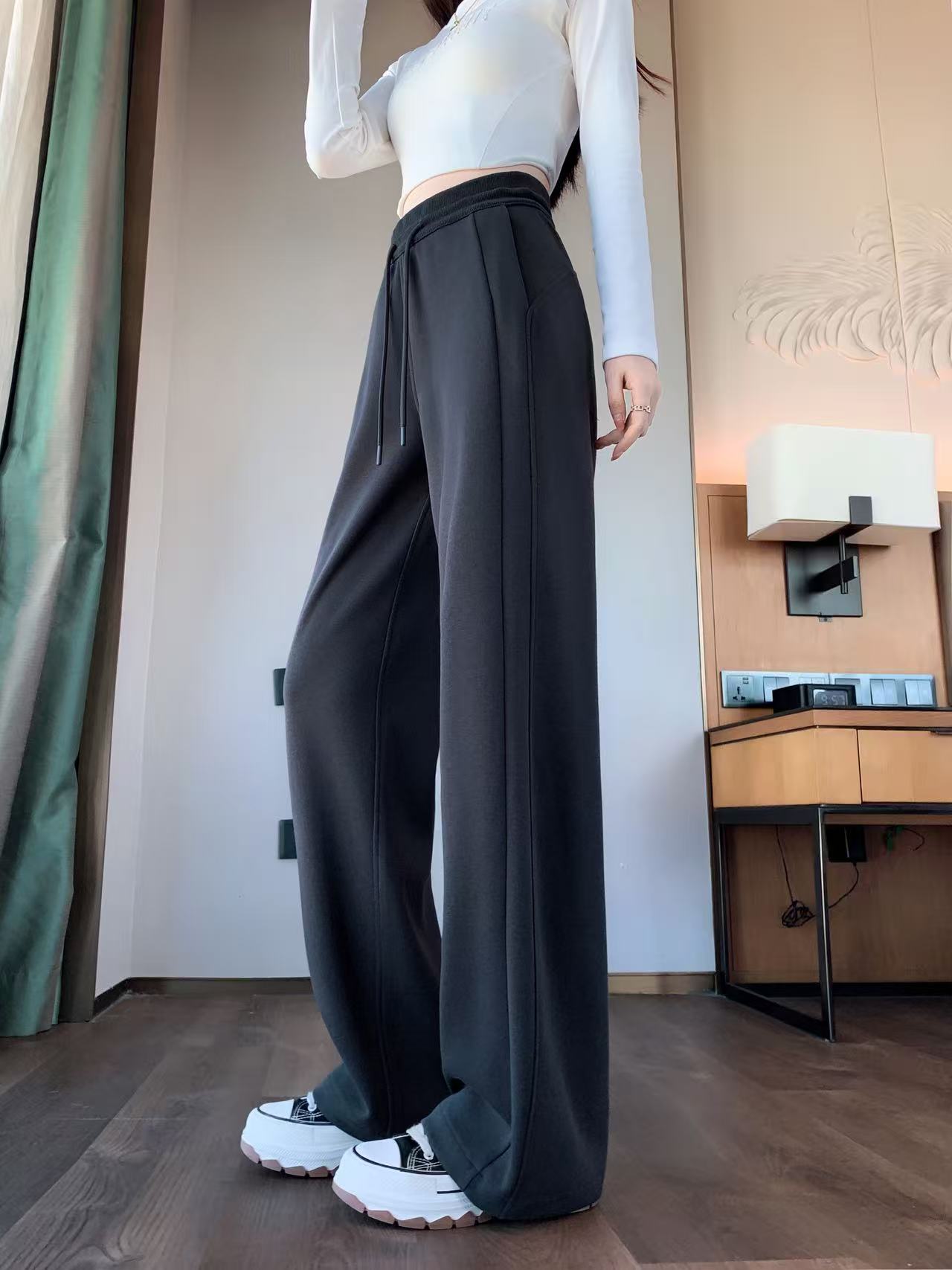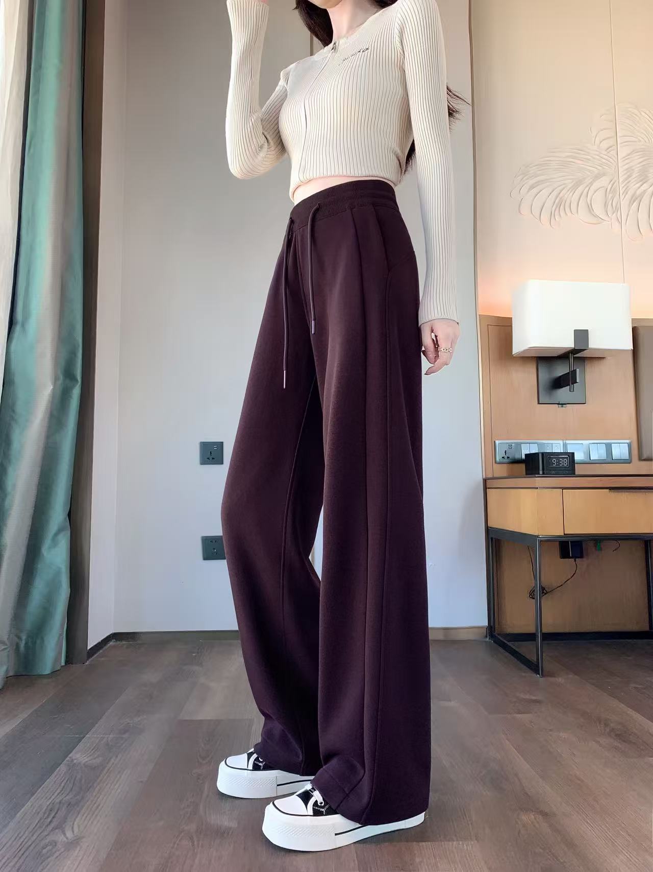 Winter Fleece-Lined High-Waisted Wide-Leg Pants, Slim-Fit Straight-Leg Sweatpants, Slimming Plus-Size Floor-Length Casual Pants
