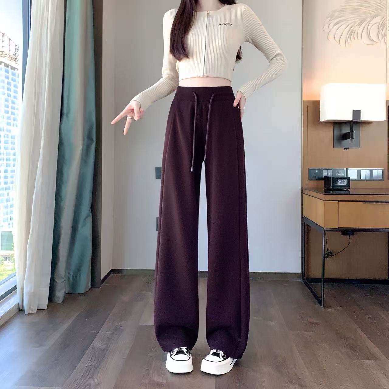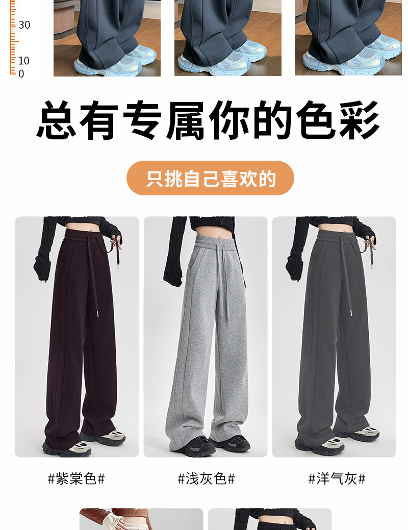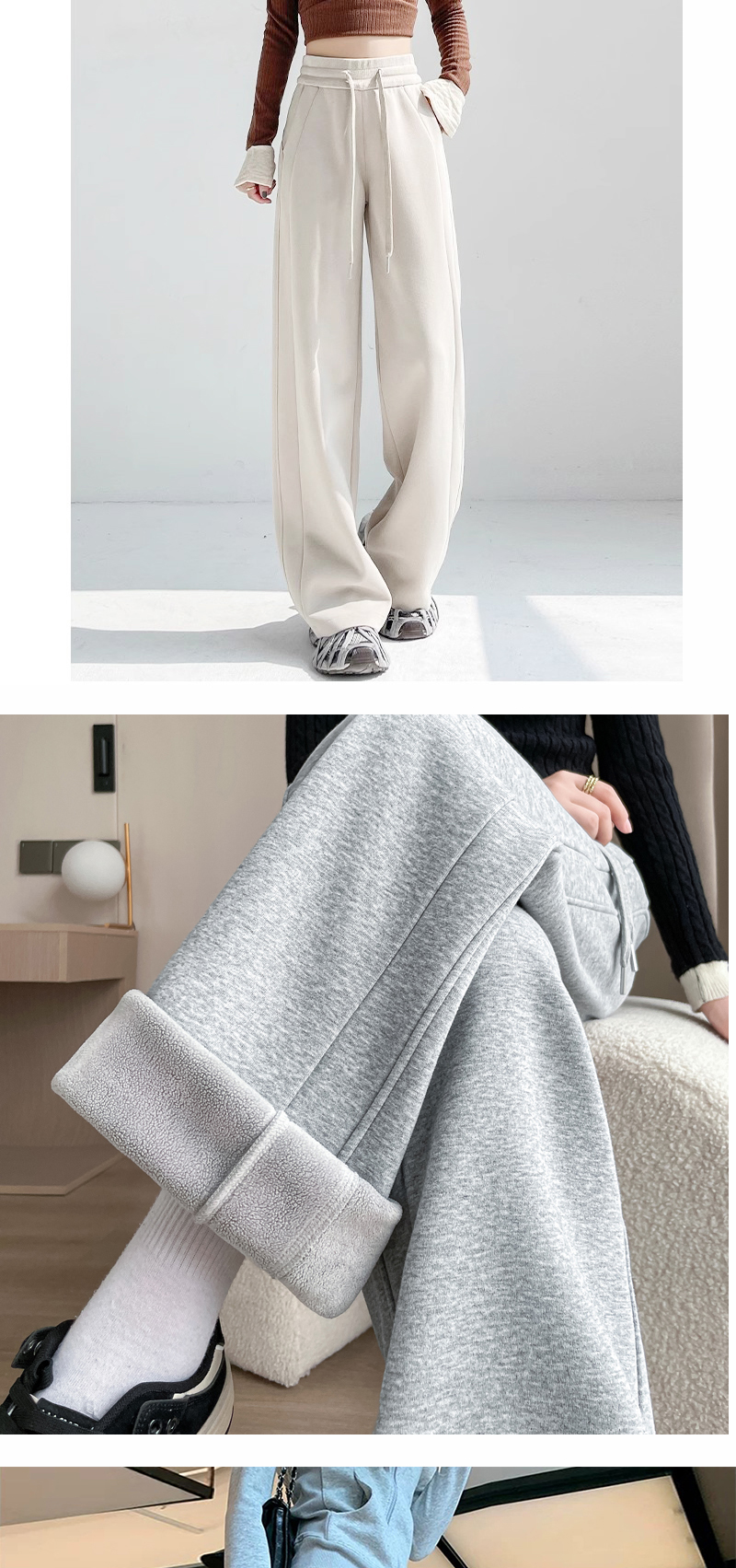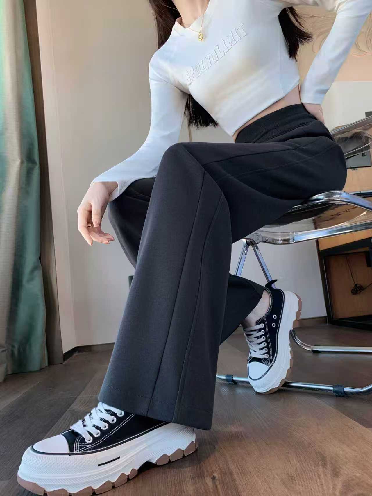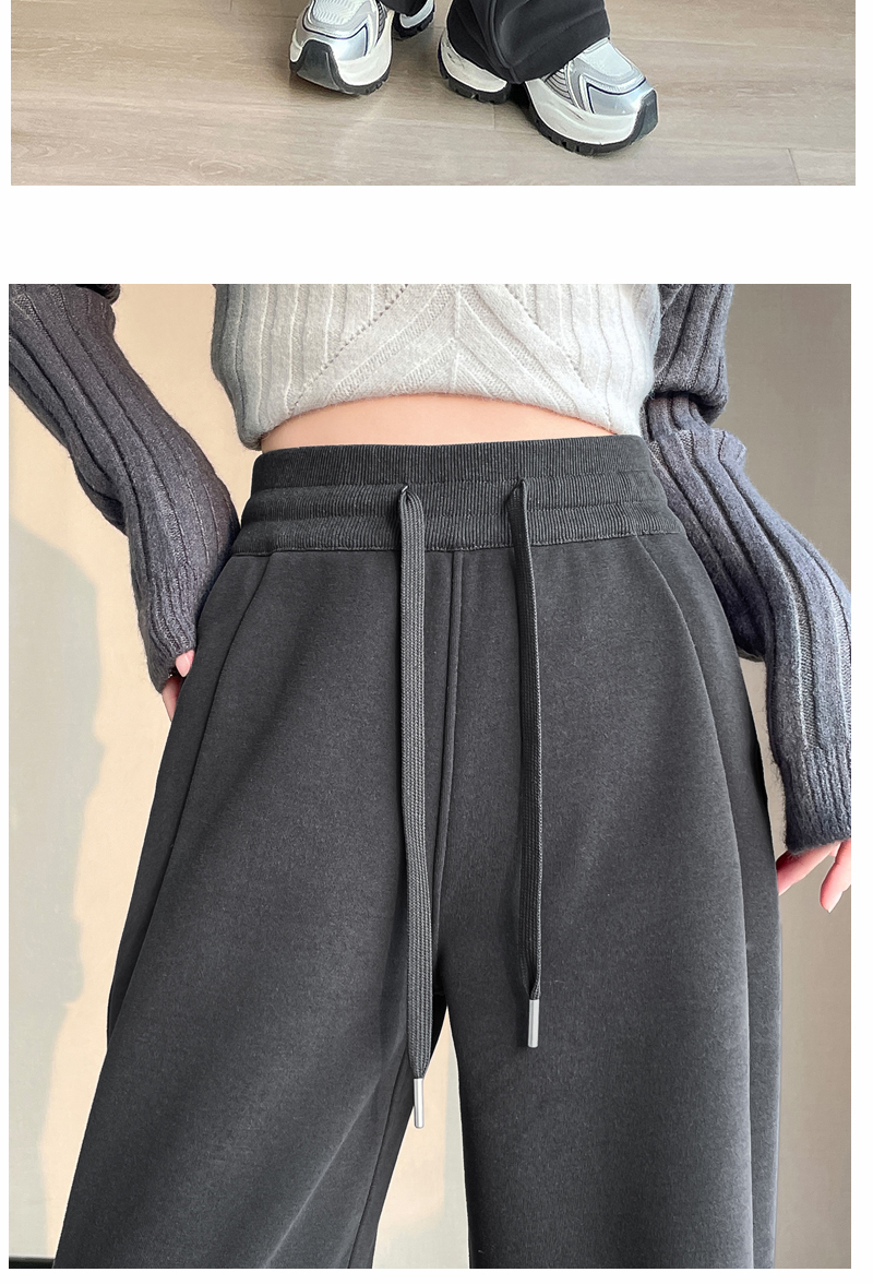Winter Fleece-Lined High-Waisted Wide-Leg Pants, Slim-Fit Straight-Leg Sweatpants, Slimming Plus-Size Floor-Length Casual Pants