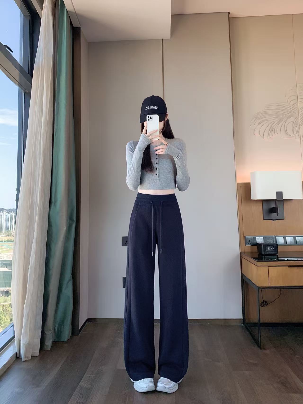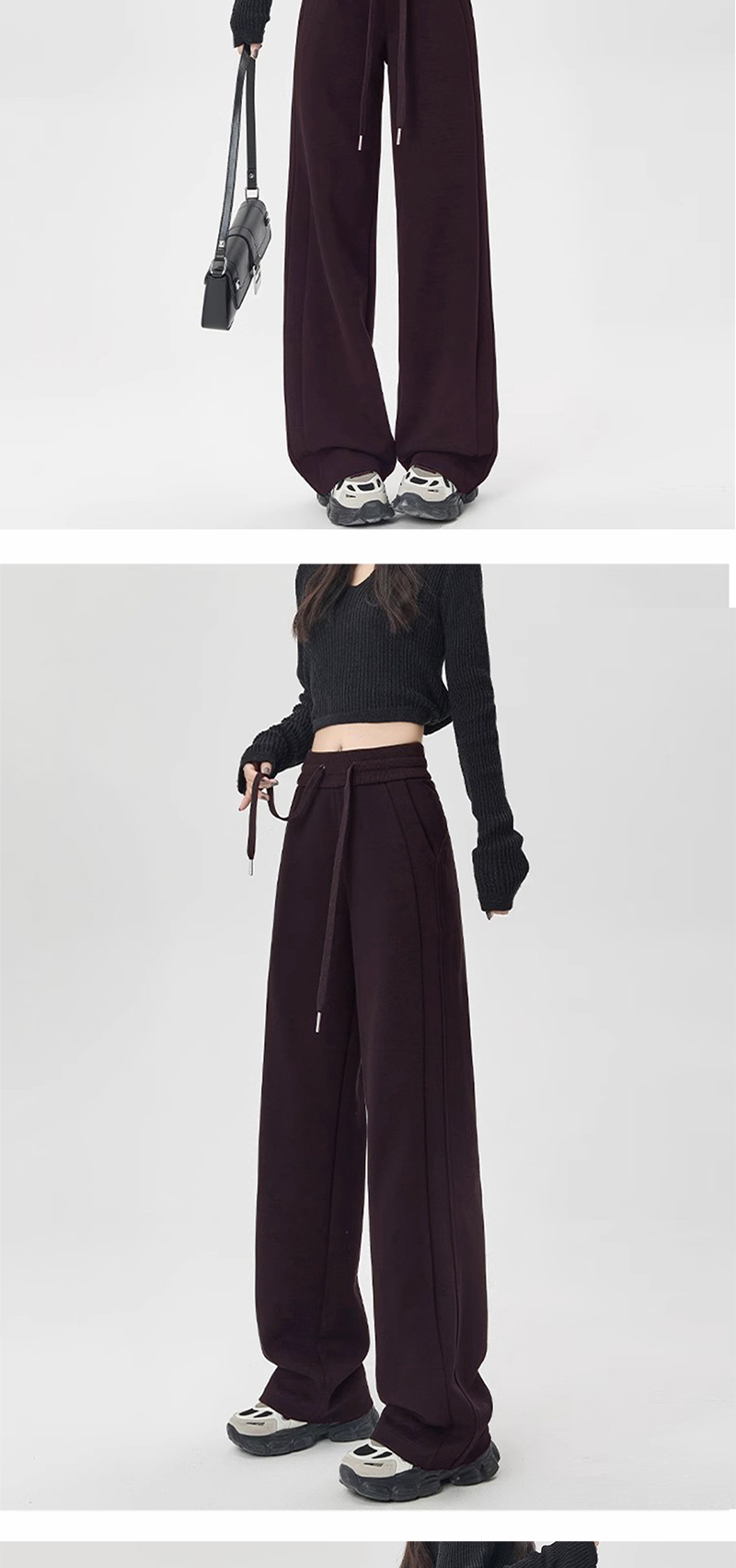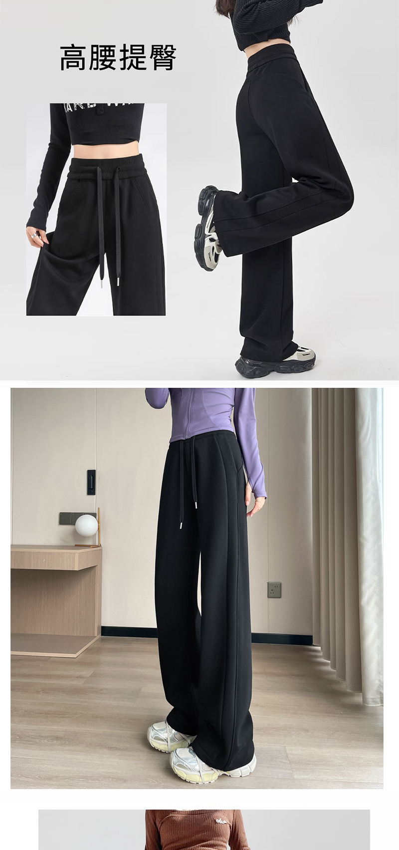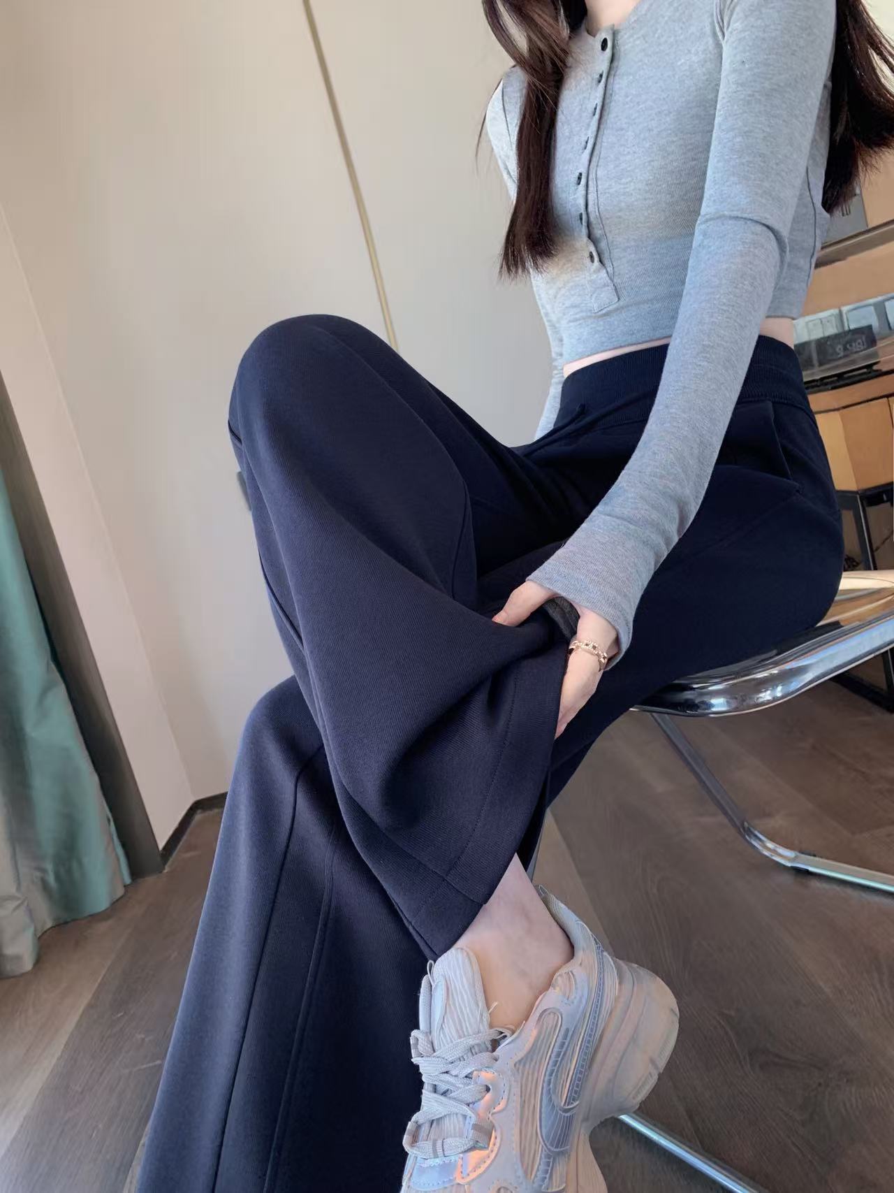 Winter Fleece-Lined High-Waisted Wide-Leg Pants, Slim-Fit Straight-Leg Sweatpants, Slimming Plus-Size Floor-Length Casual Pants