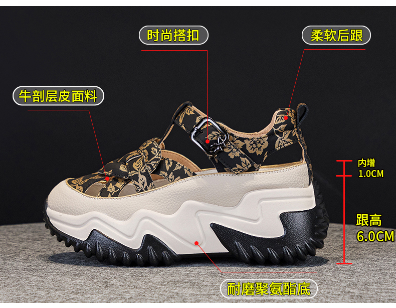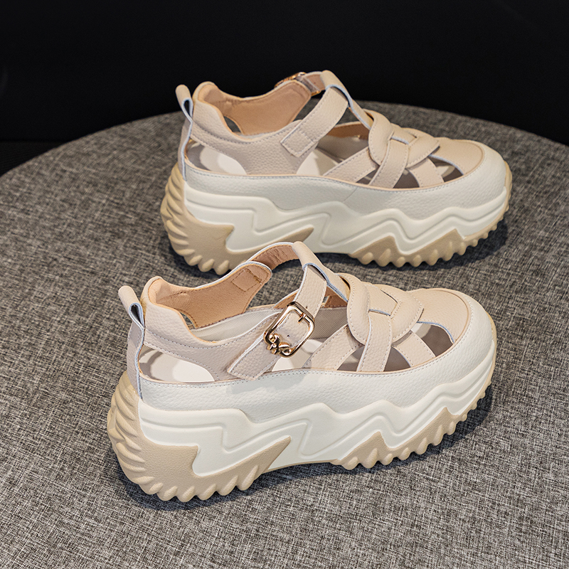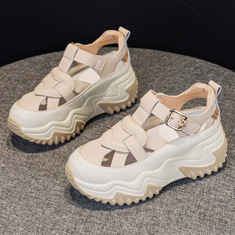 Women's Height-Increasing Sandals 2025 New Summer Genuine Leather Closed-Toe Clogs Thick-Soled Sports Wedge Platform Roman Sandals
