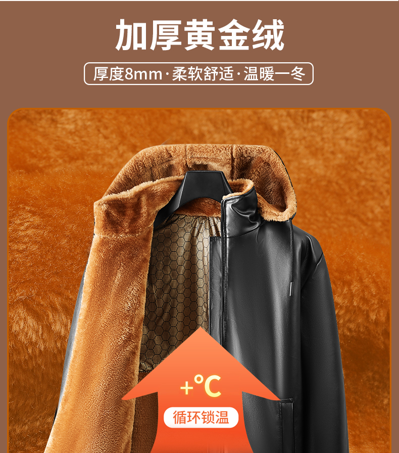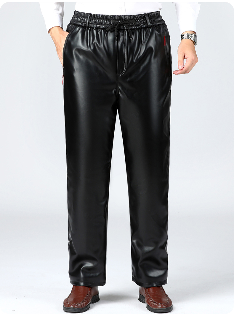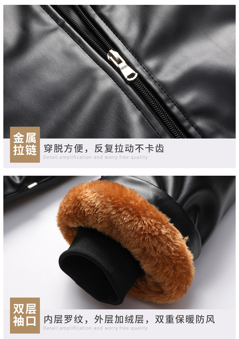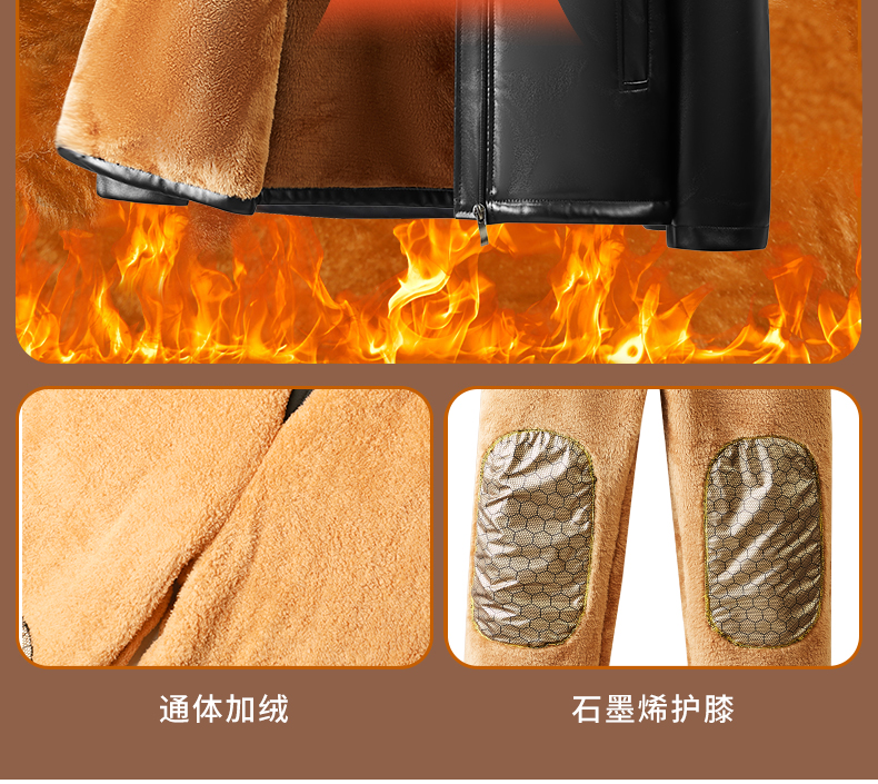 Leather Clothing Leather Pants Men's Suit Motorcycle Fleece-lined thickened Heattech Outwear Cycling Take-out Work Cotton-padded jacket