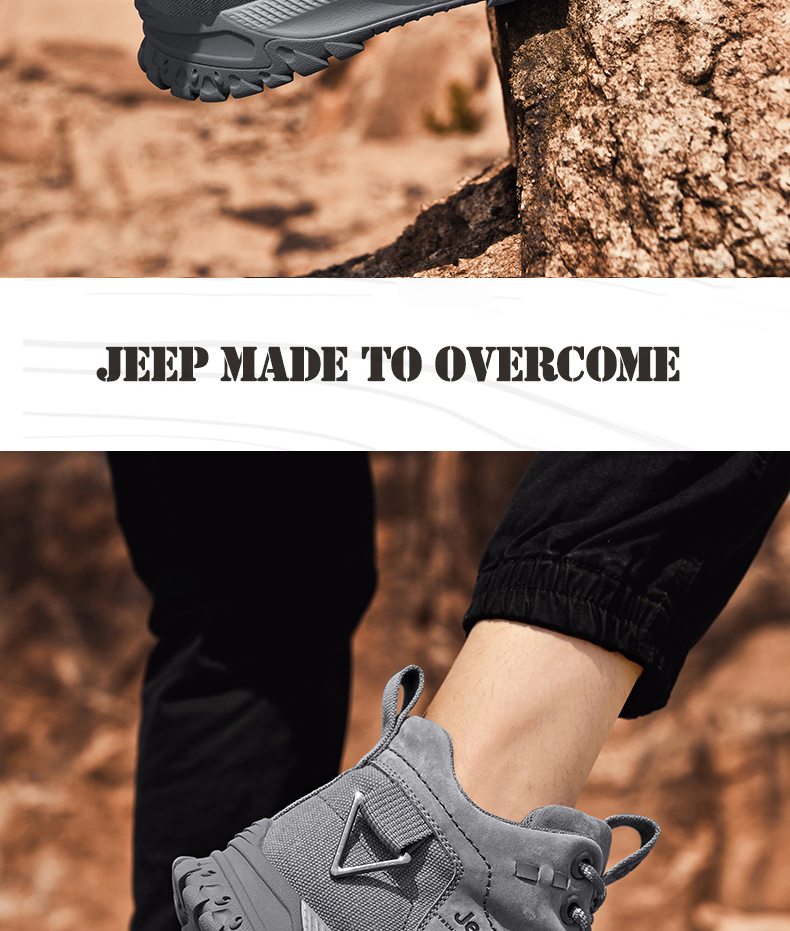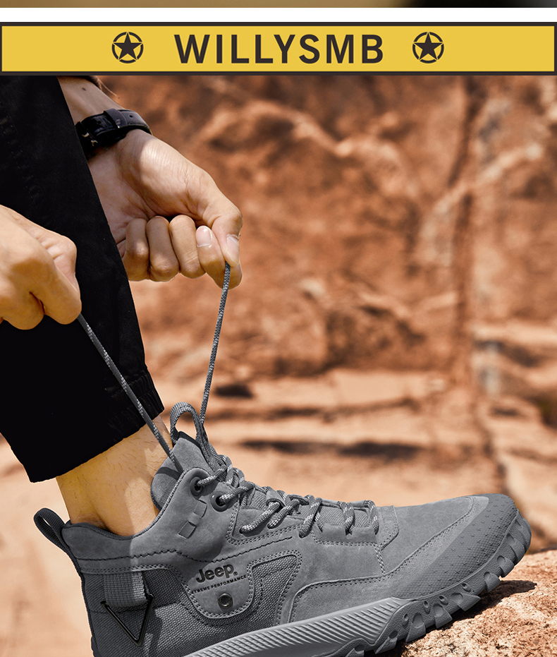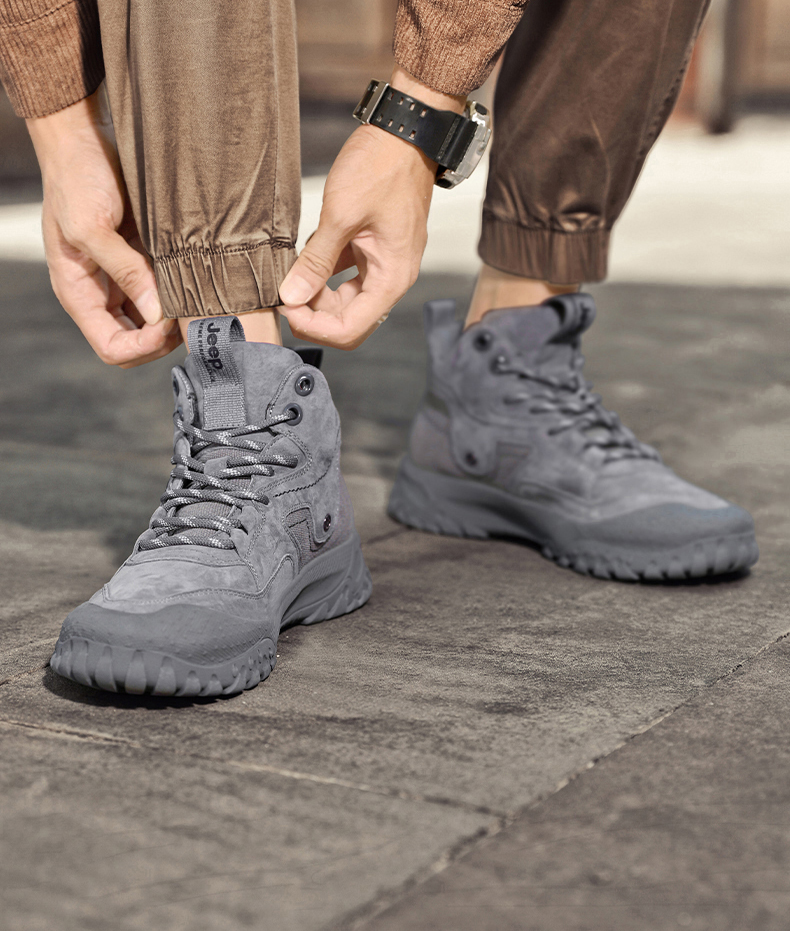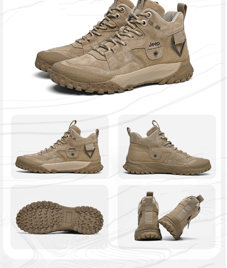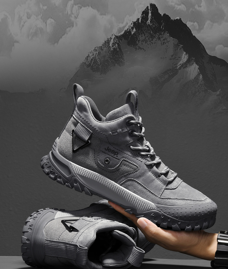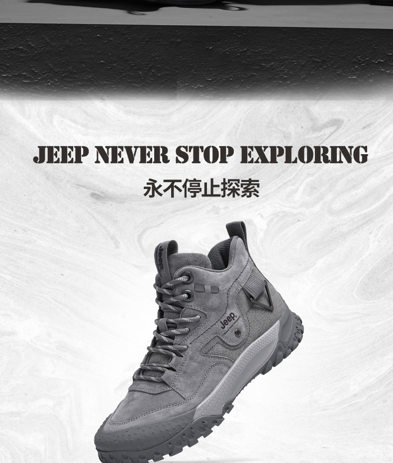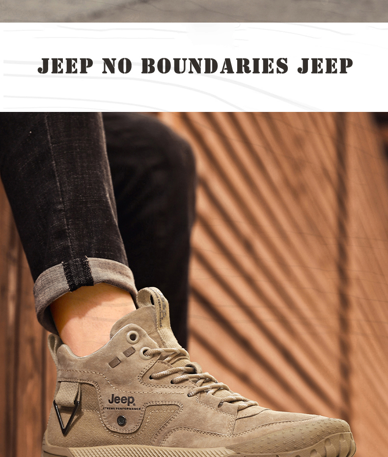 Jeep High-Top Shoes for Men, Winter Outdoor Hiking Sneakers, Genuine Leather Casual Fleece-Lined Cotton Shoes, Non-Slip Martin Boots, Trendy