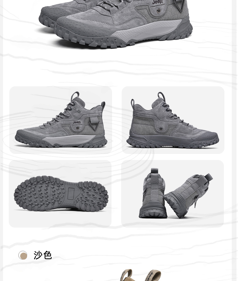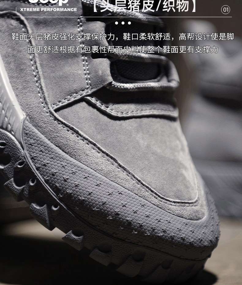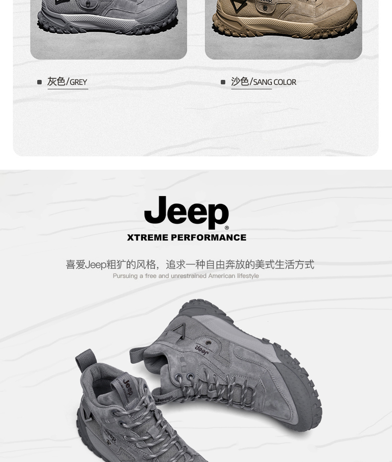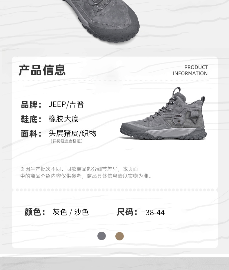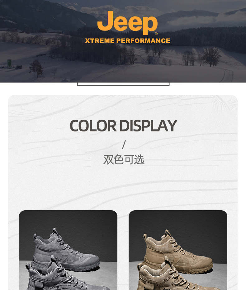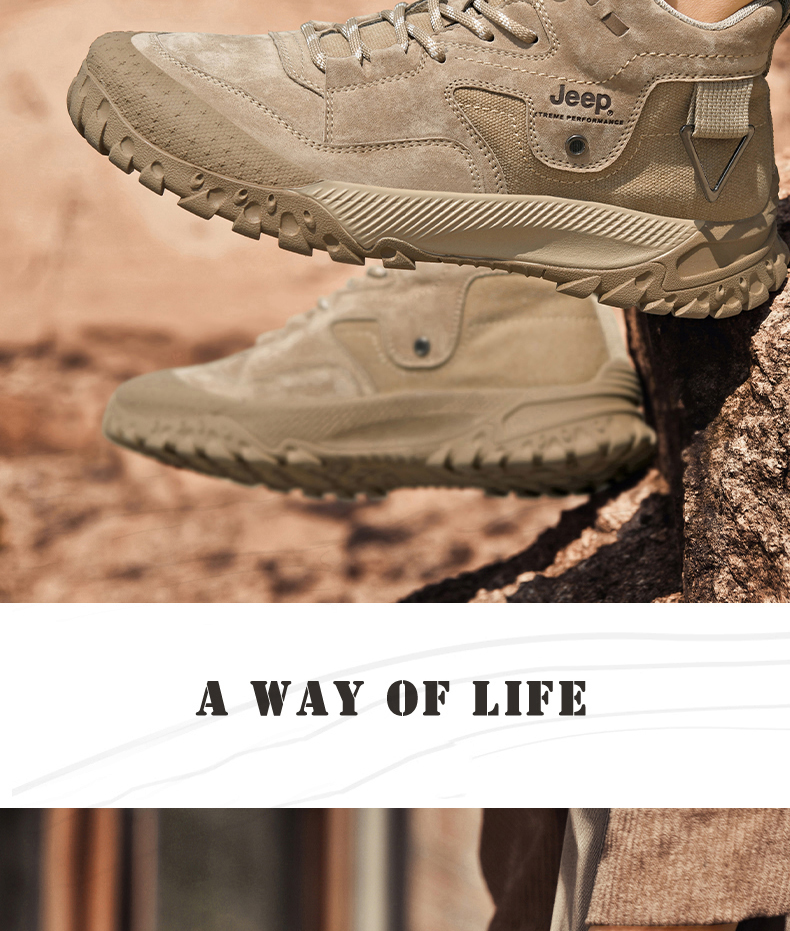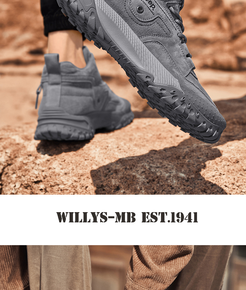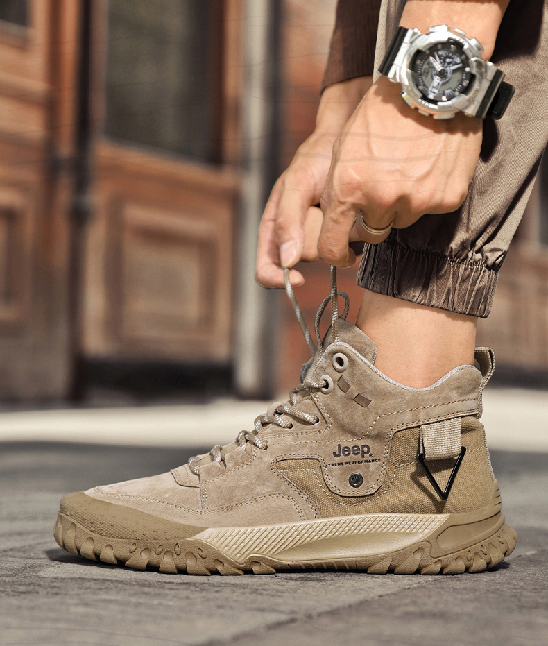 Jeep High-Top Shoes for Men, Winter Outdoor Hiking Sneakers, Genuine Leather Casual Fleece-Lined Cotton Shoes, Non-Slip Martin Boots, Trendy