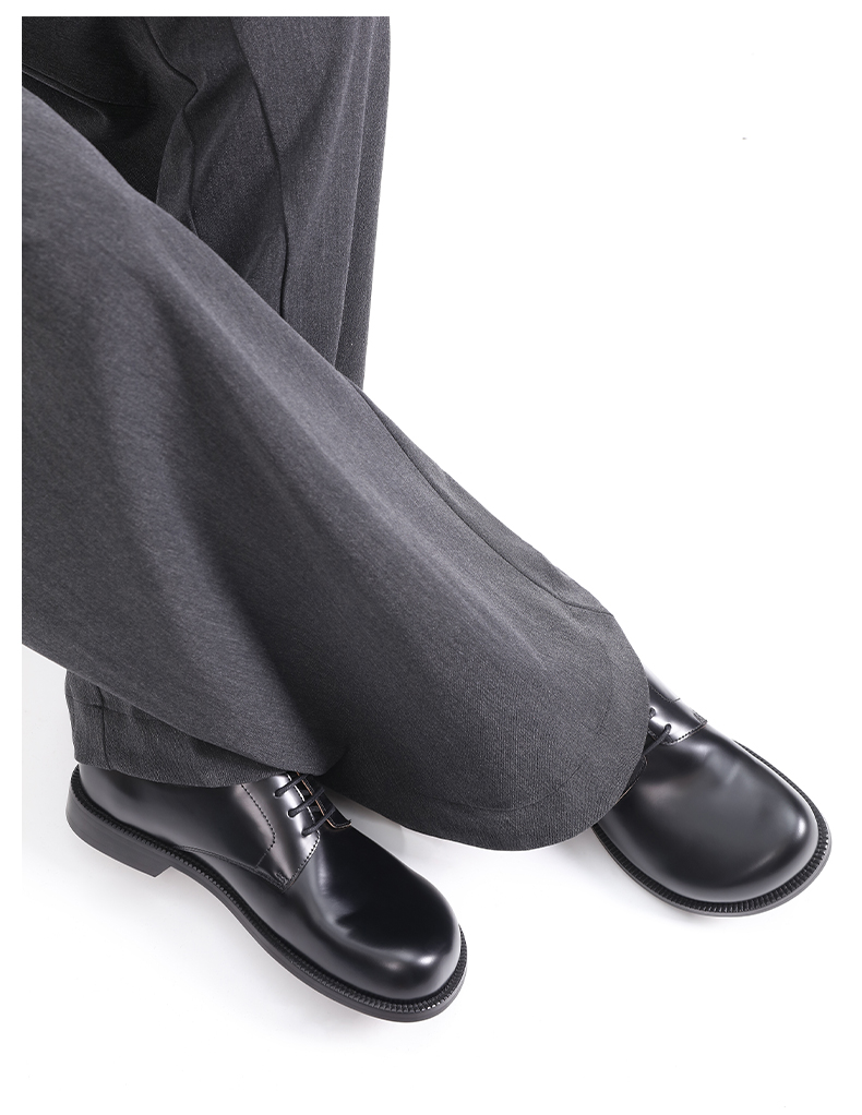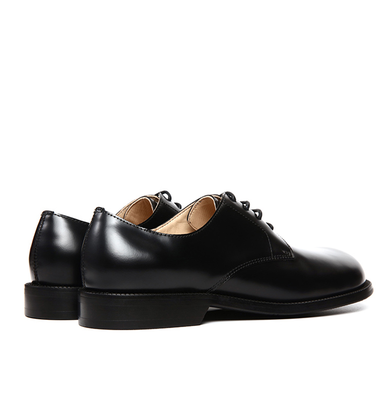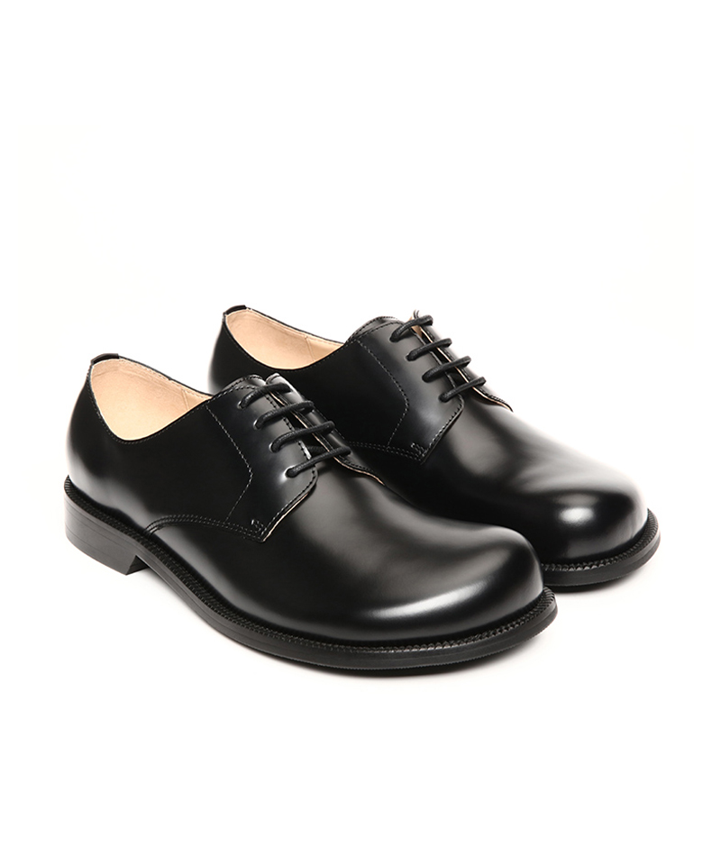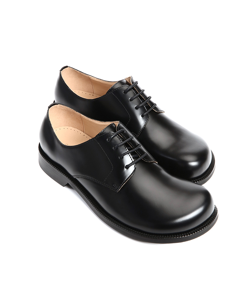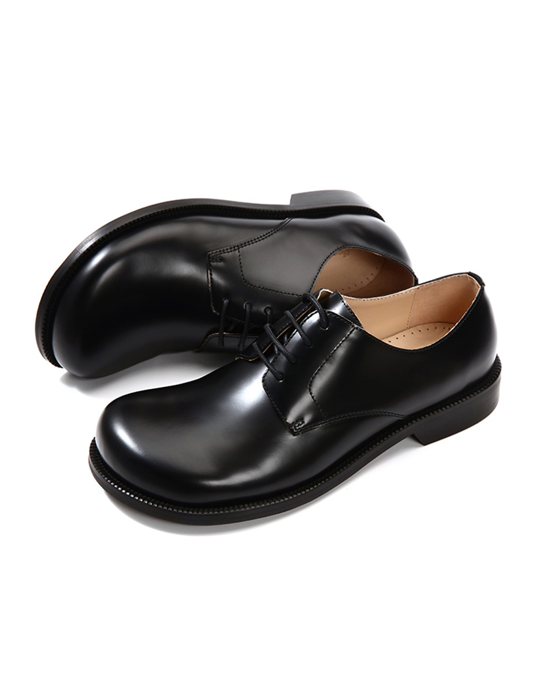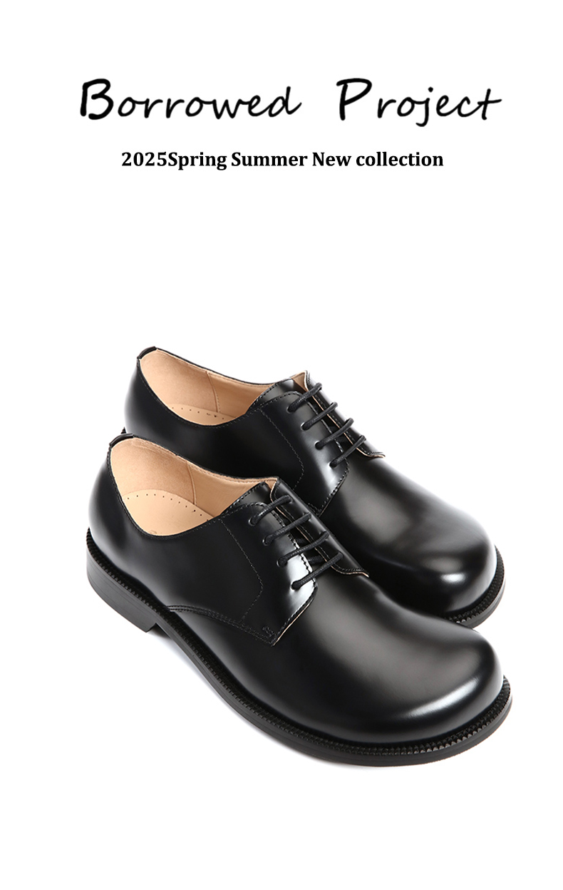Borrowed Project 002 Oblique Round Derby Shoes with Open Edges and Patent Leather
