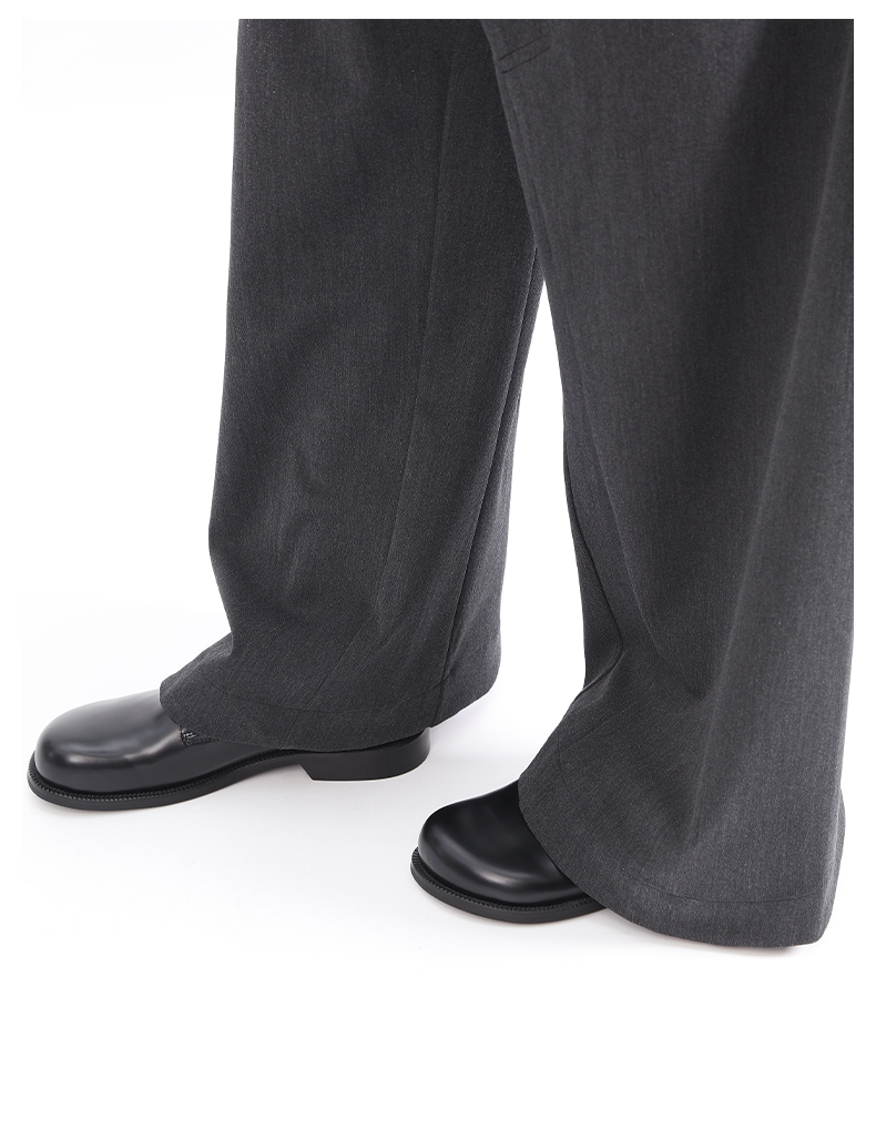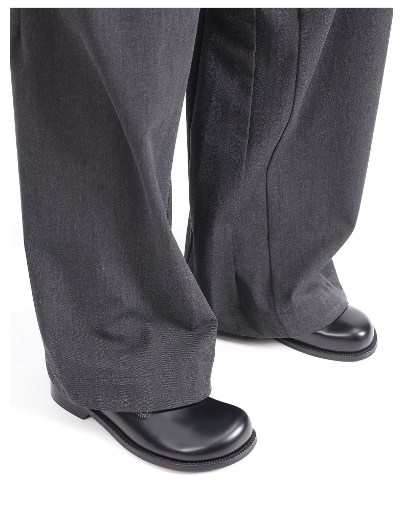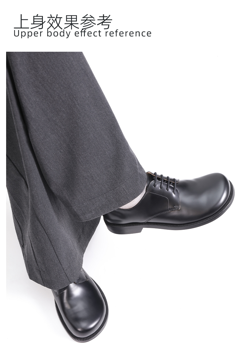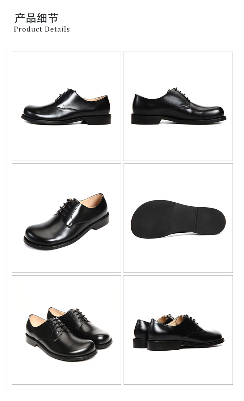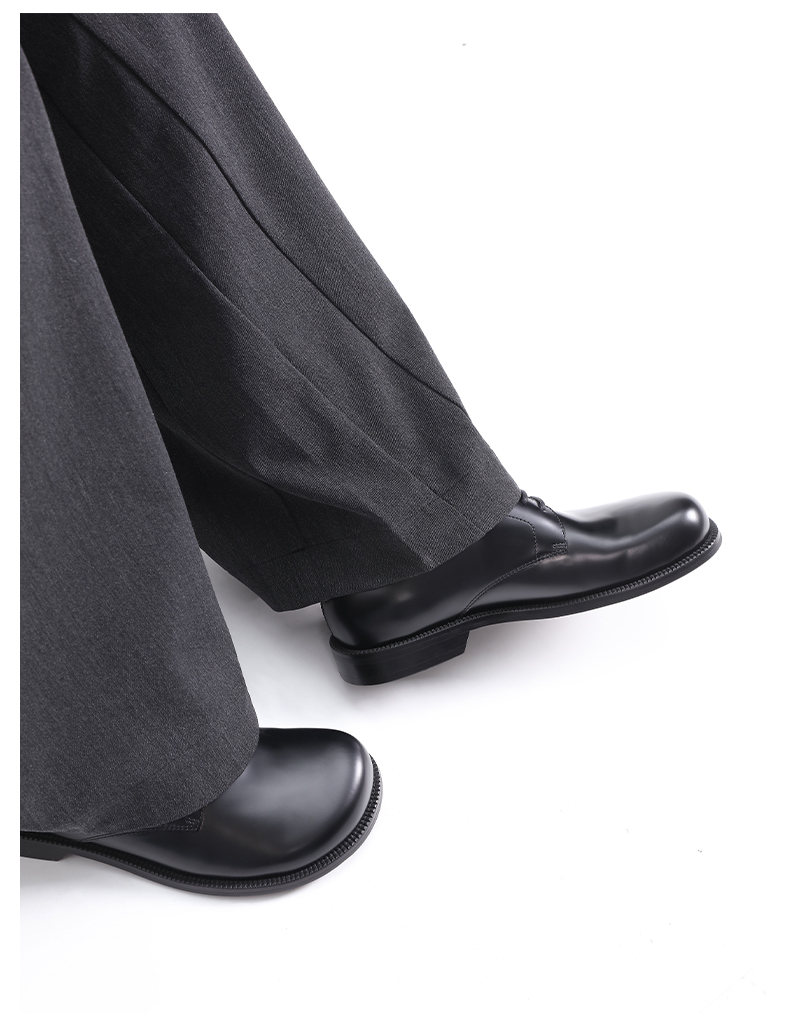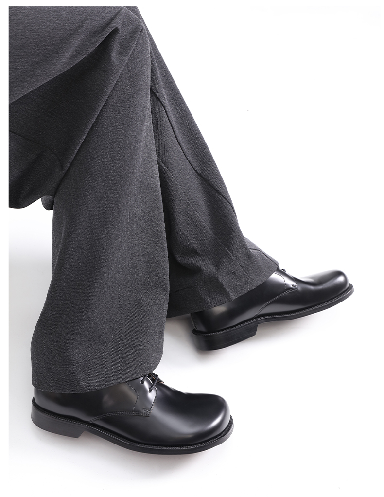 Borrowed Project 002 Oblique Round Derby Shoes with Open Edges and Patent Leather