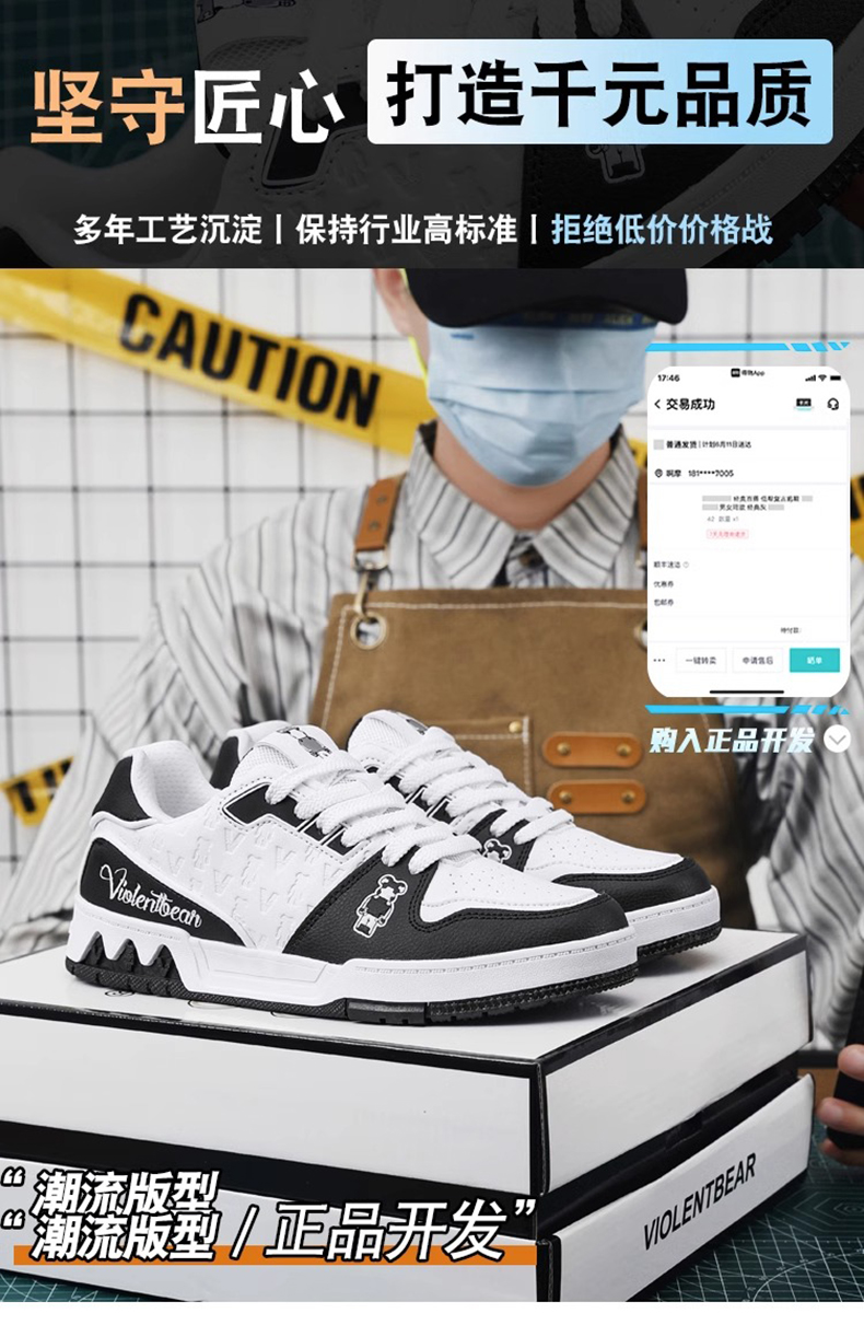Violent Bear Men's Shoes Flagship Authentic Trendy Women's Shoes 2025 Winter New Casual Versatile Breathable Low-Top Sports Sneakers