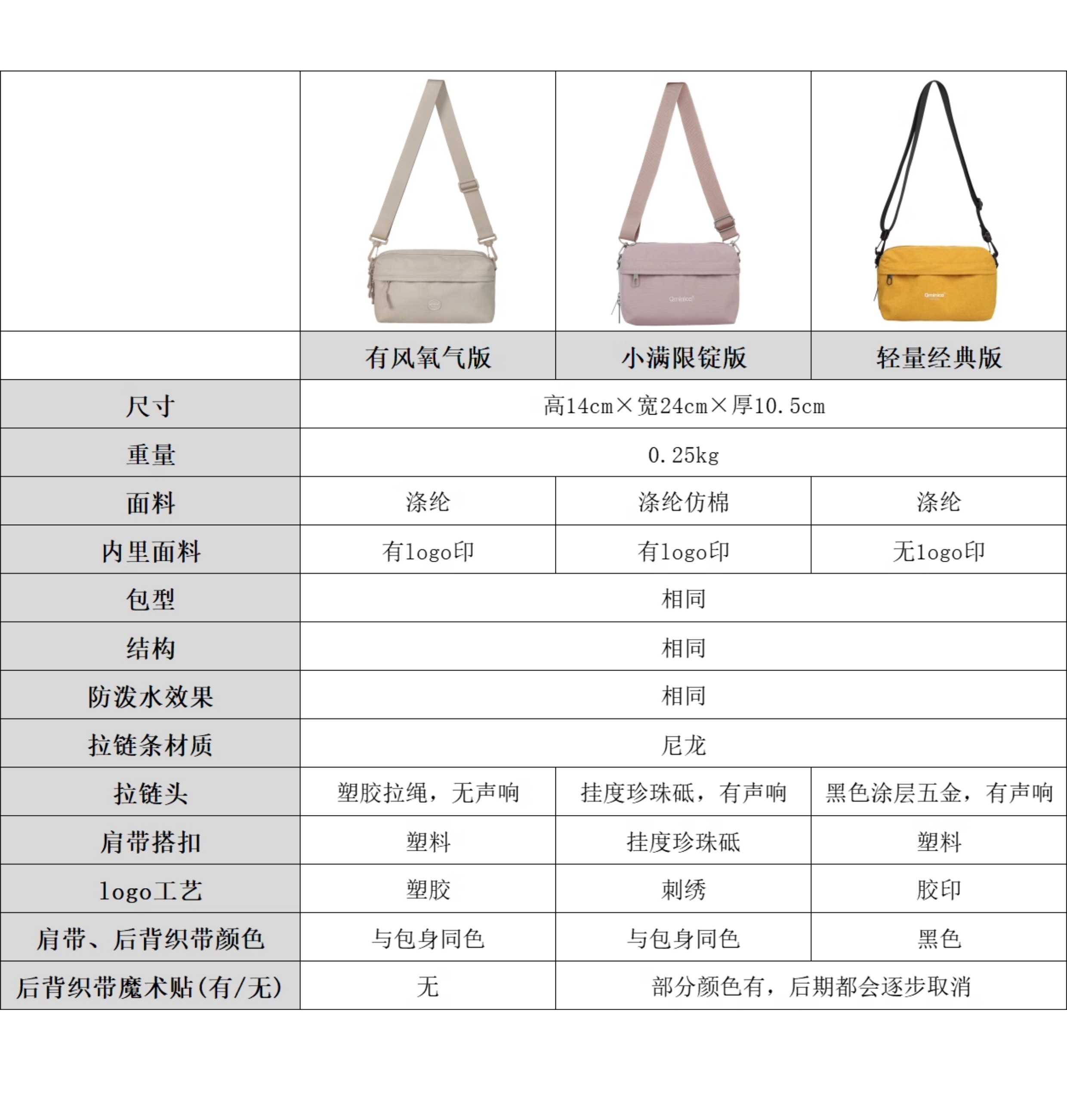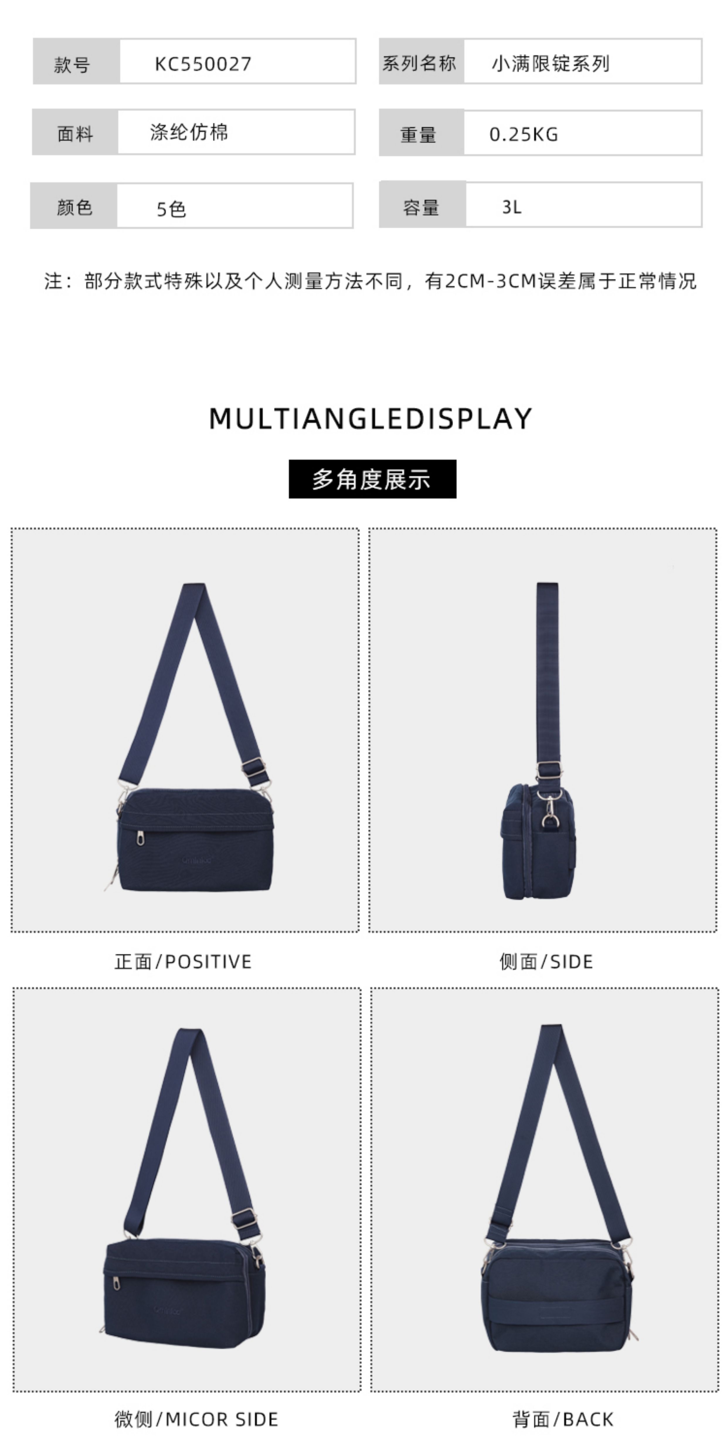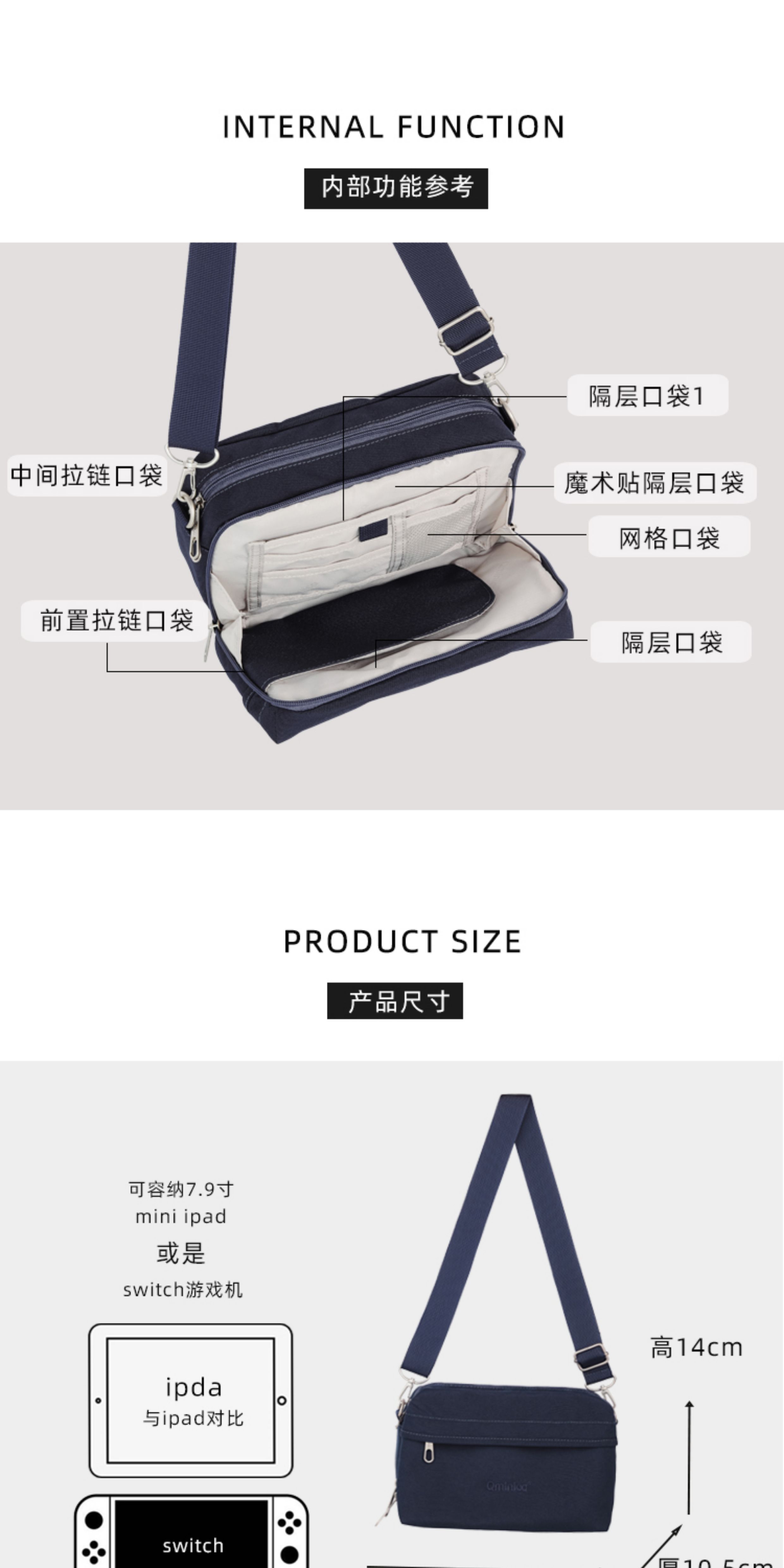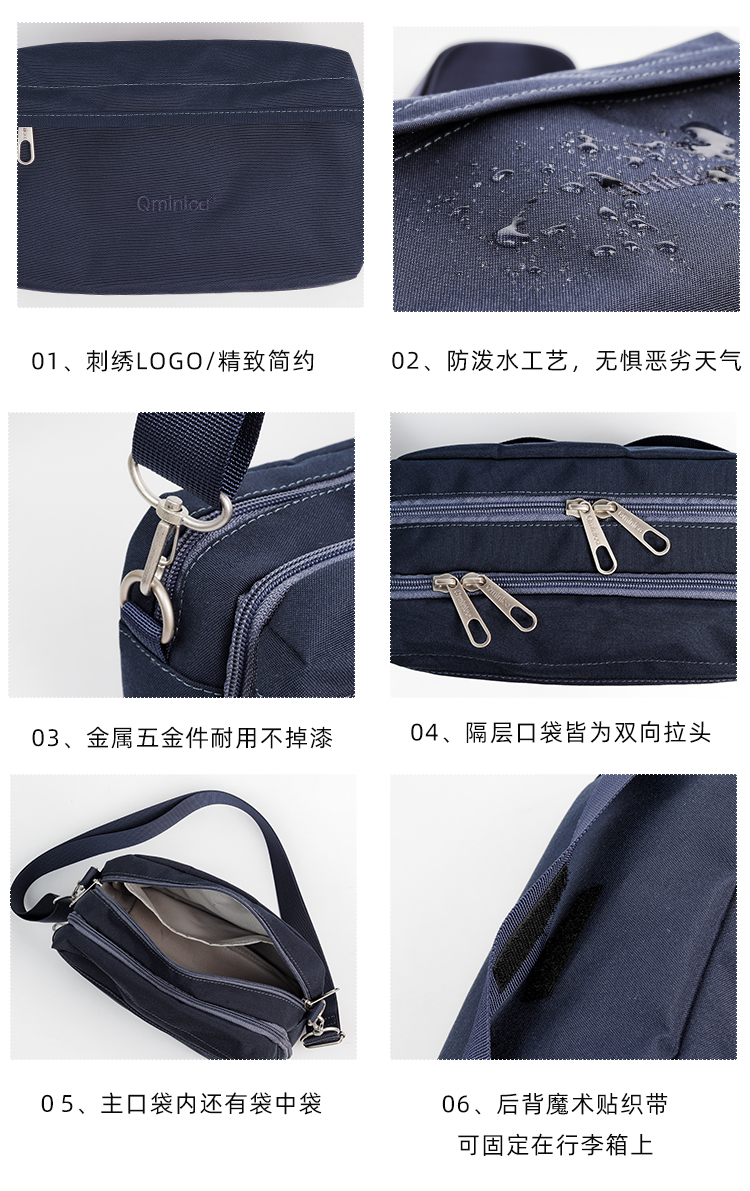 Qminica Xiaoman Series Crossbody Bag Waterproof Short Trip Storage Toiletry Makeup Bag Compartment Crossbody Bag