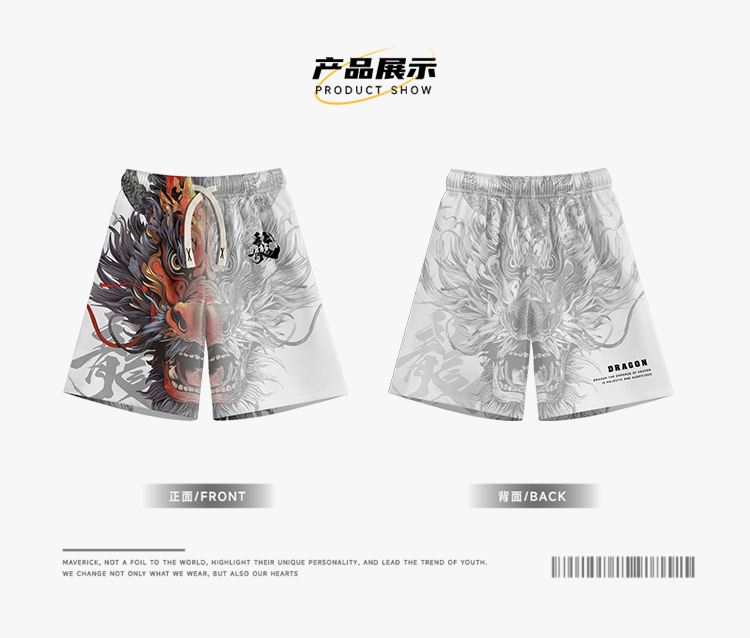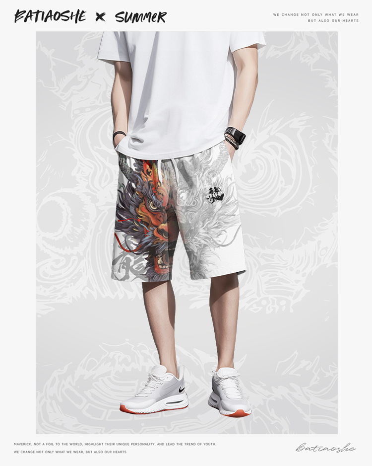 2025 Summer New National Trend Dragon Pattern Printed Shorts Men's Quick-Drying Thin Loose Casual Five-Point Pants for Boys