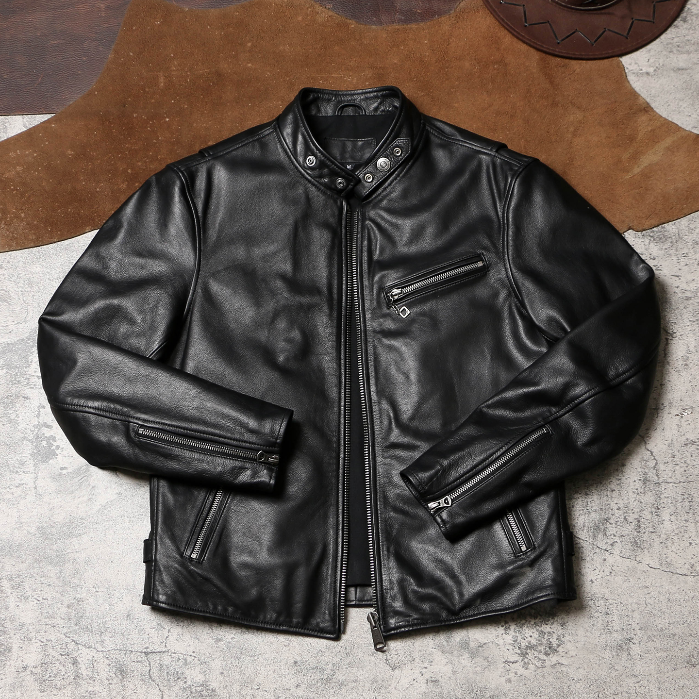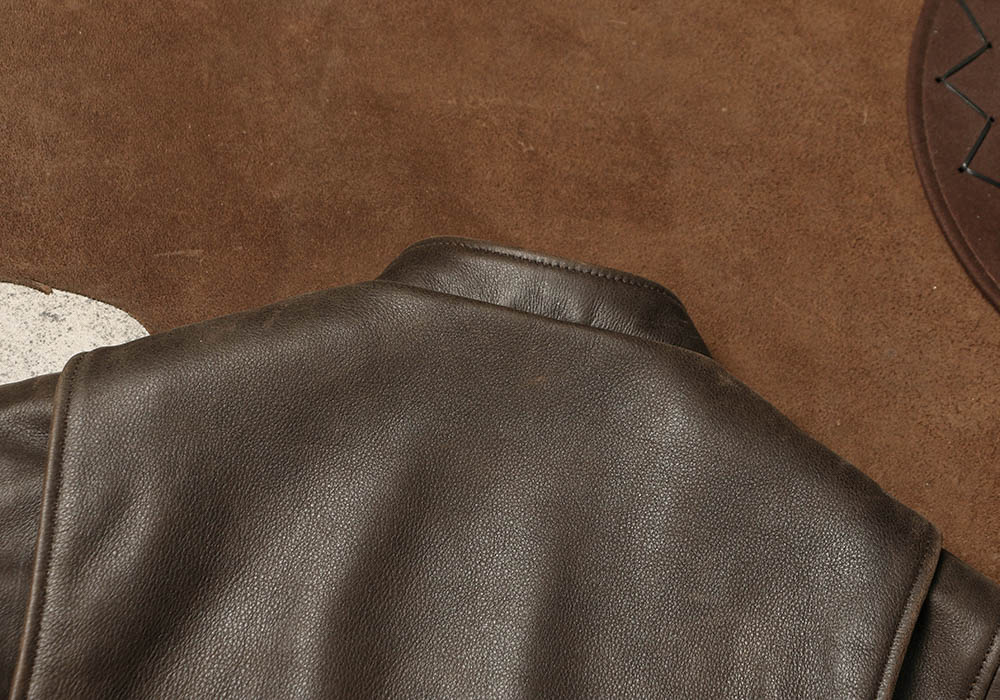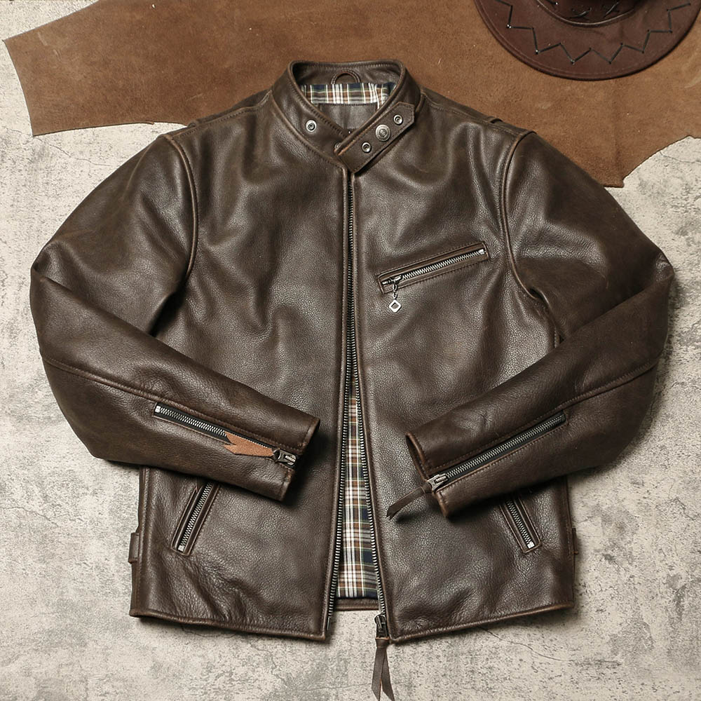 Coffee Knight Vintage Distressed Leather Jacket, Genuine Leather Biker Jacket, Men's Stand Collar Genuine Leather Motorcycle Jacket
