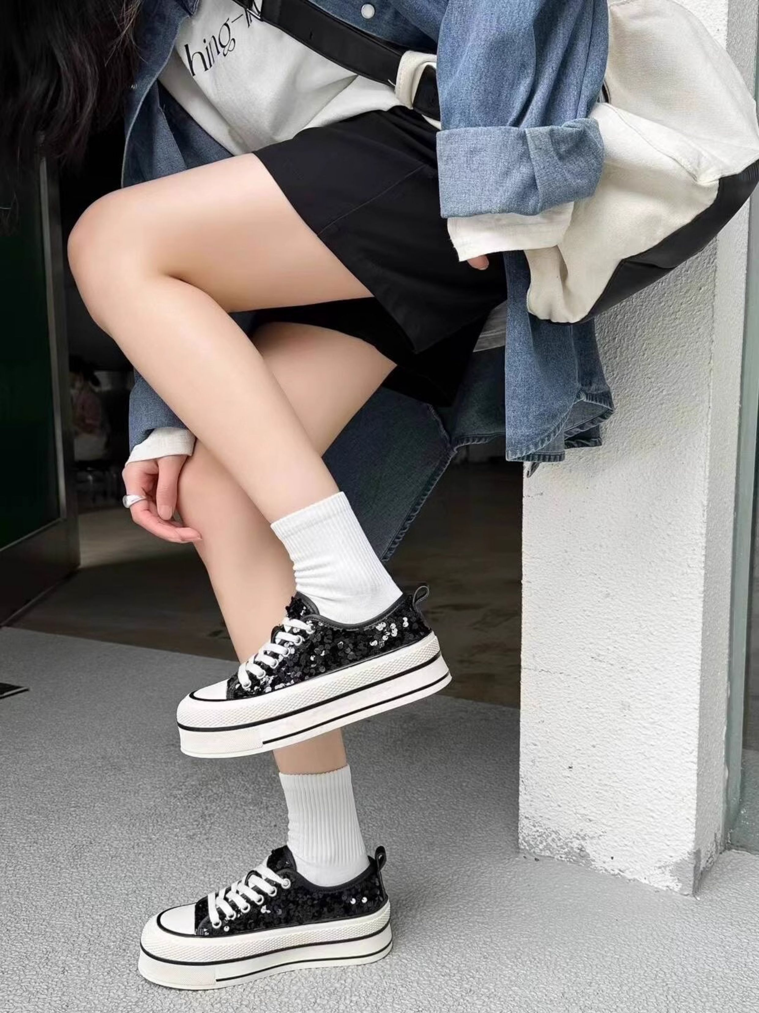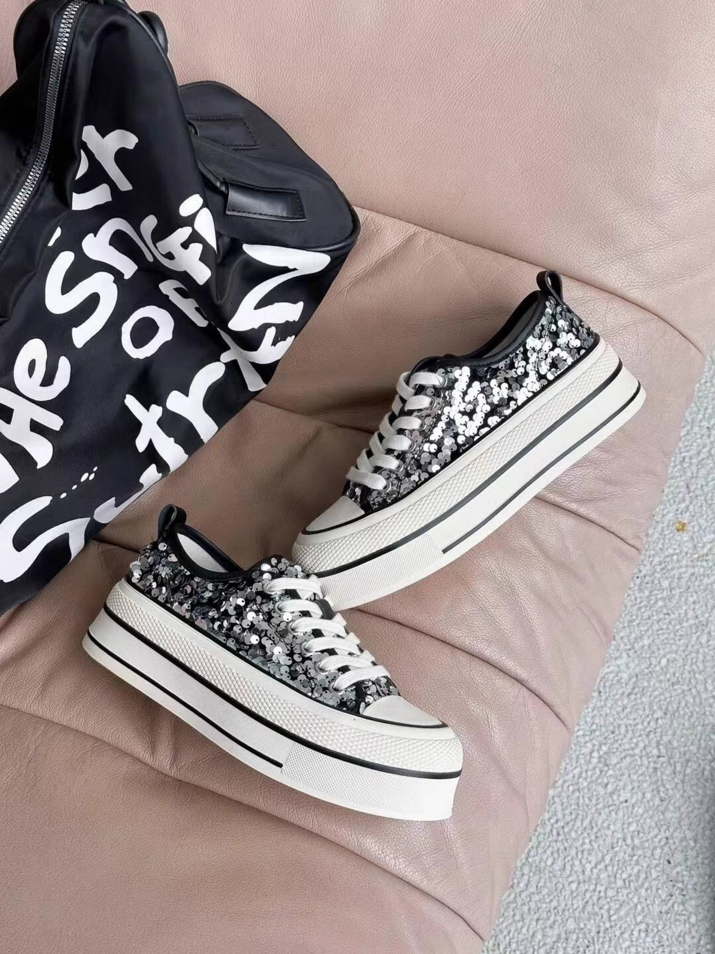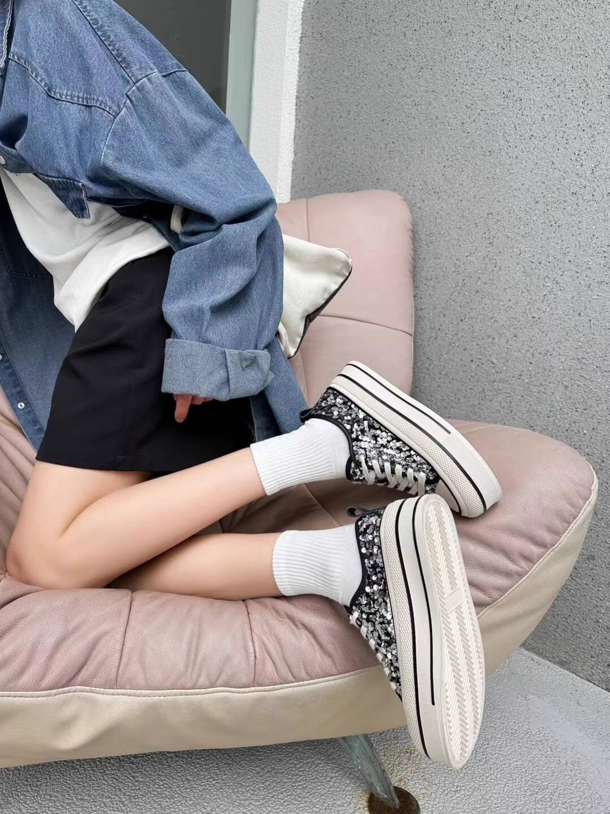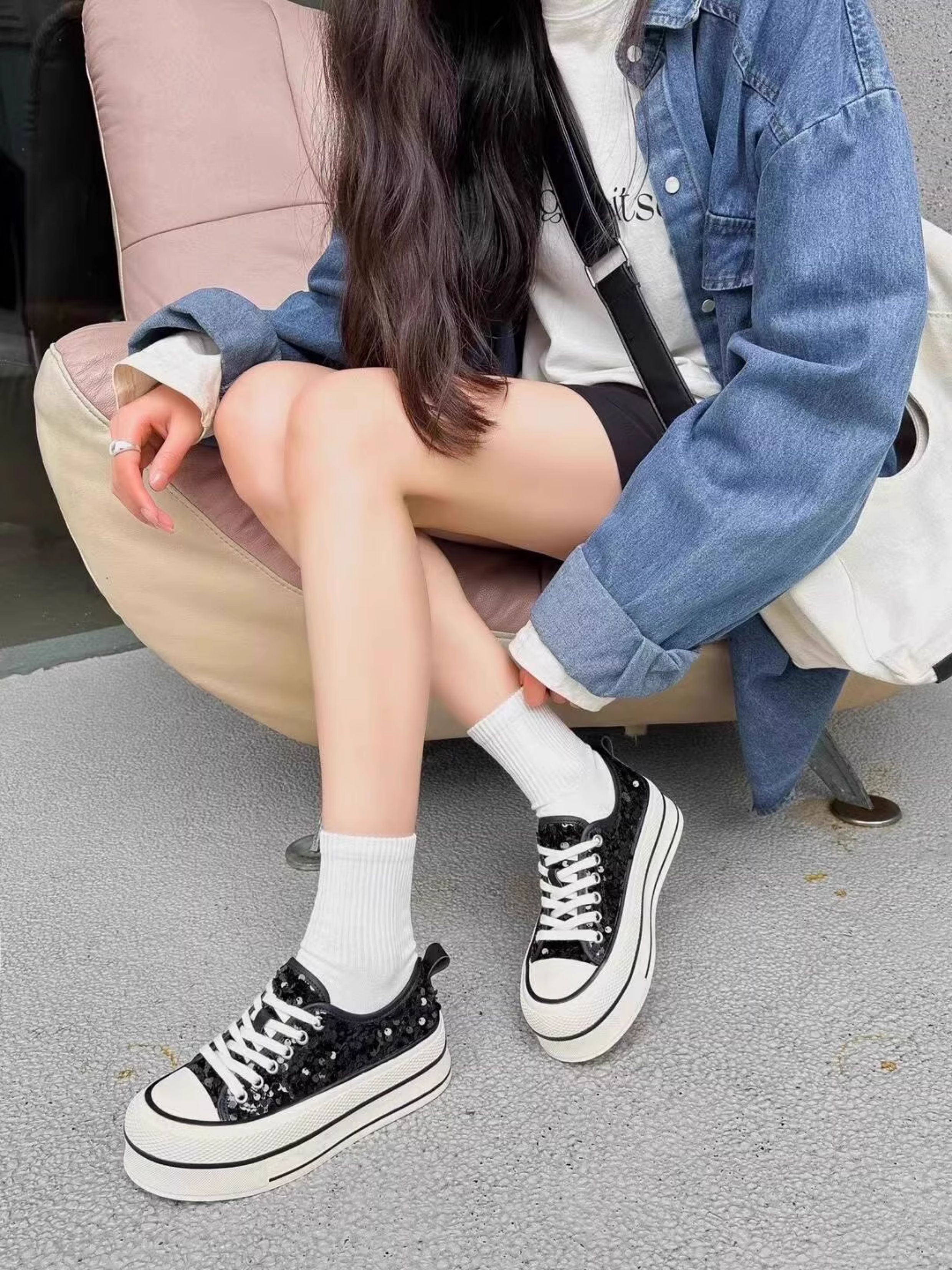 Hong Kong Sequin Platform Sneakers for Petite Women, Height-Increasing, 2025 Spring and Autumn Fashion, Casual, Versatile, Korean Style Platform Shoes, Trendy