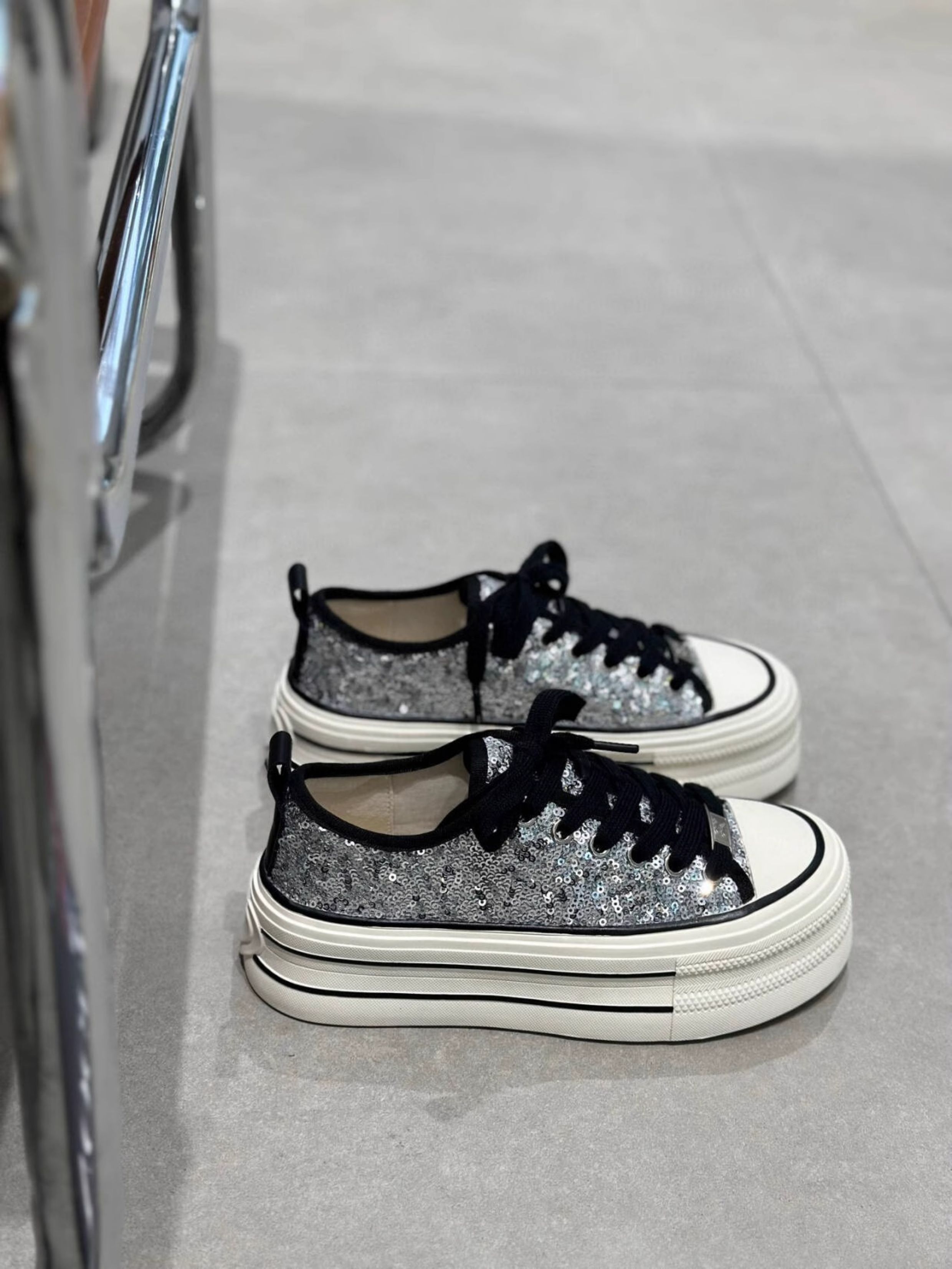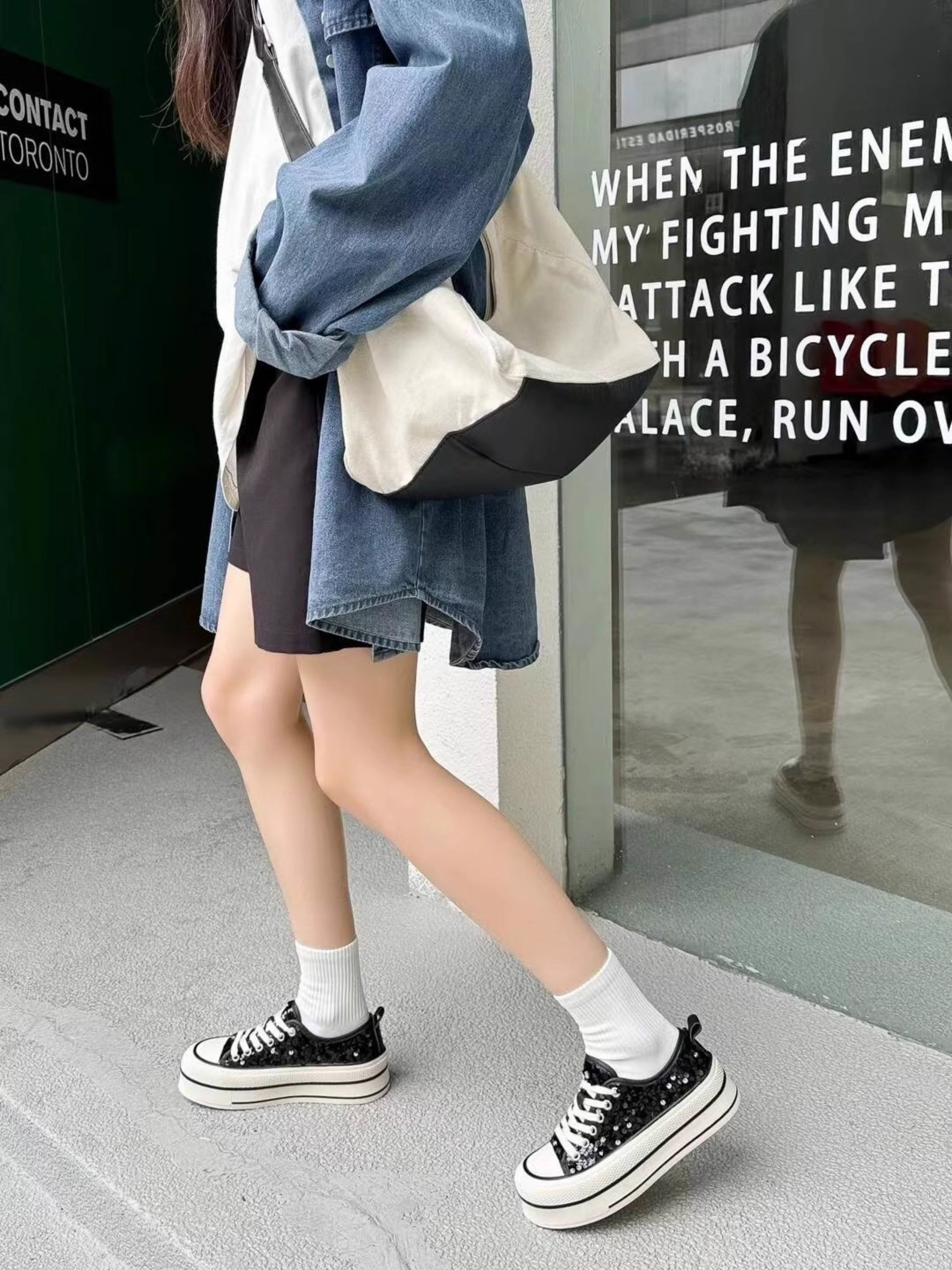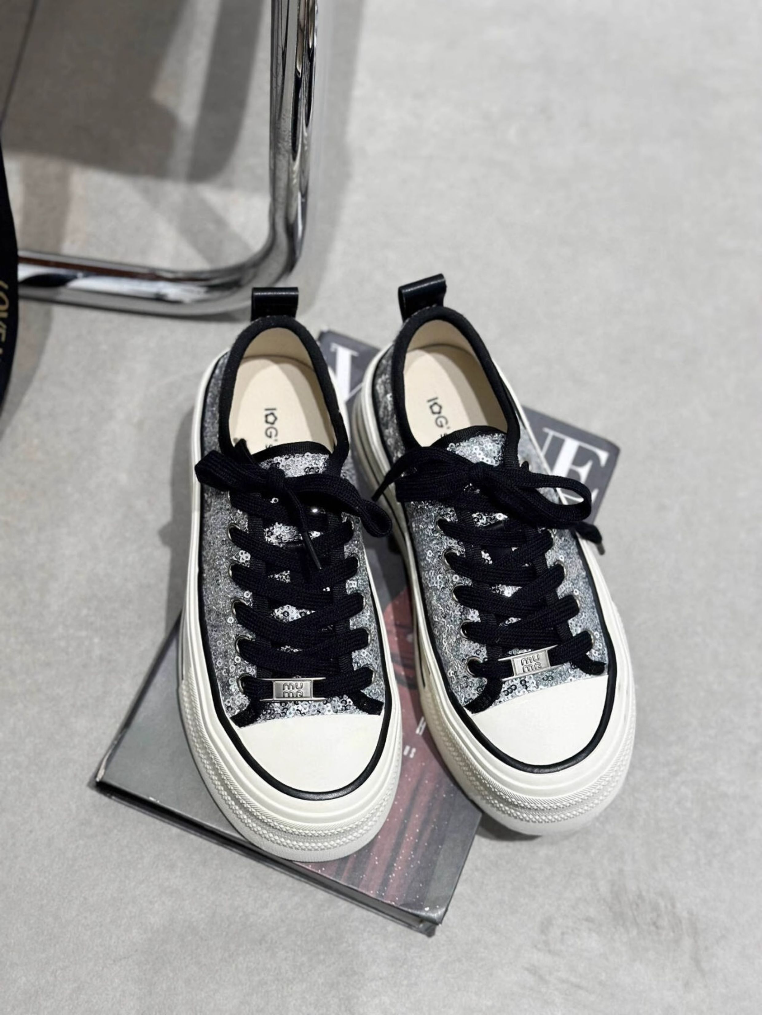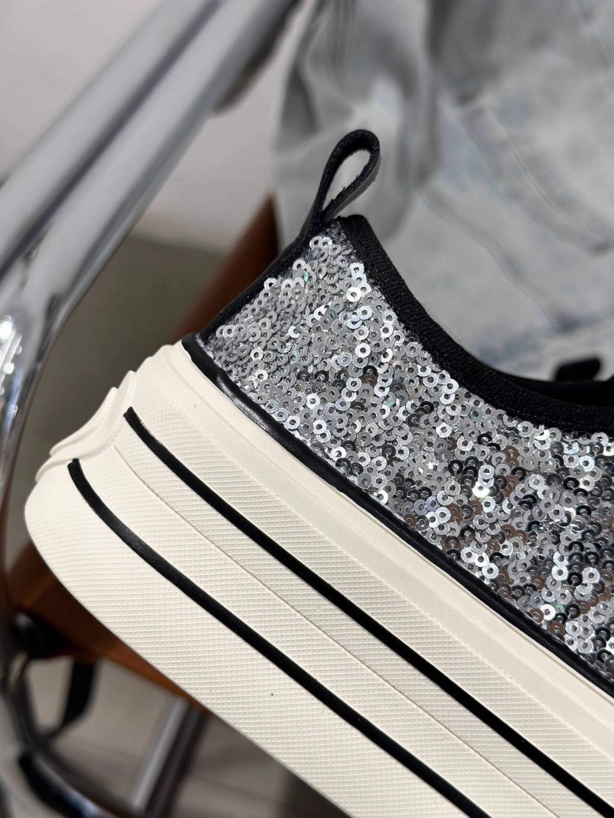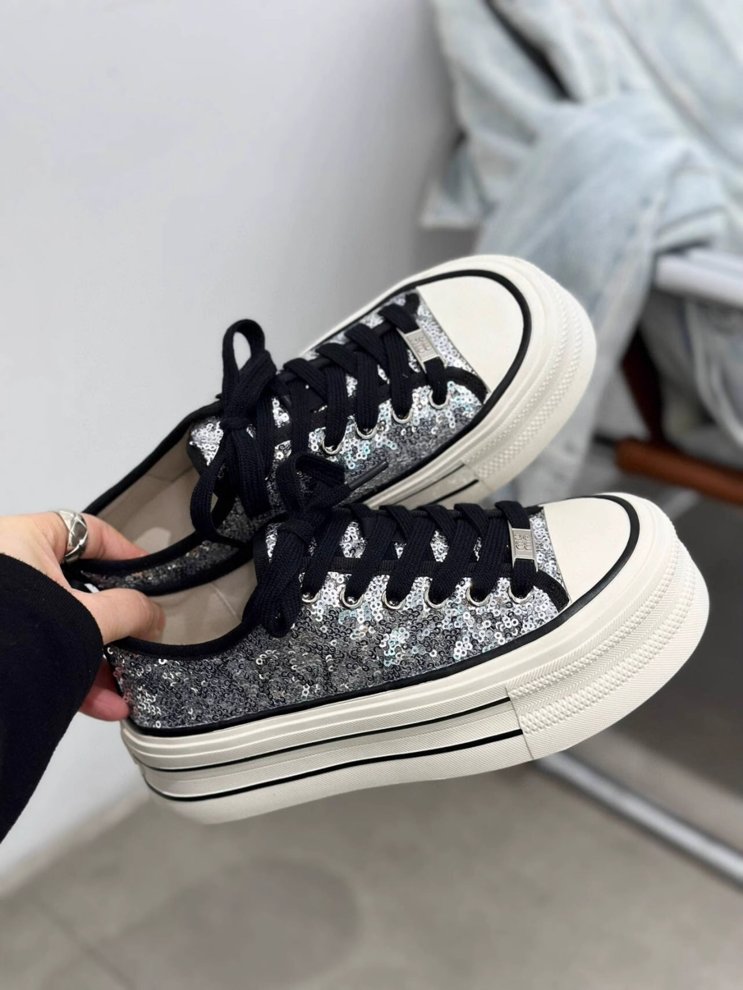 Hong Kong Sequin Platform Sneakers for Petite Women, Height-Increasing, 2025 Spring and Autumn Fashion, Casual, Versatile, Korean Style Platform Shoes, Trendy