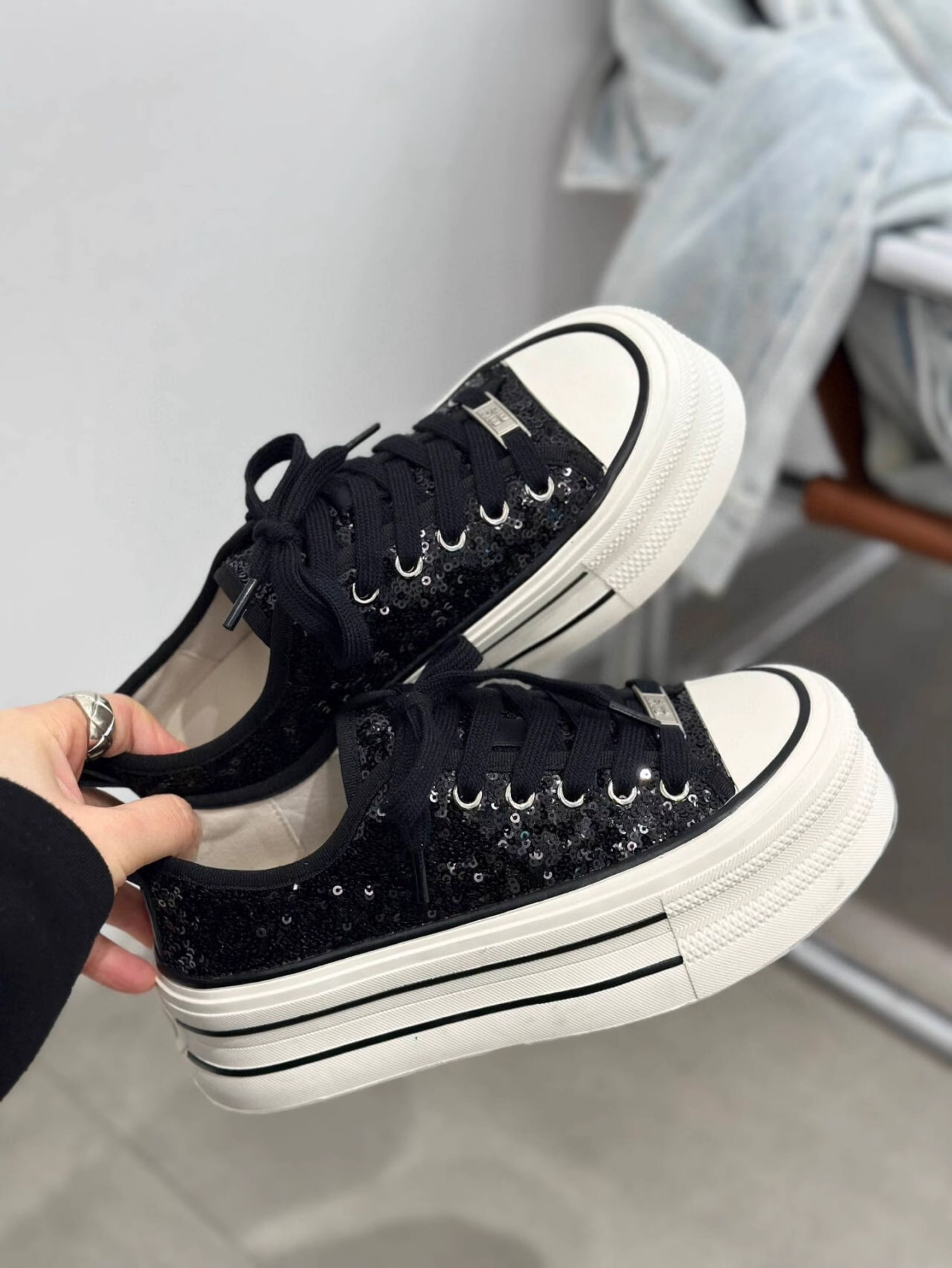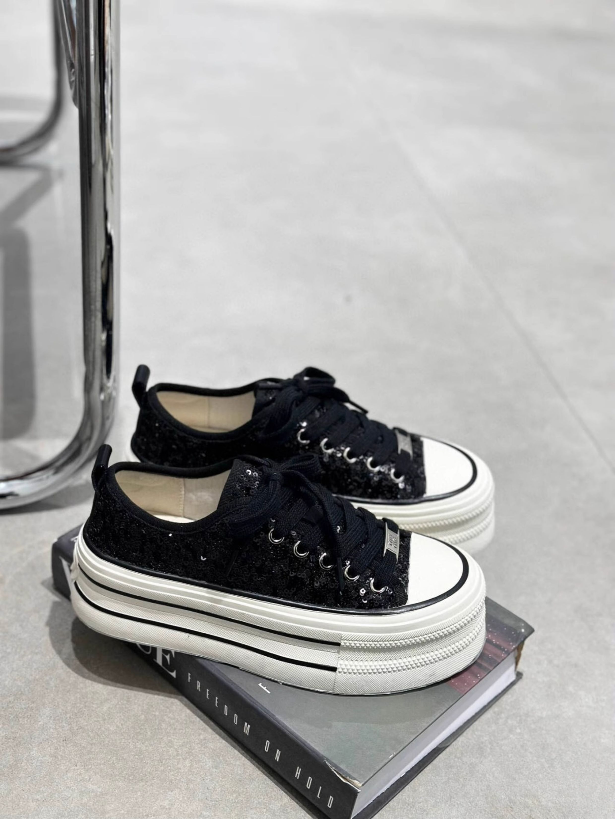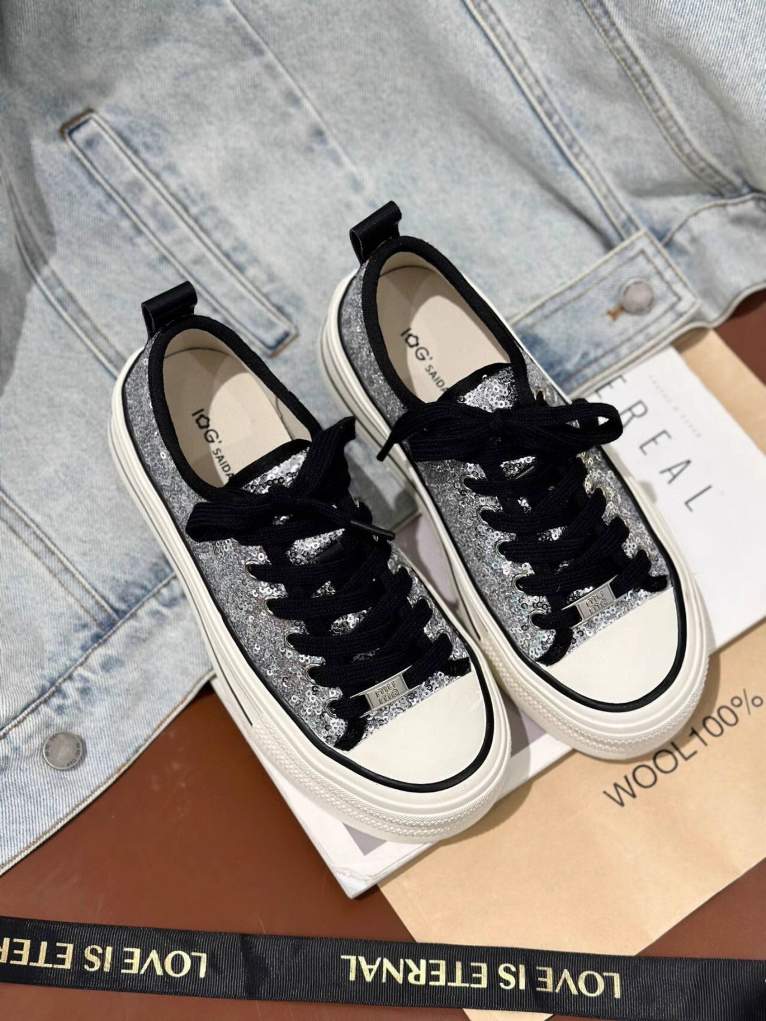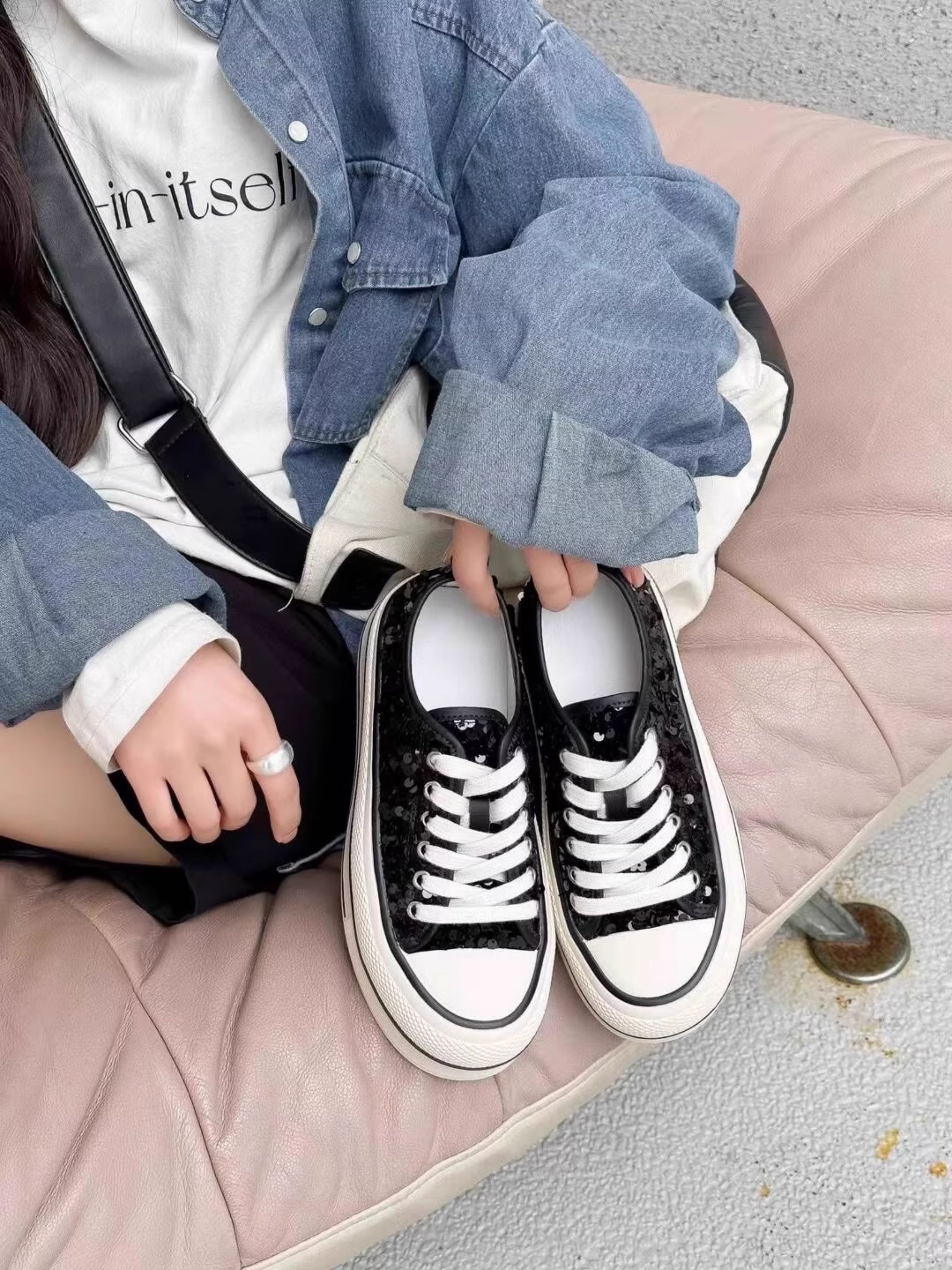 Hong Kong Sequin Platform Sneakers for Petite Women, Height-Increasing, 2025 Spring and Autumn Fashion, Casual, Versatile, Korean Style Platform Shoes, Trendy